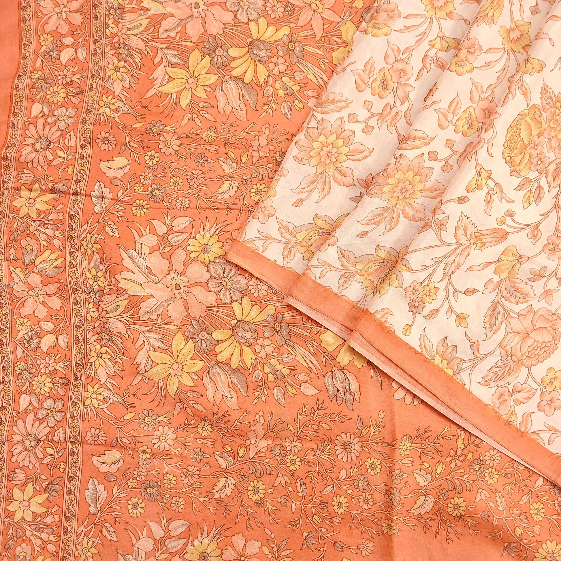 Vintage beige & orange Floral Printed Pure Silk Saree