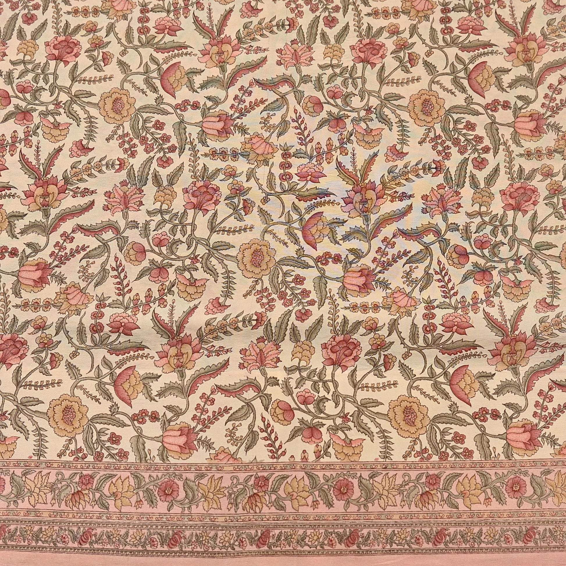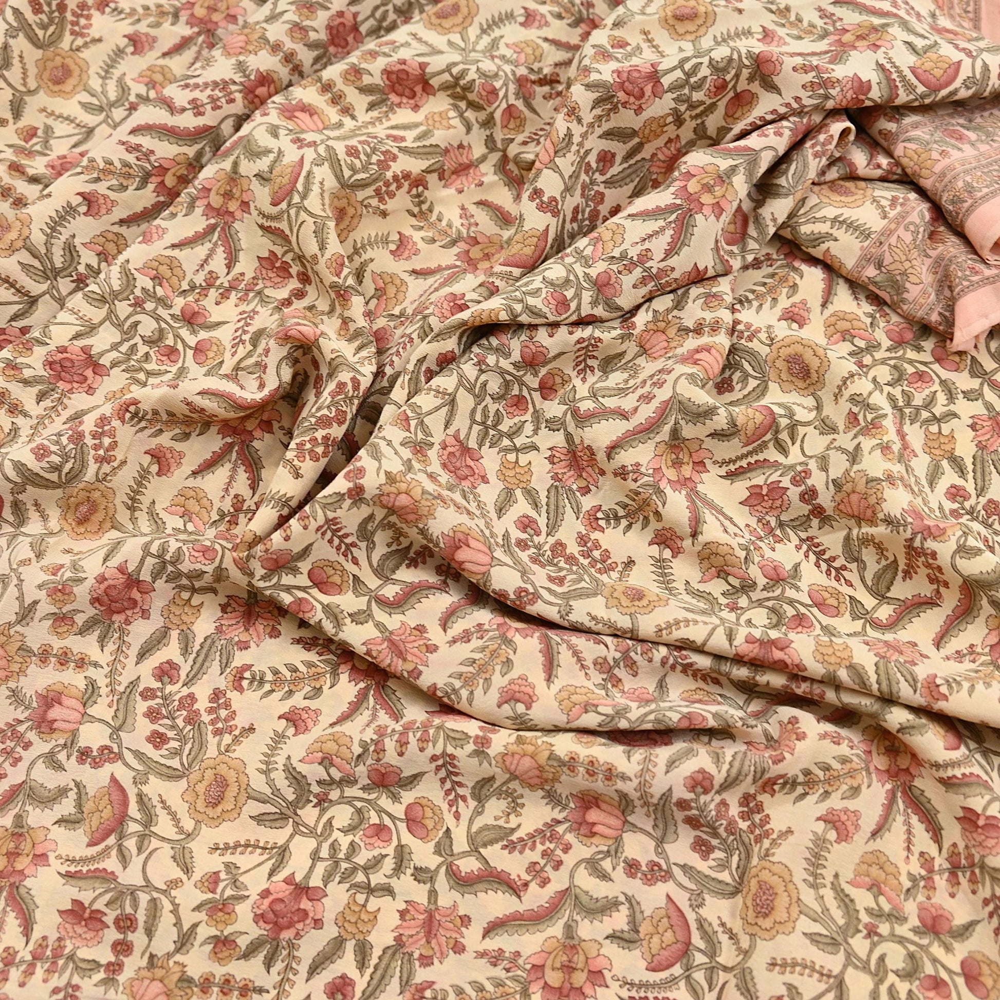 🔹This unique vintage Beige & Peach Colored Printed Pure Crepe Silk Saree Fabric.
