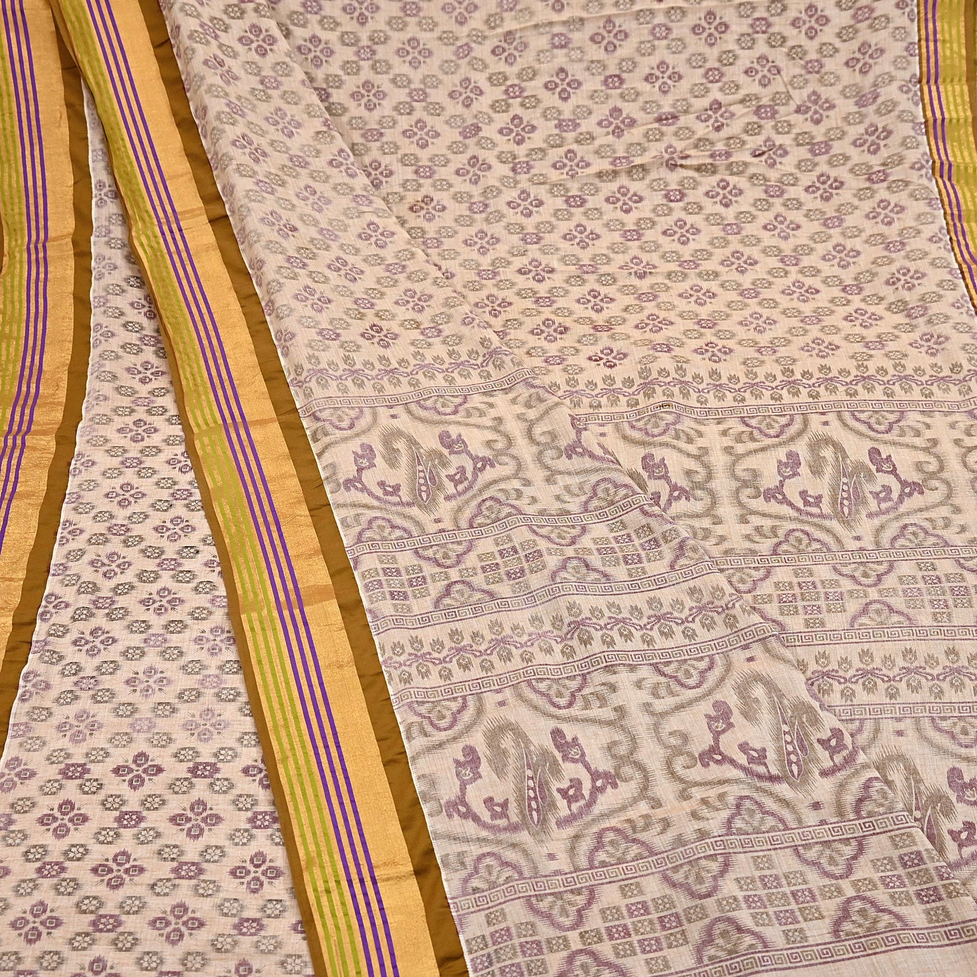*Vintage beige Colored Printed Pure Cotton Saree.