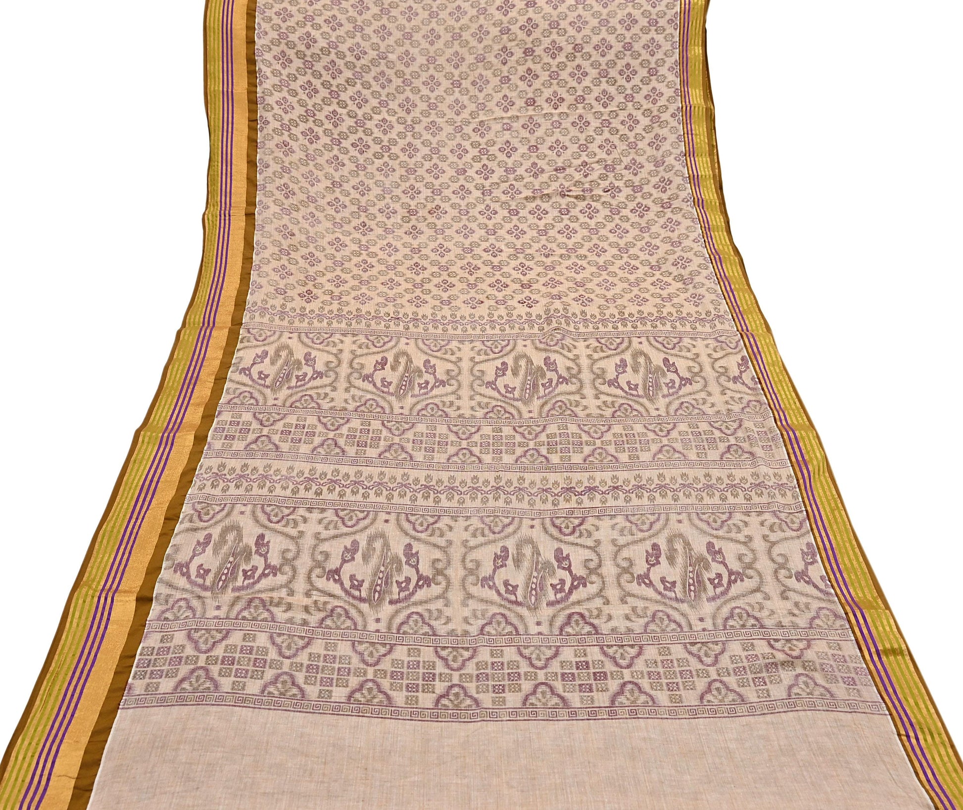 Indian Vintage Sari Beige Printed Pure Cotton Sarees Craft Fabric 5Yd Soft Sewing Sarong Wrap Boho Floral Quilting Dress making zari border