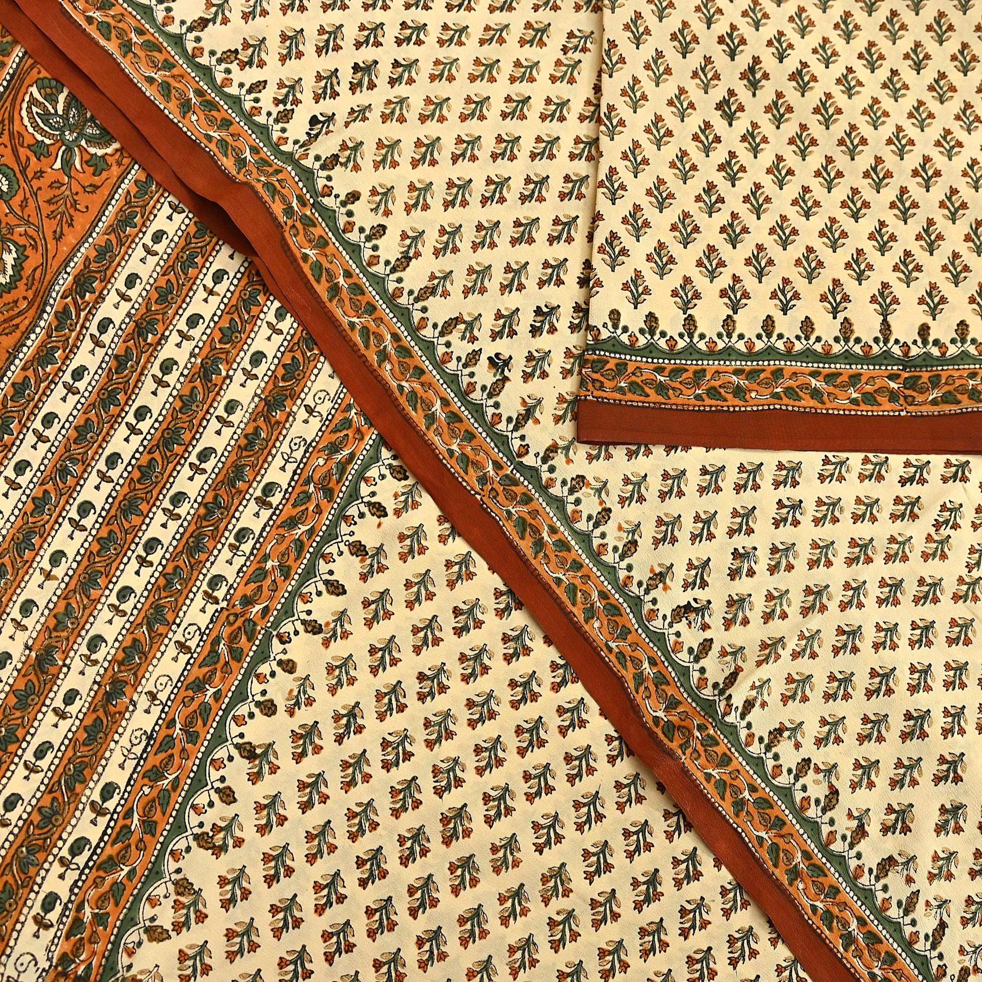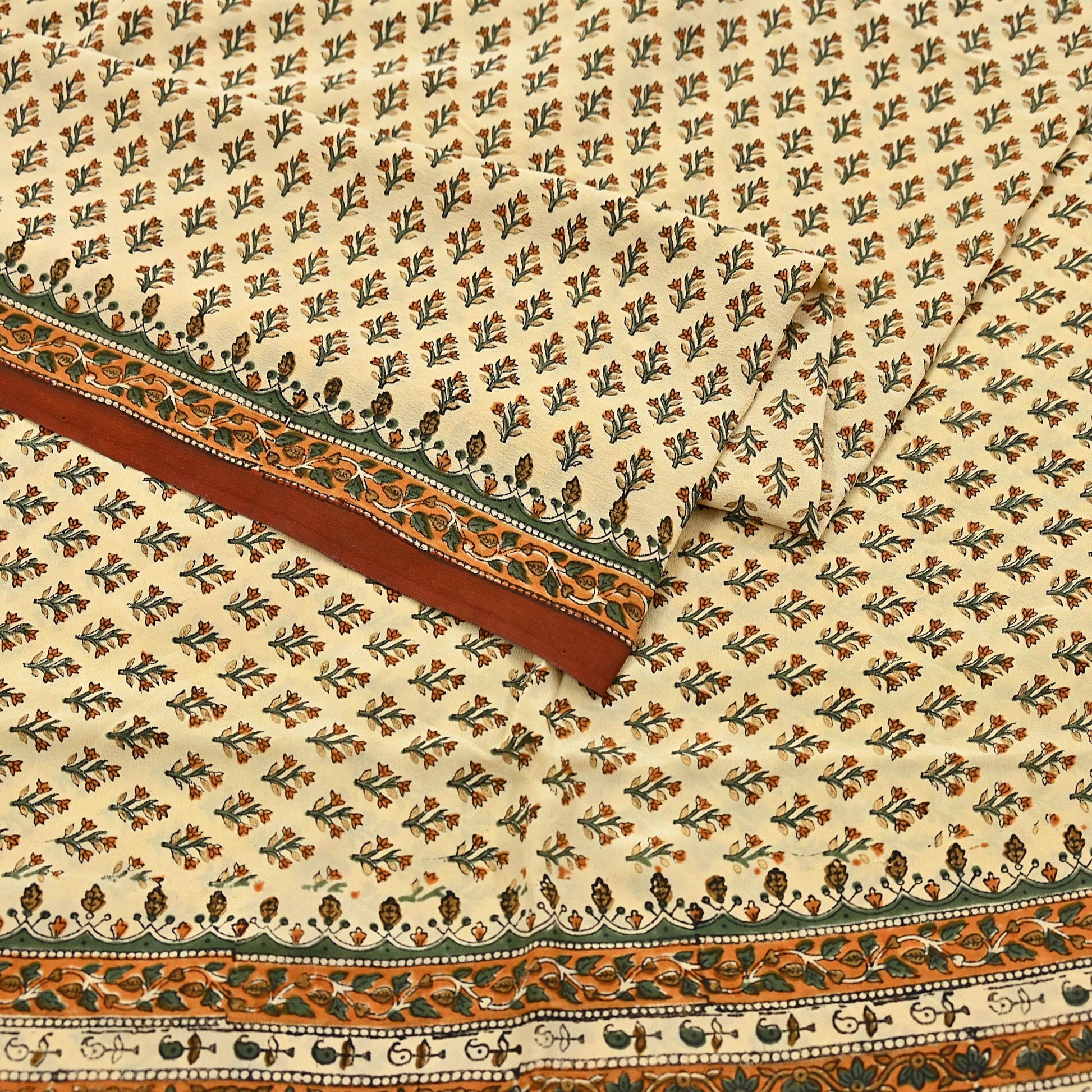 Indian Vintage Sari Beige Pure Crepe Silk Block Printed Sarees 5yd Sewing Floral Soft Craft Fabric Wrap Dress making Upcycle Crafting