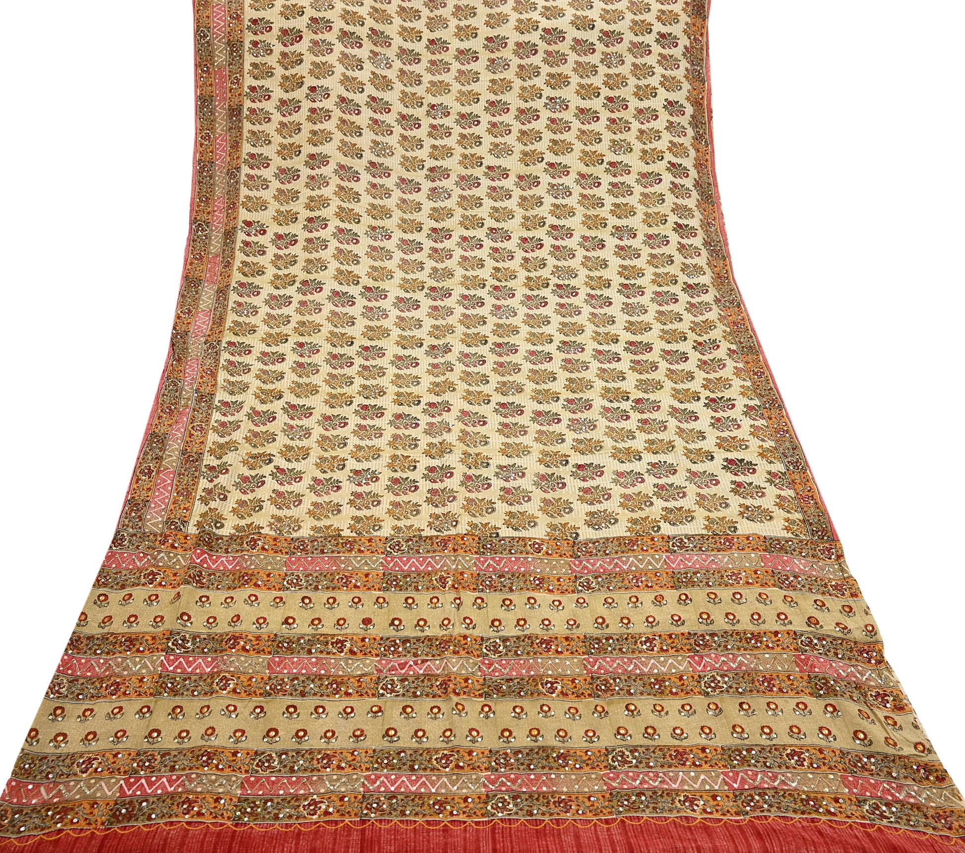 *Sari Has All Over Beautiful Paisley Design. With golden Sequins, golden zari, multi Thread Work.