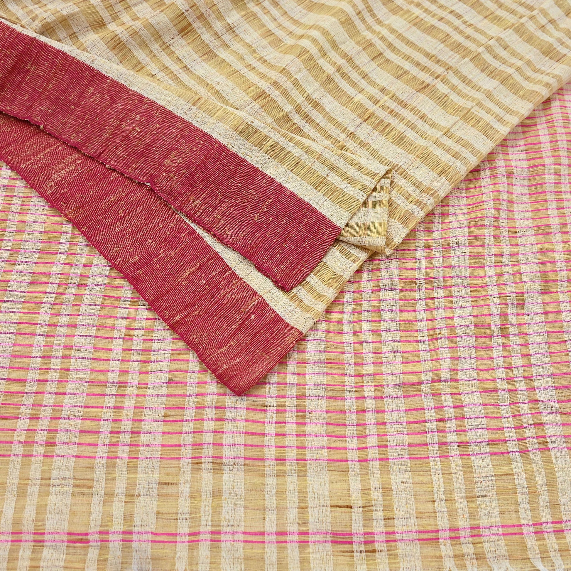 Vintage Beige Colored 100% Pure Cotton Woven Sari.