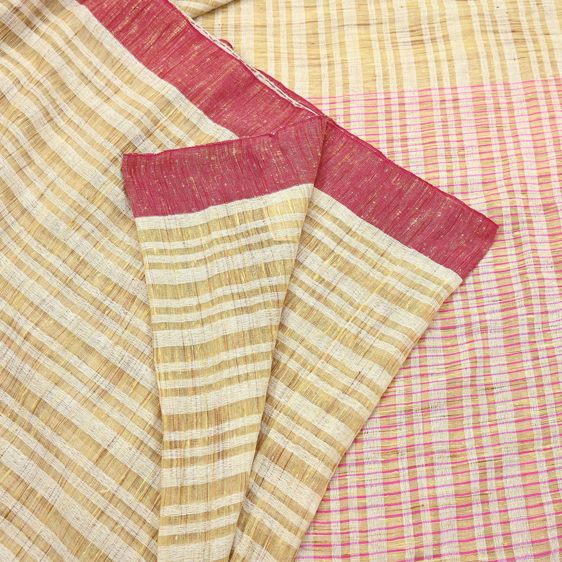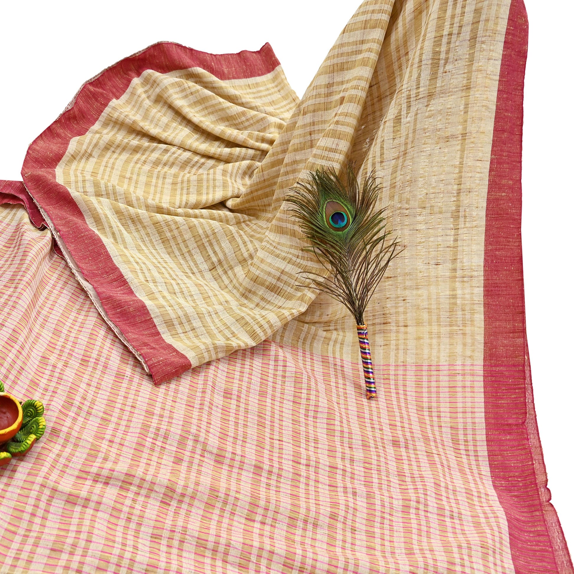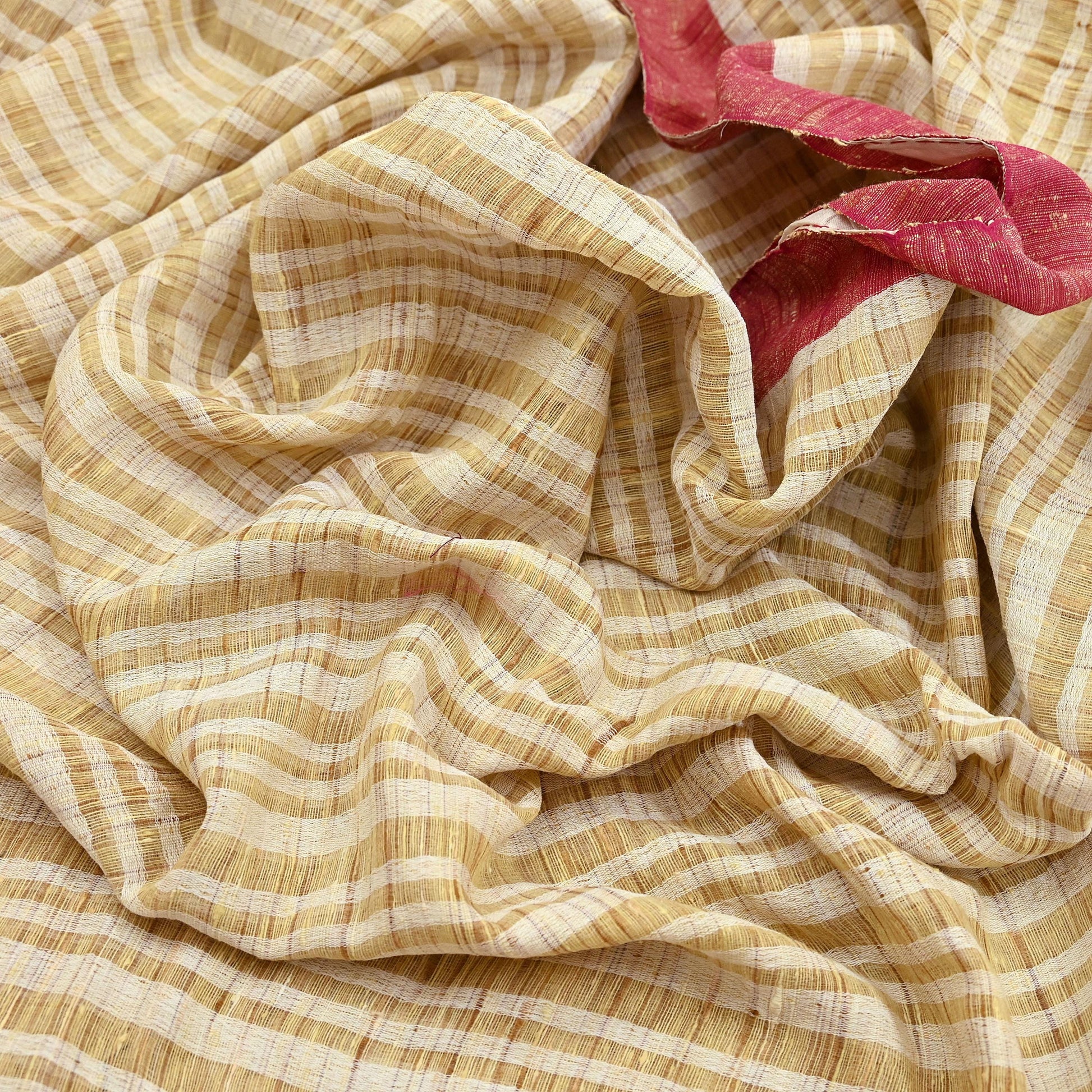 Indian Vintage Sari Beige Woven 100% Pure Cotton Sarees Craft Fabric 6Yd Stripes Upcycle Quilting Crafting Dress making Upcycle Boho Wrap