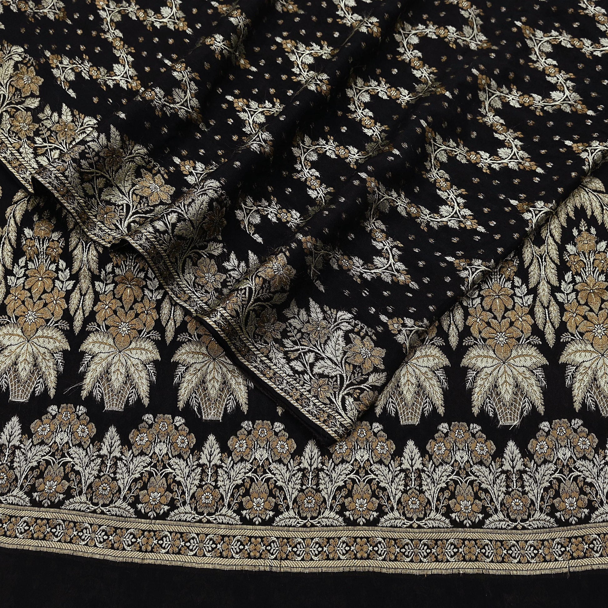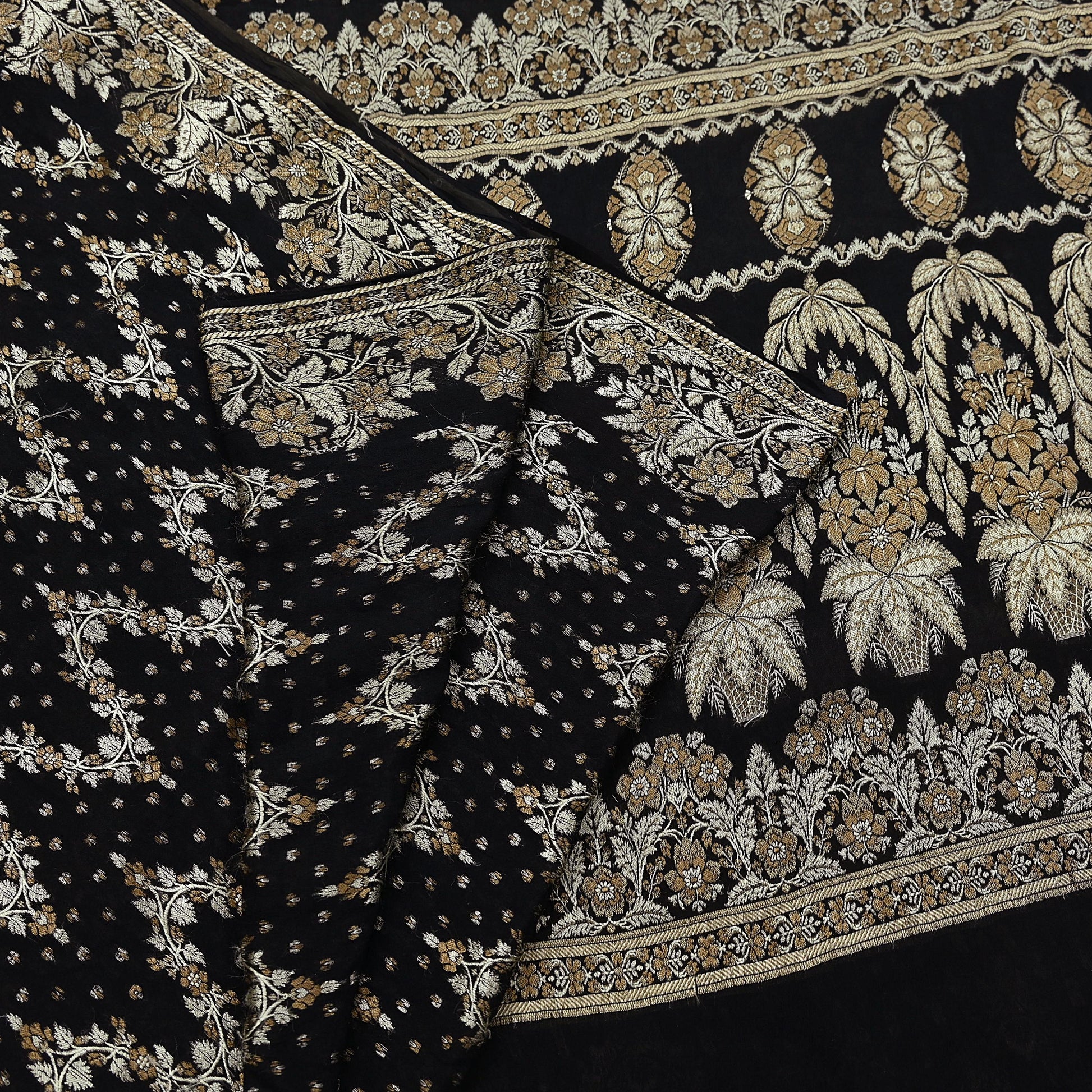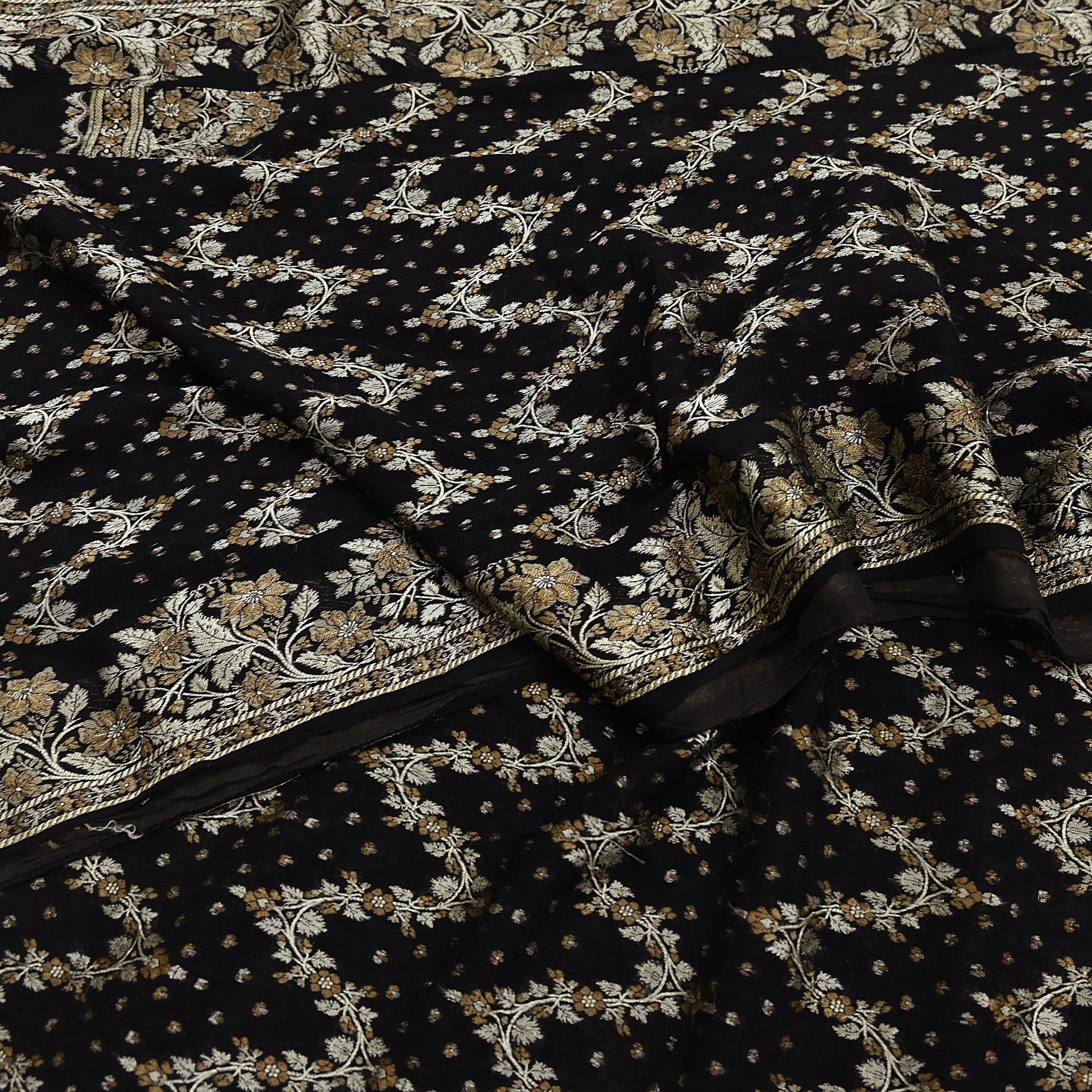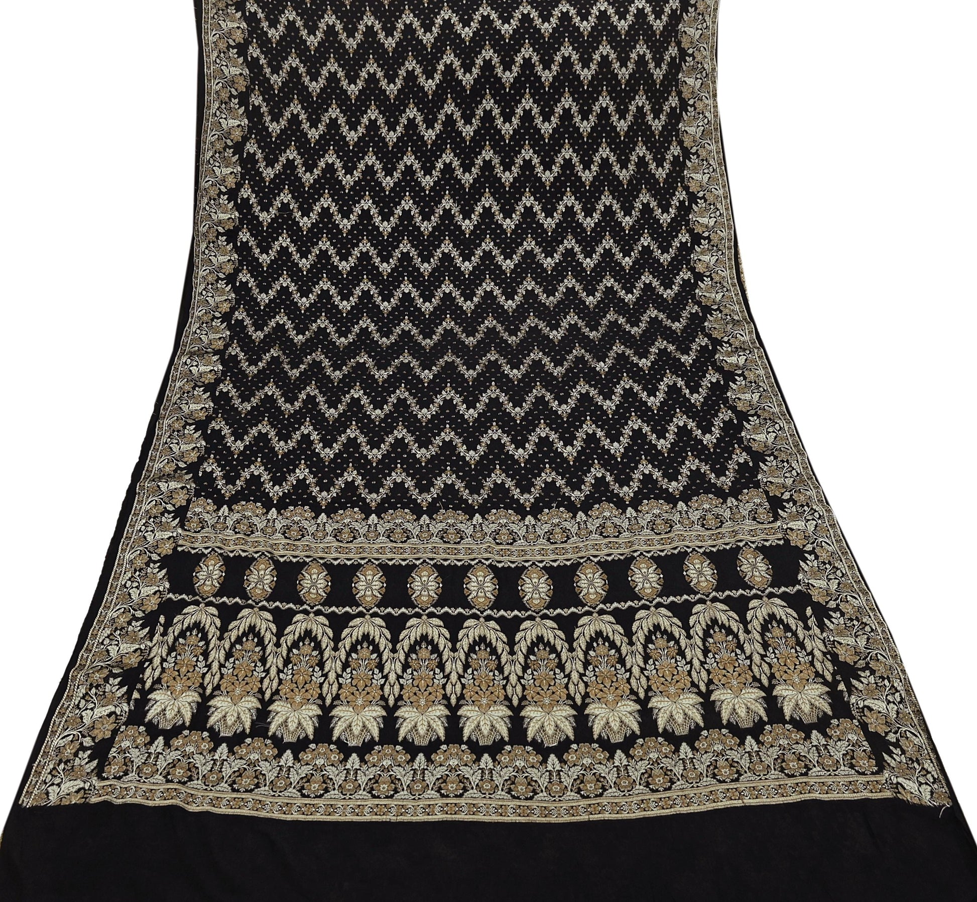 Indian Vintage Sari Black 100% Pure Silk Hand Woven Sarees Craft Fabric 5Yd Ethnic Sewing Dress making Crafting Quilting Upcycle