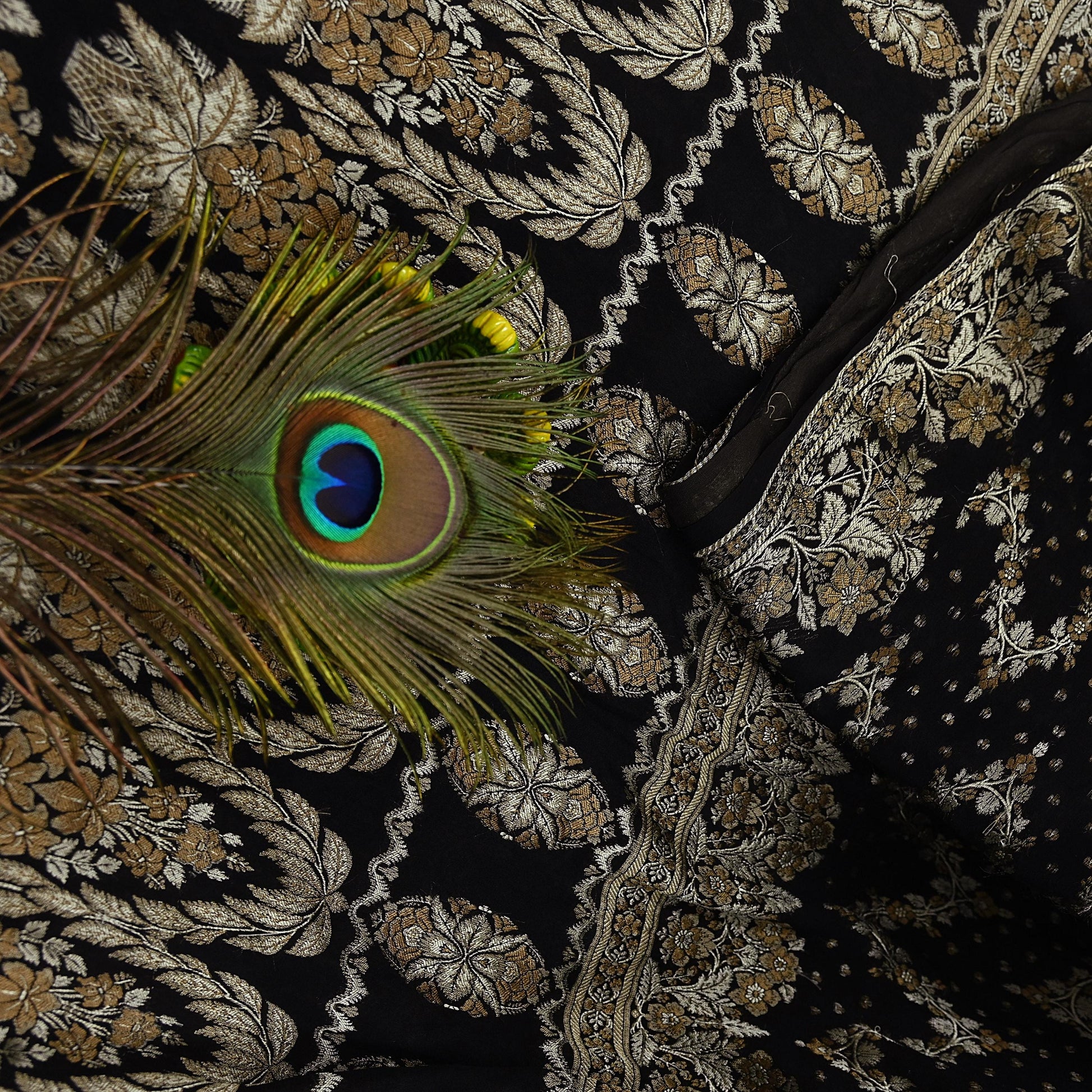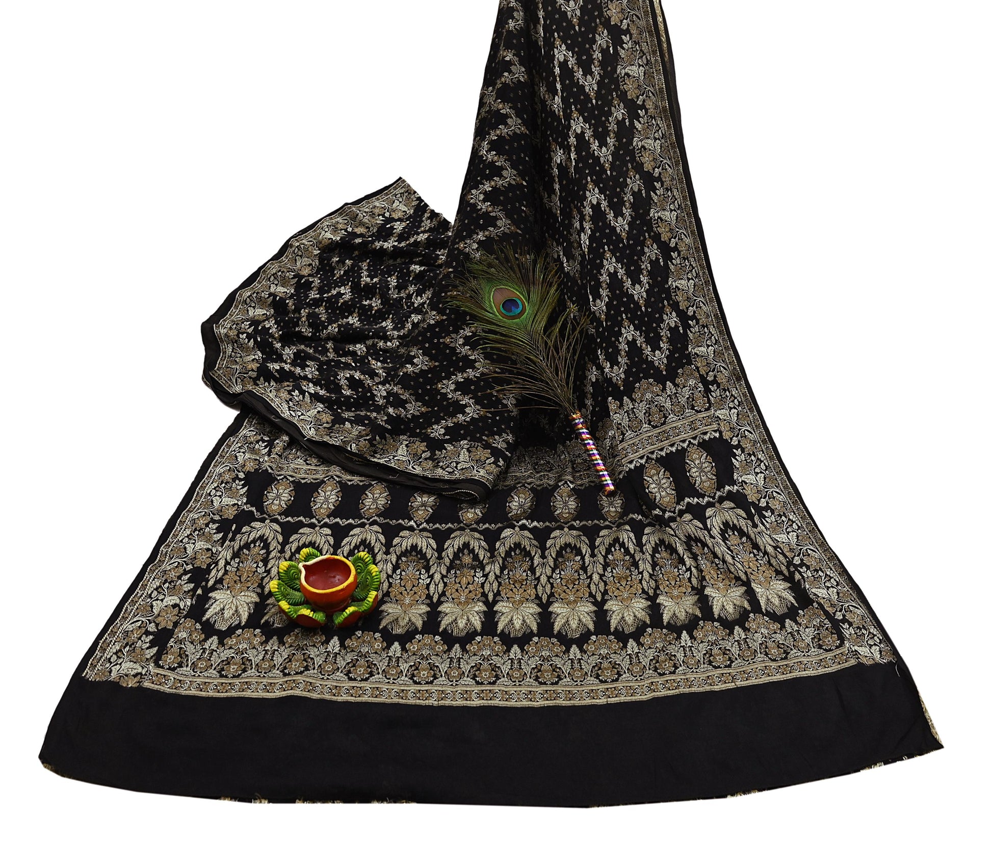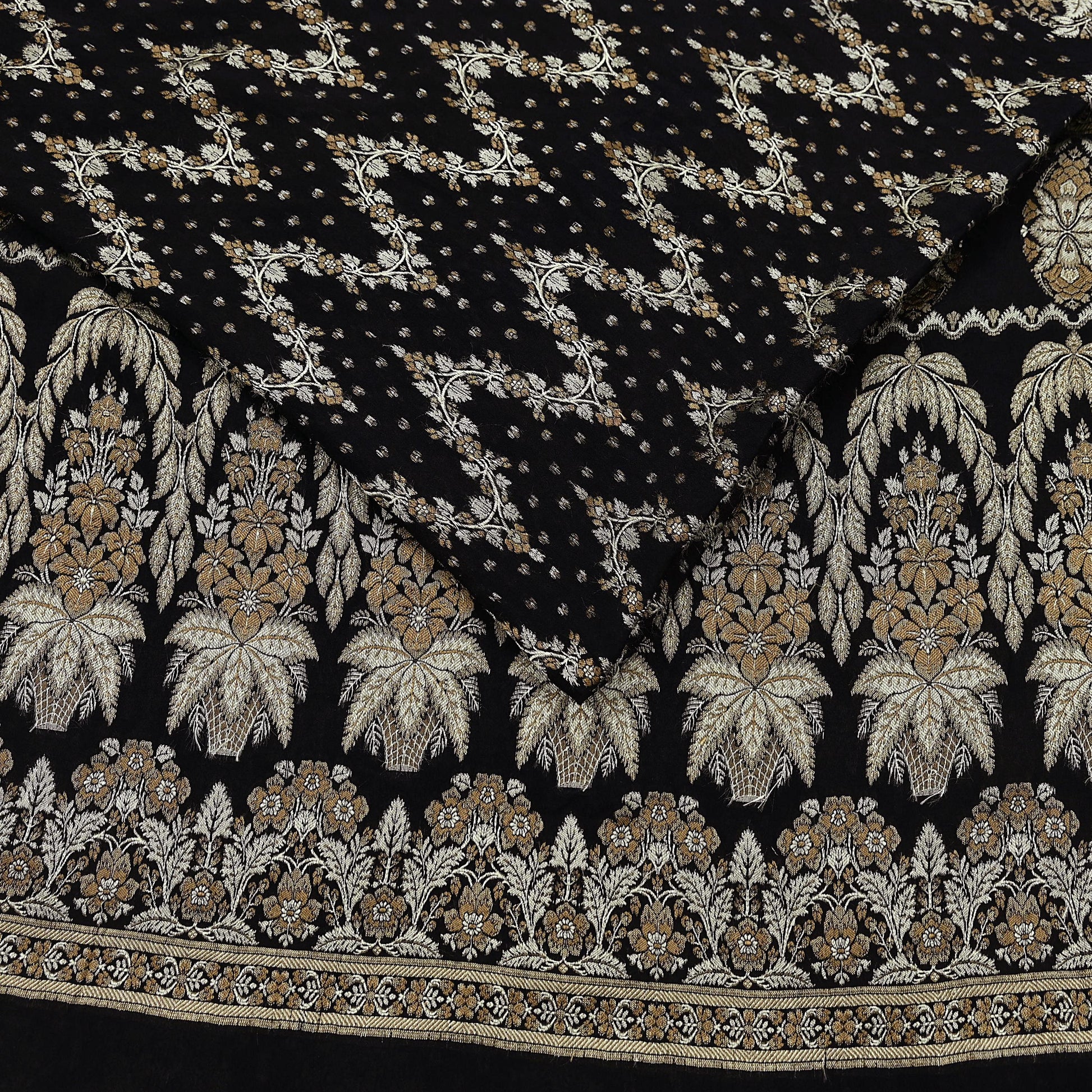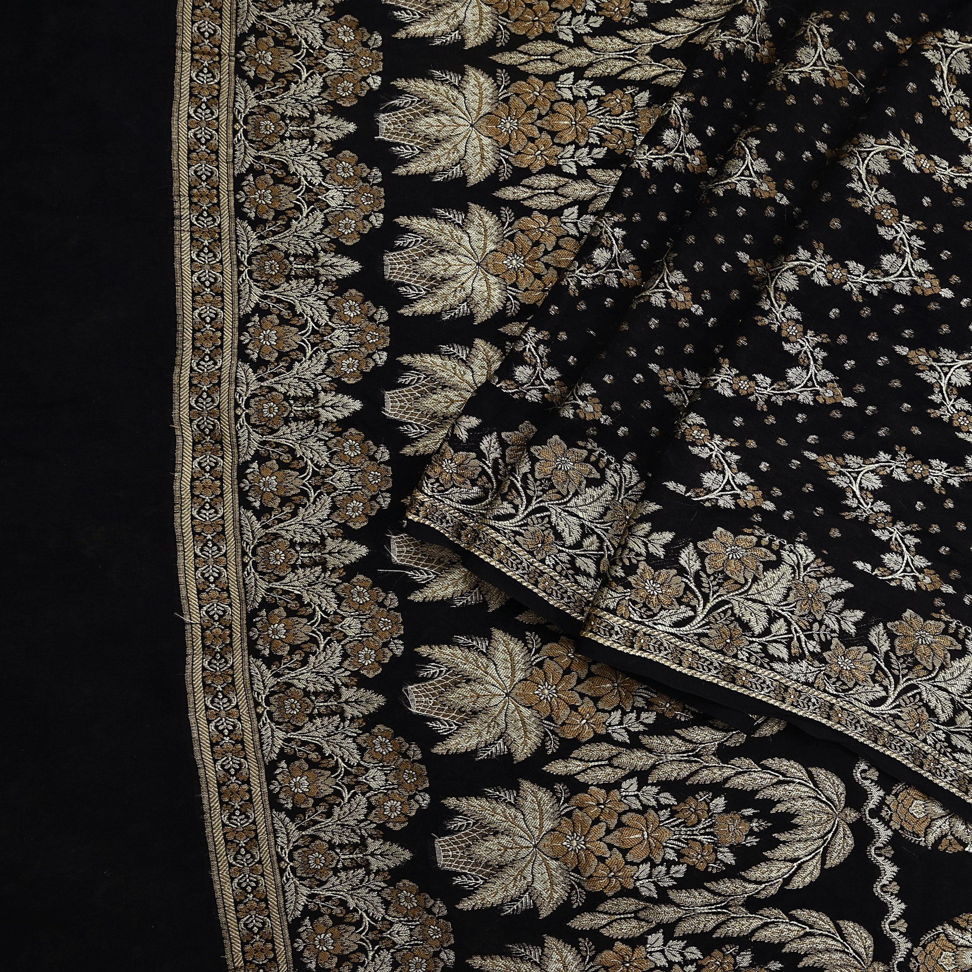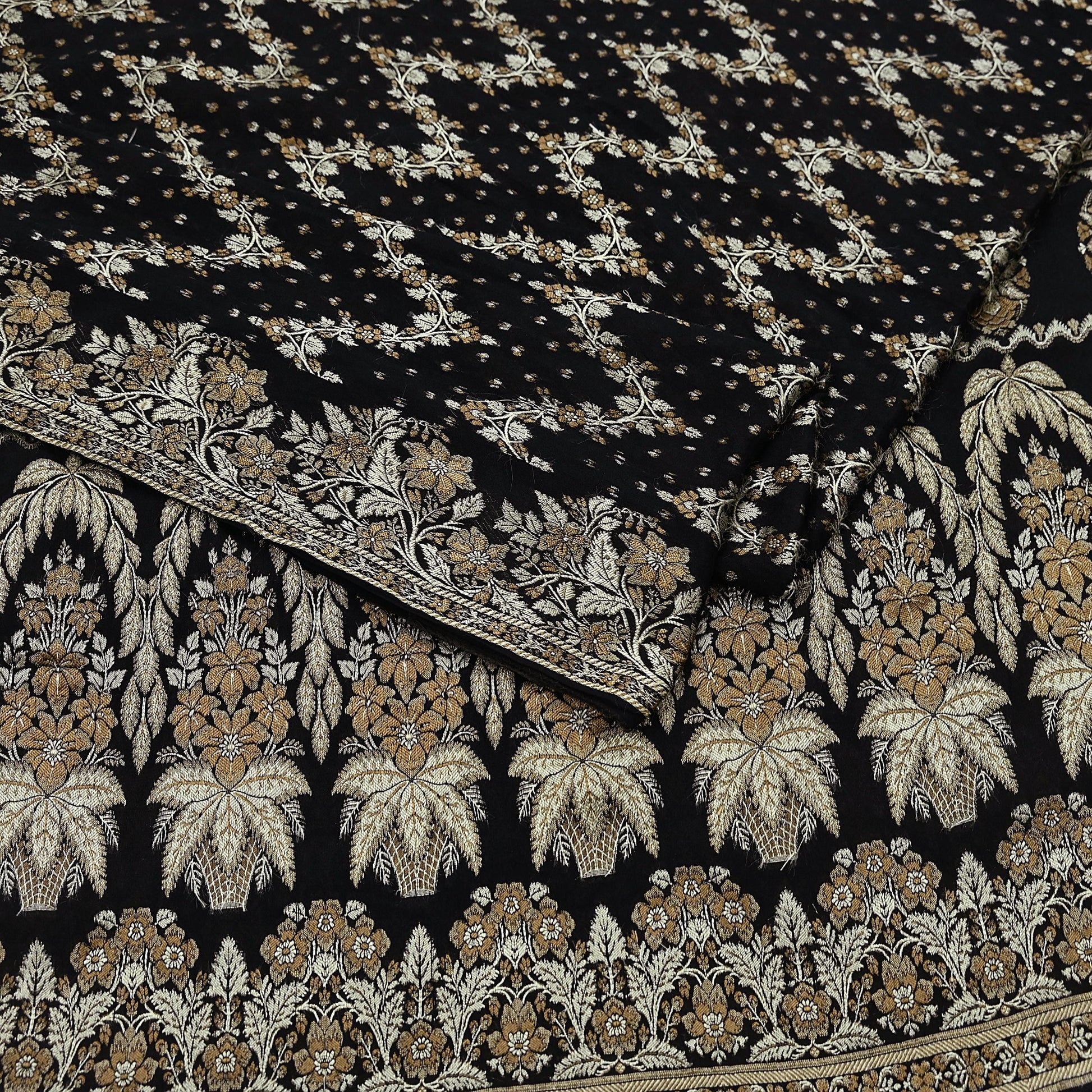 Indian Vintage Sari Black 100% Pure Silk Hand Woven Sarees Craft Fabric 5Yd Ethnic Sewing Dress making Crafting Quilting Upcycle