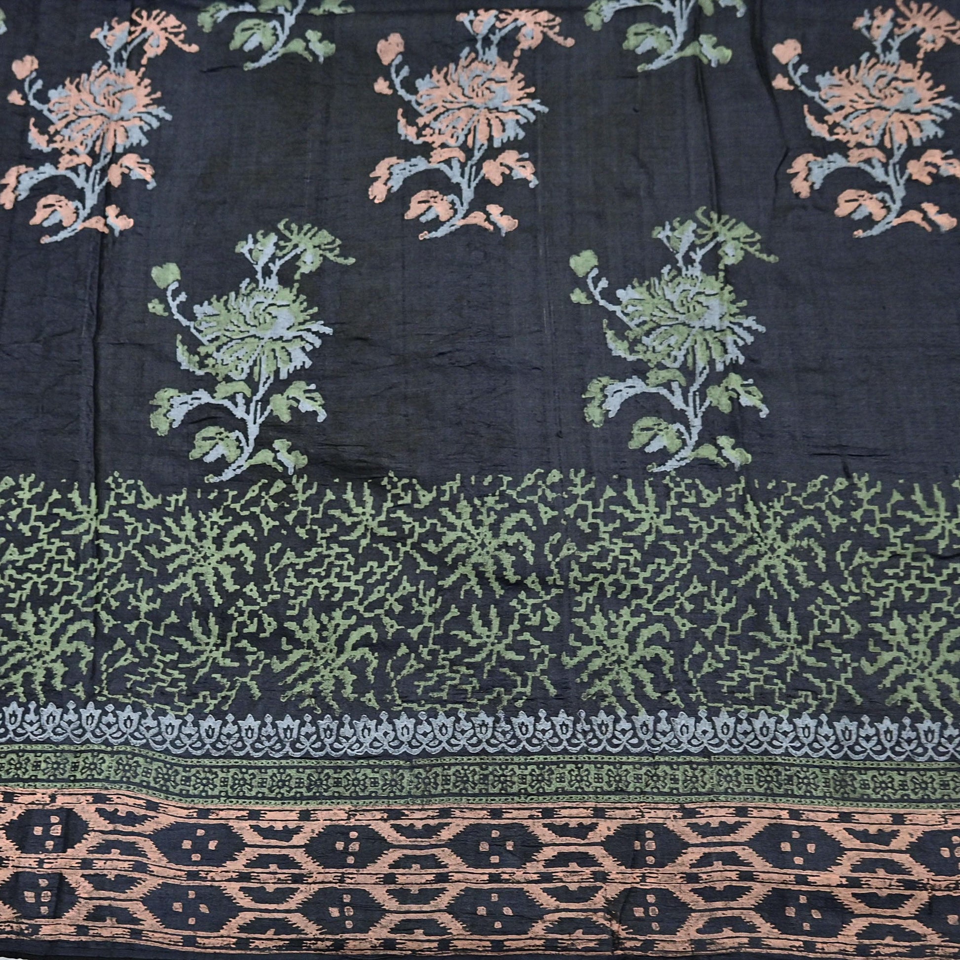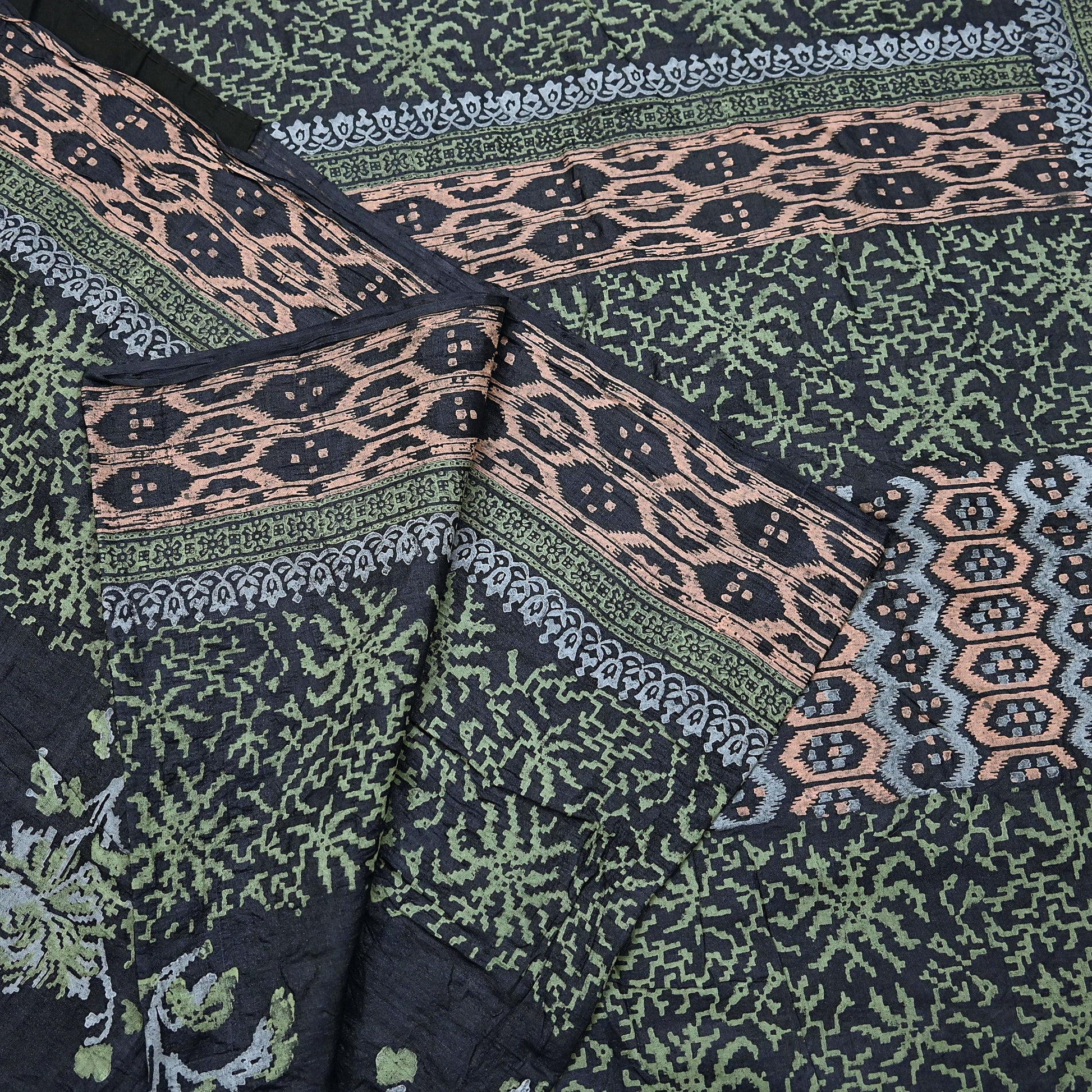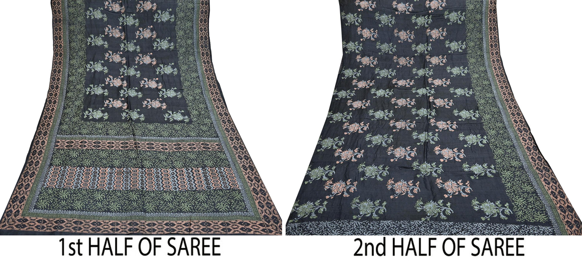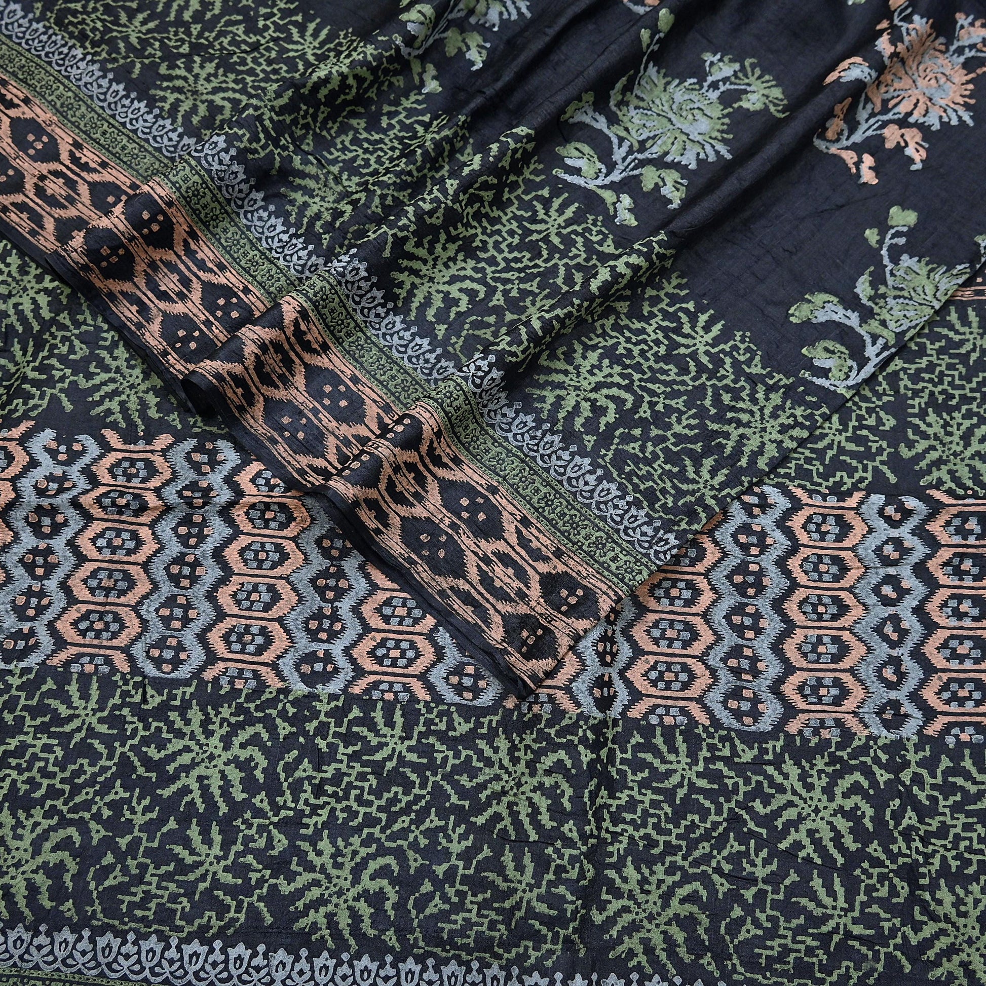 Indian Vintage Sari Black 100% Pure Tussar Silk Hand Painted Sarees 5yd Sewing Craft Fabric Dress Making Soft Woven Border Upcycle Quilting