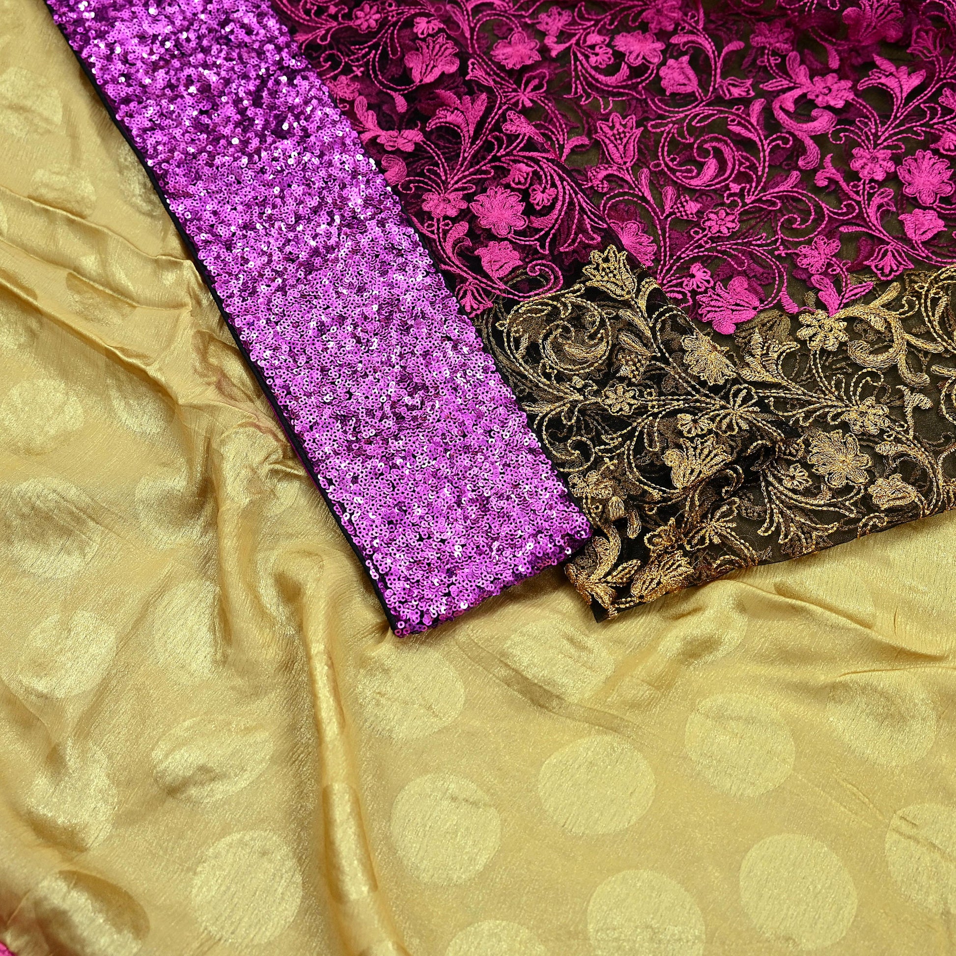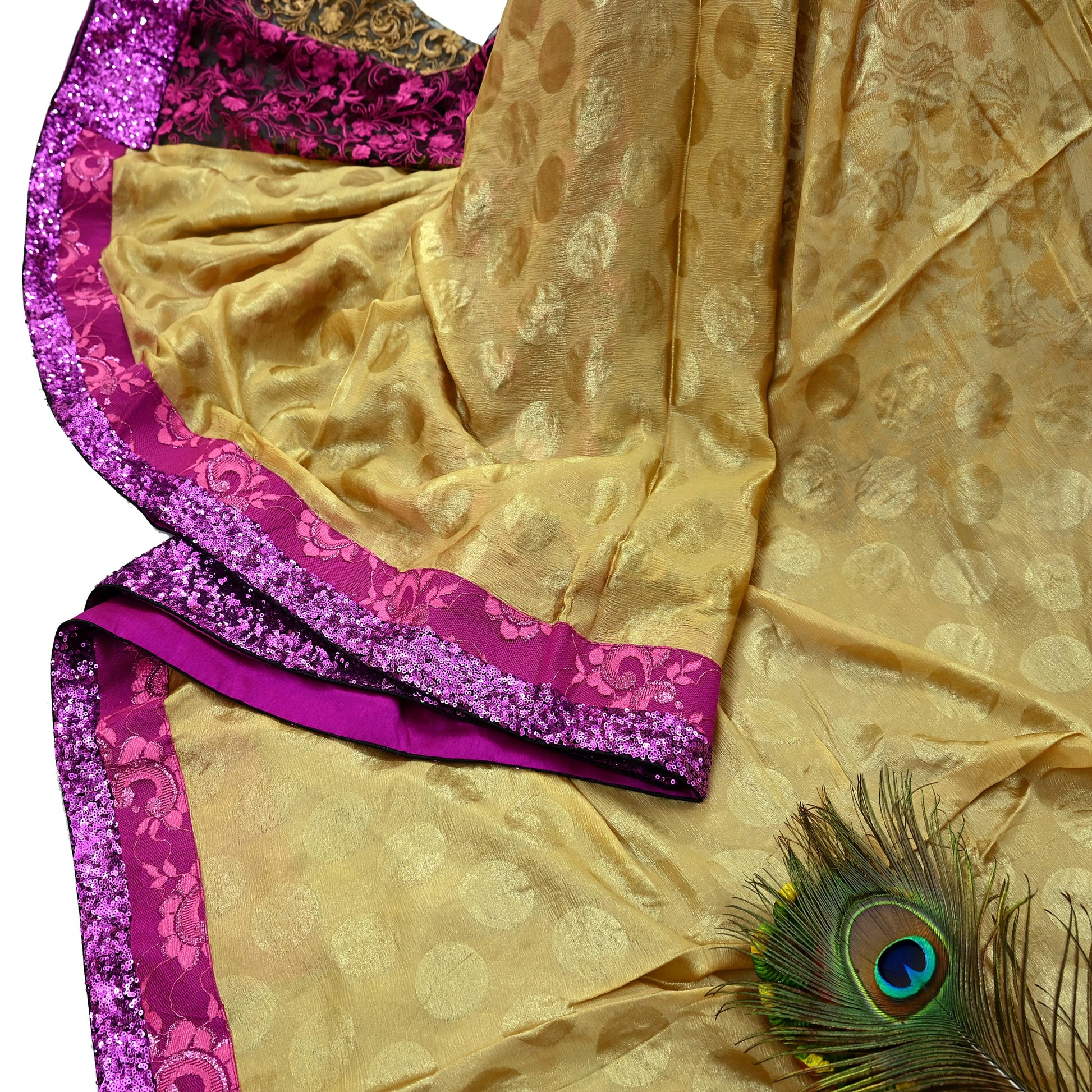 *Pallu & Border Features Polka Dot Design Embellished With Purple Sequins Border Work.