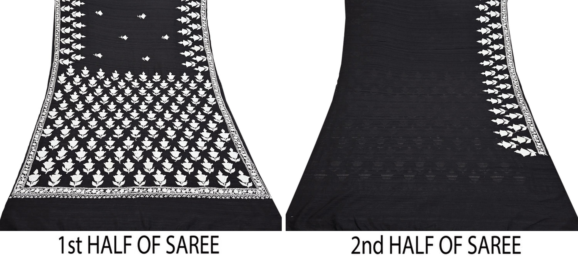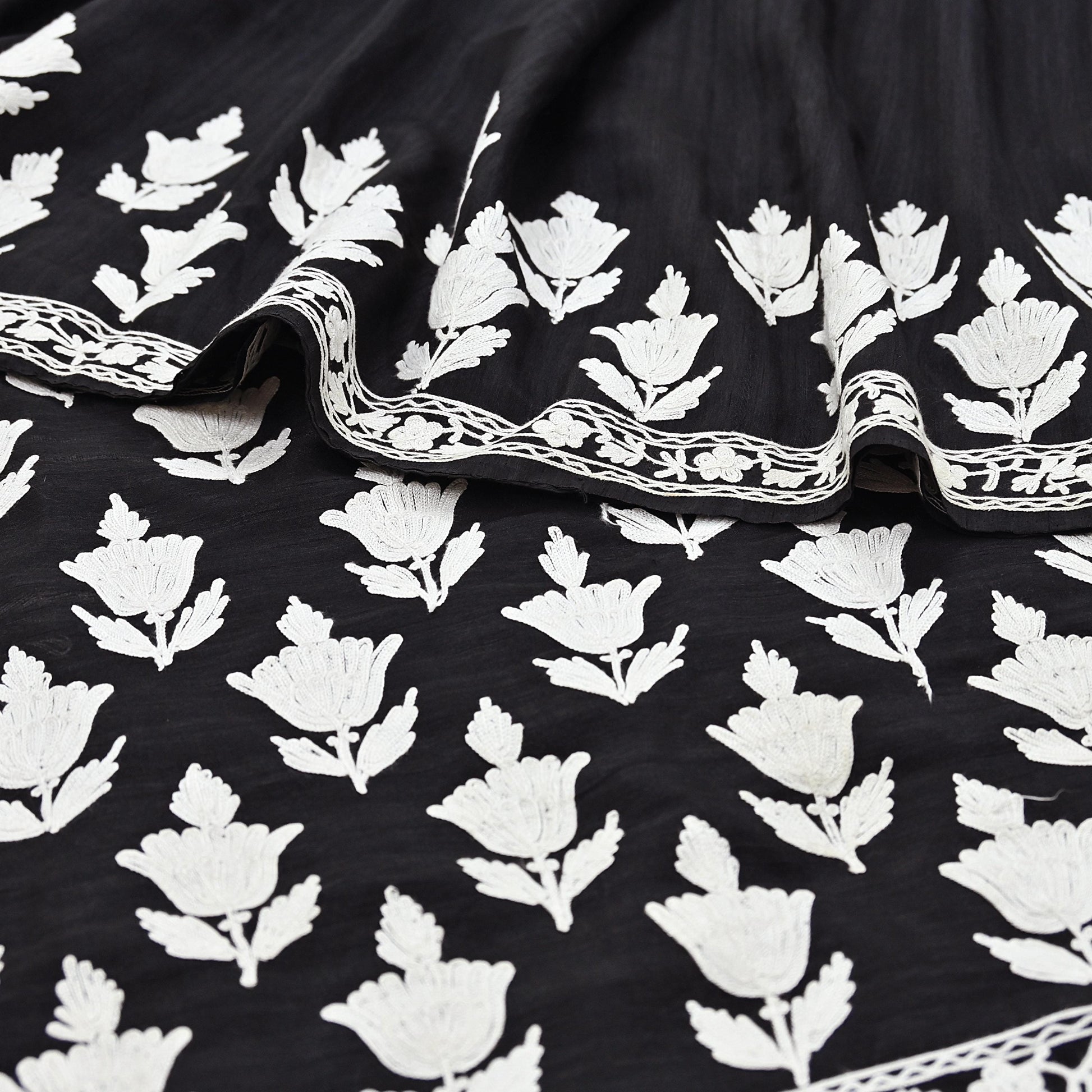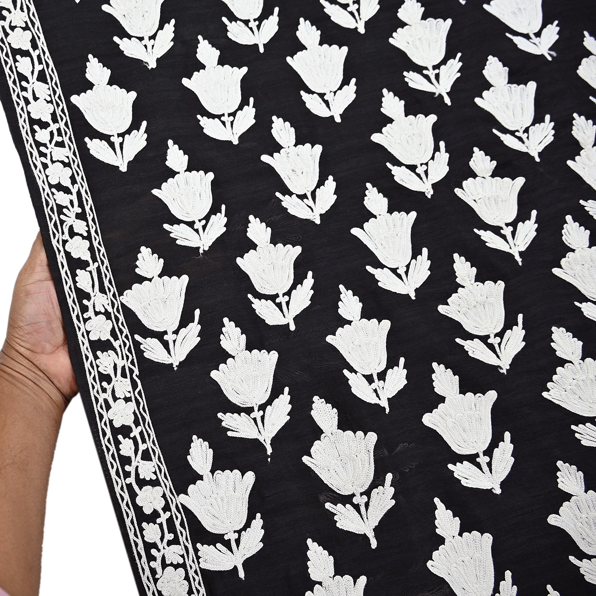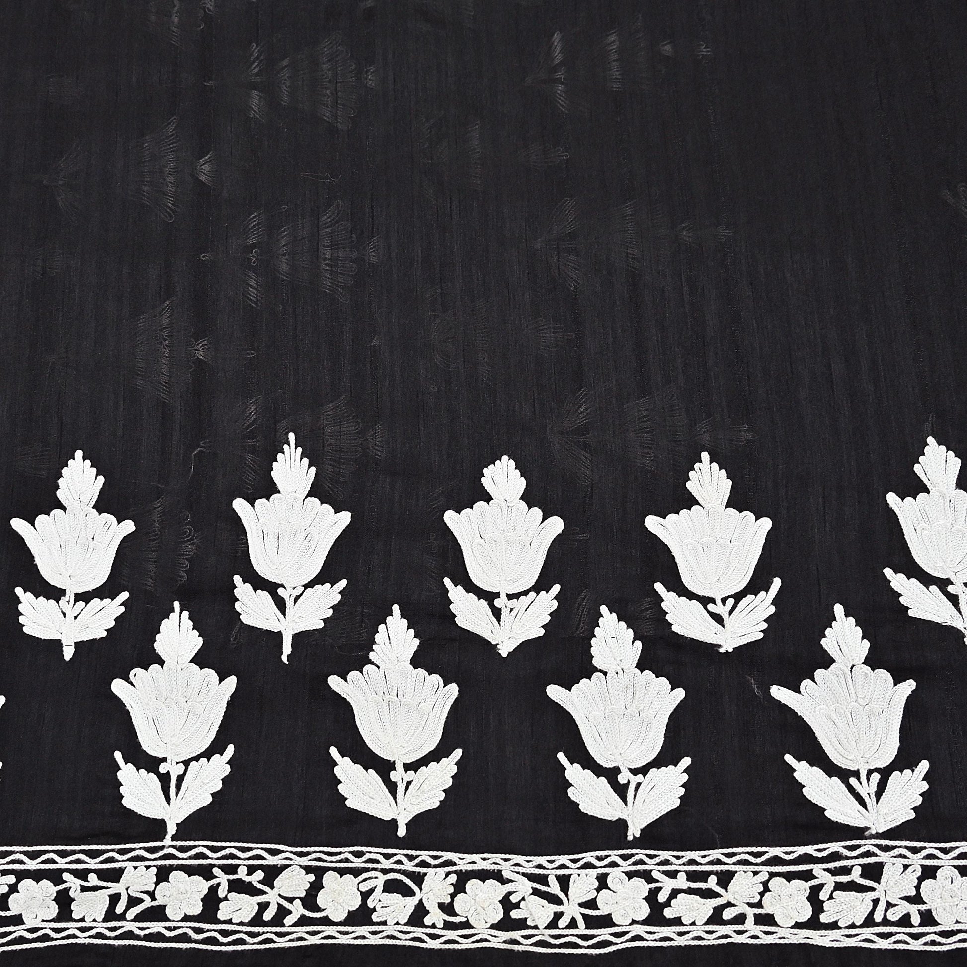 Vintage Black Hand-Embroidered Chanderi Saree | Ari Work | Crafting Fabric