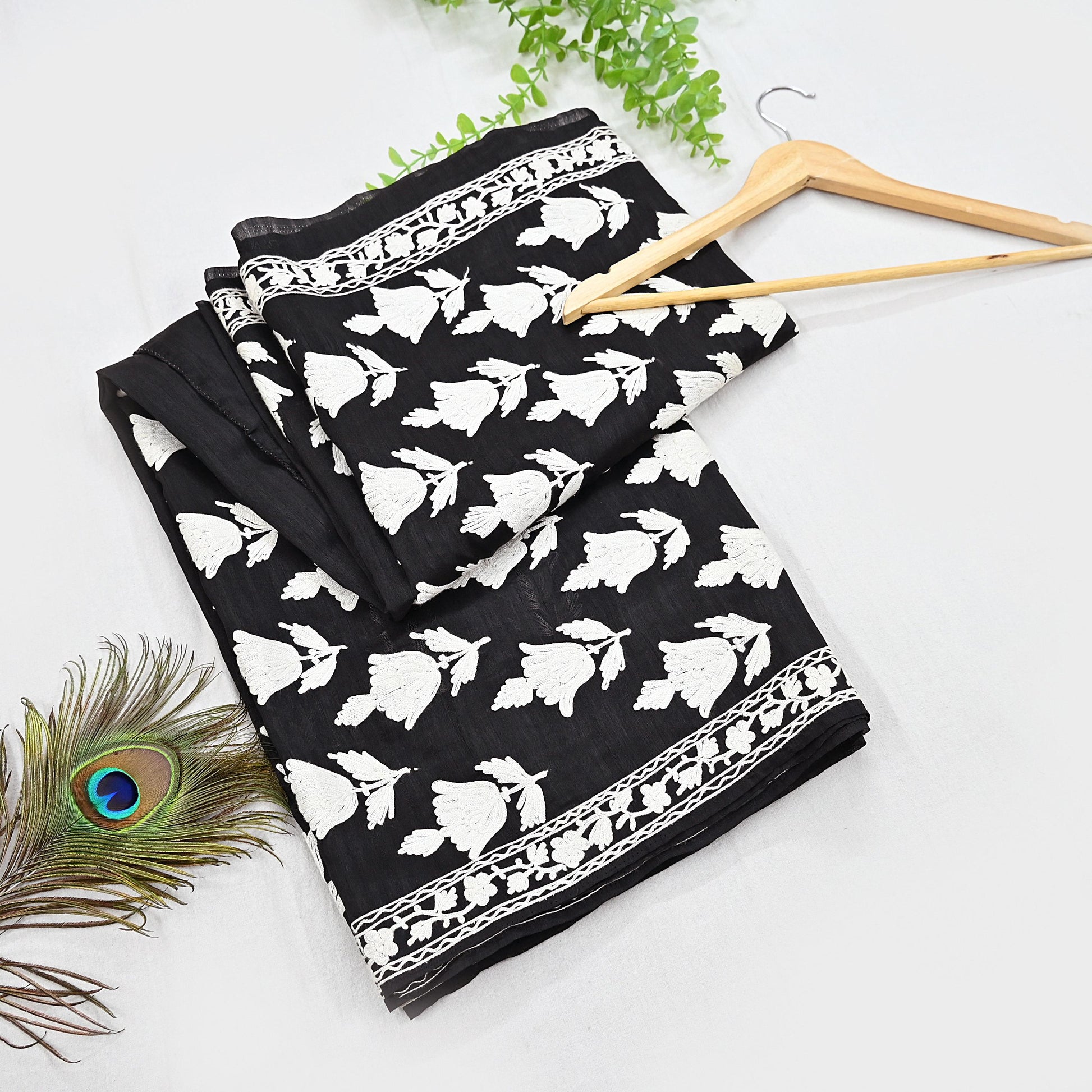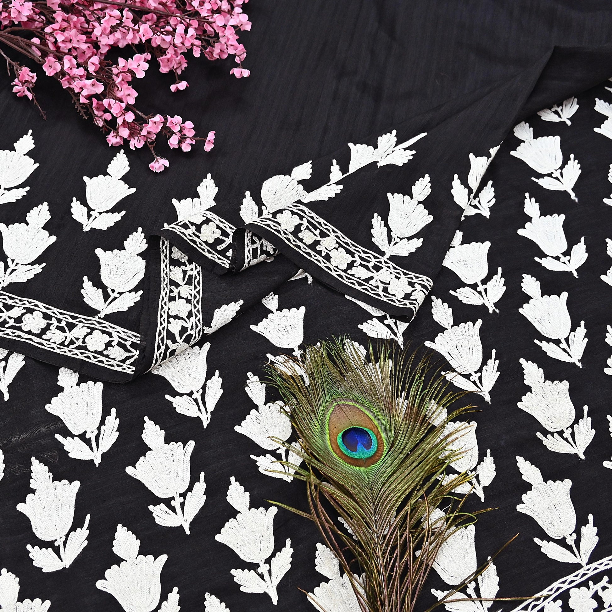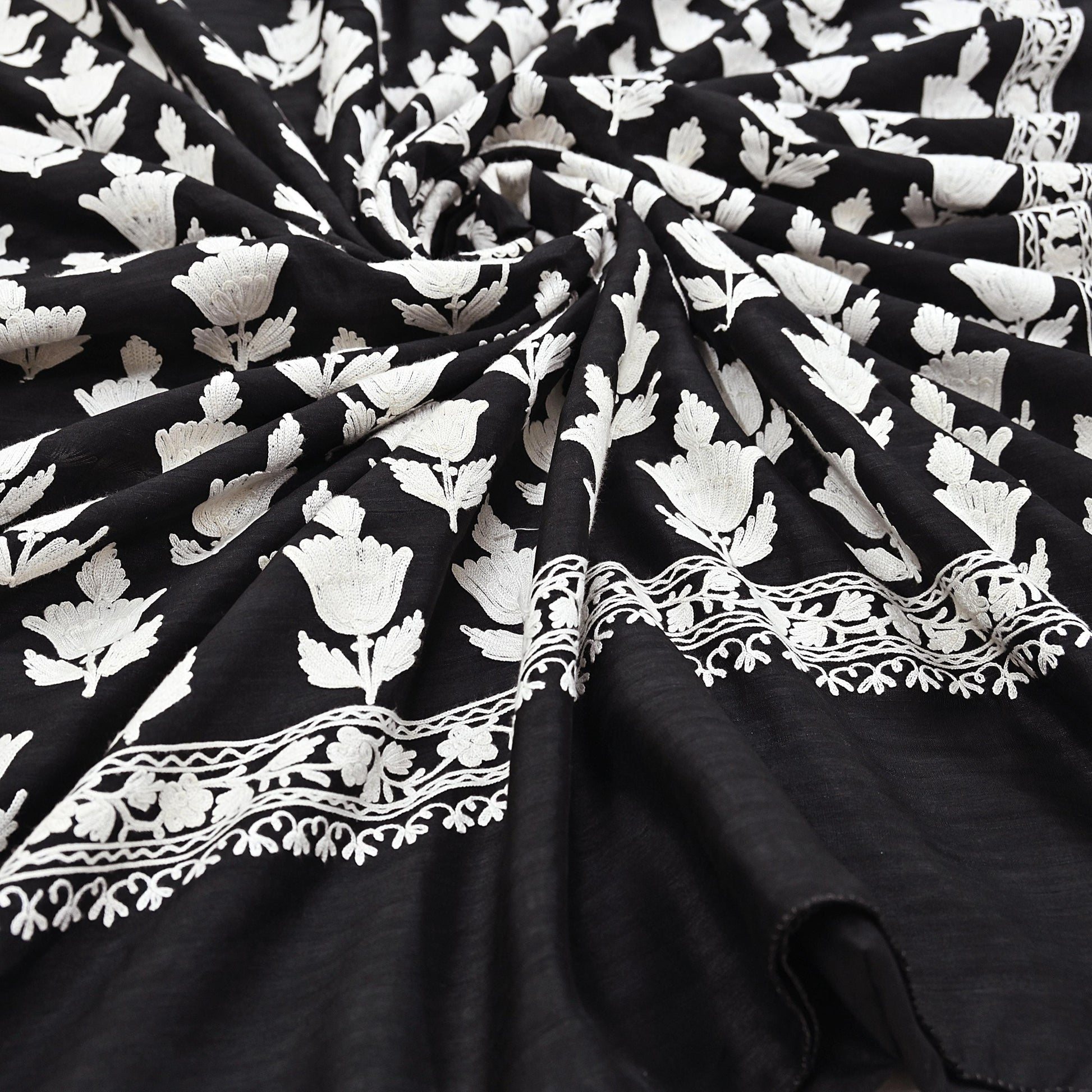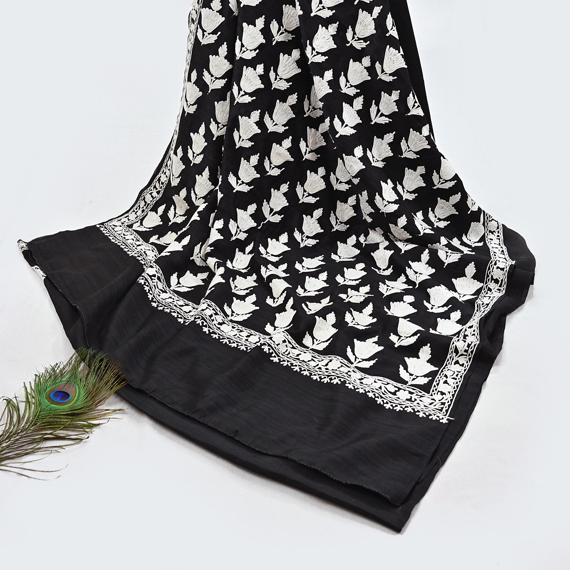 Vintage Black Hand-Embroidered Chanderi Saree | Ari Work | Crafting Fabric