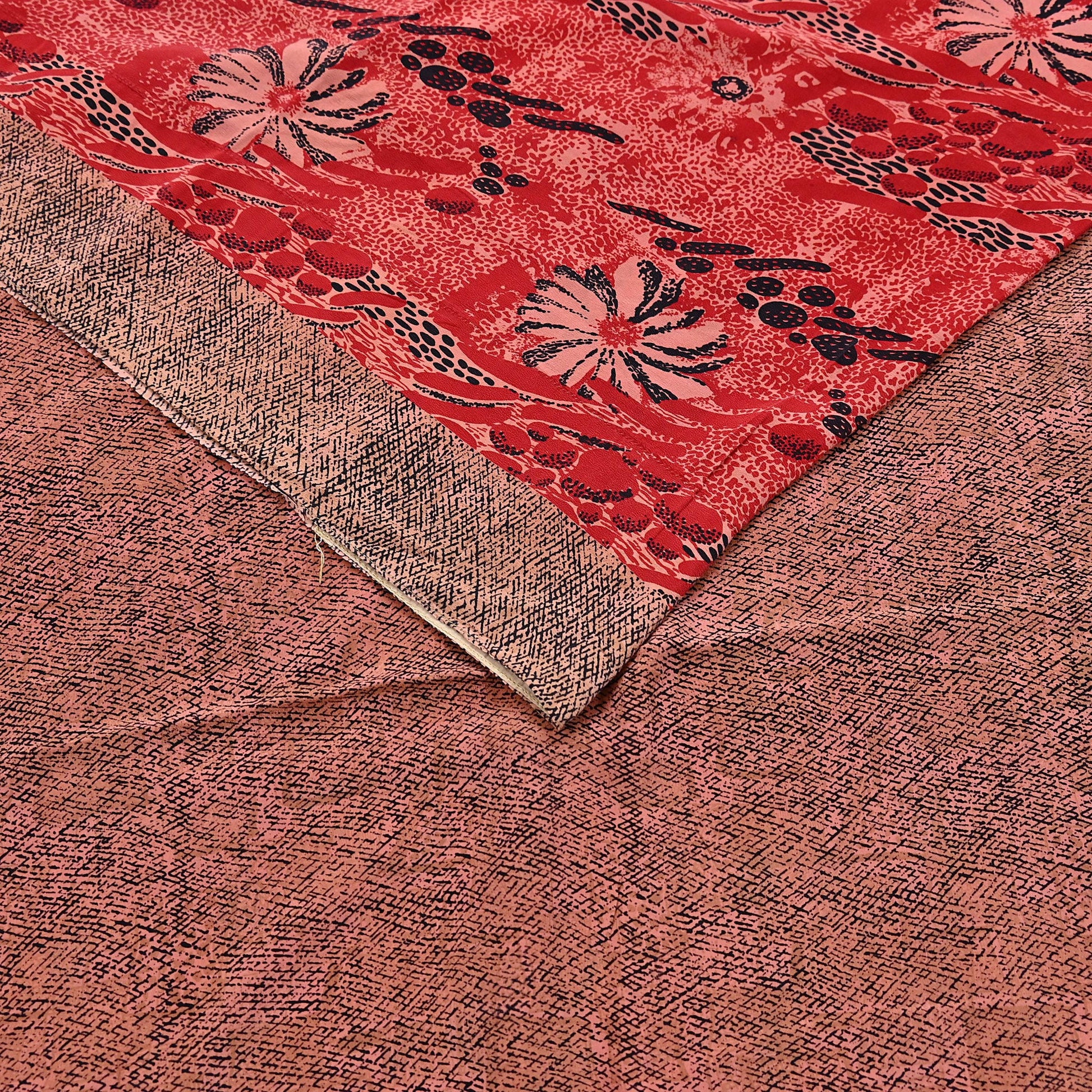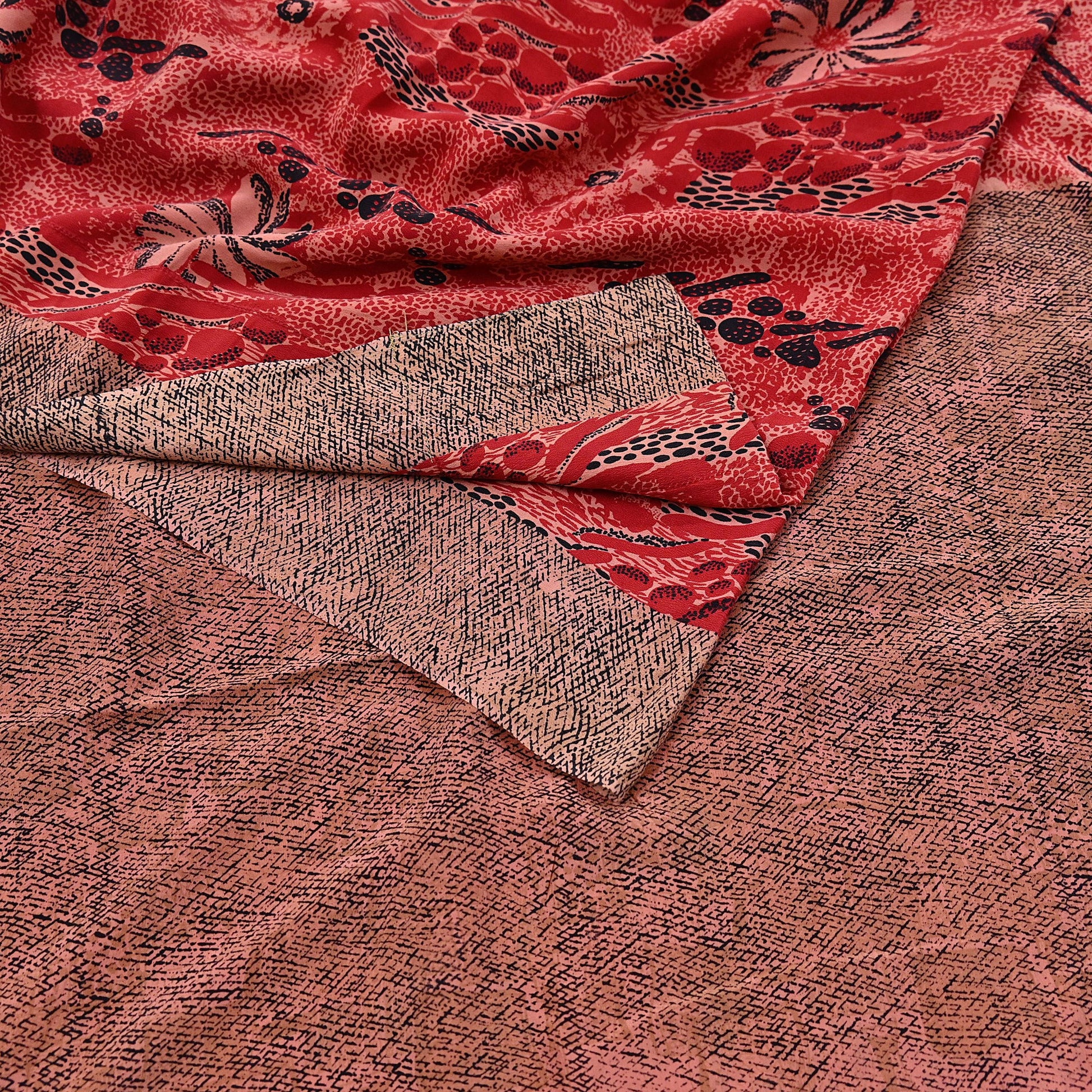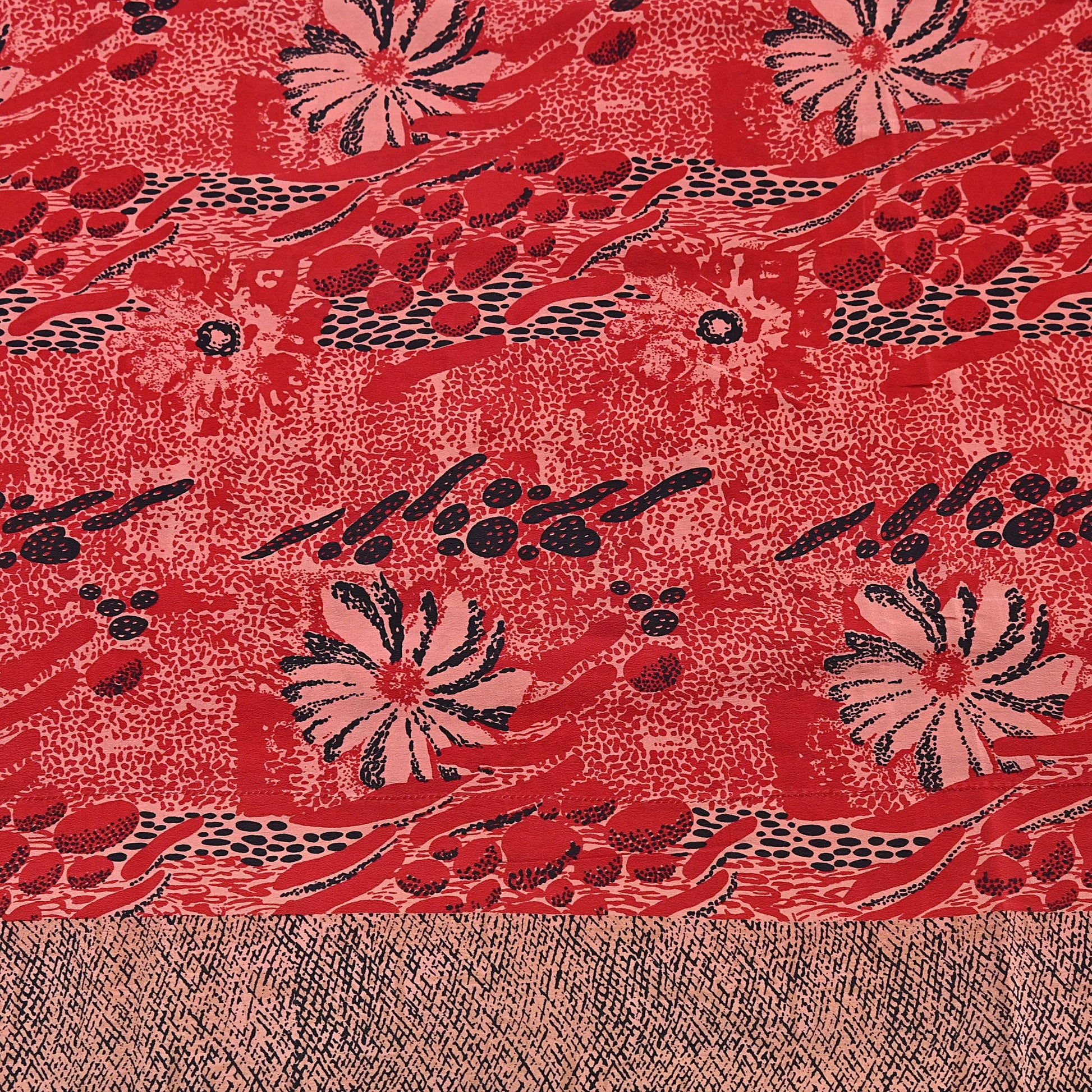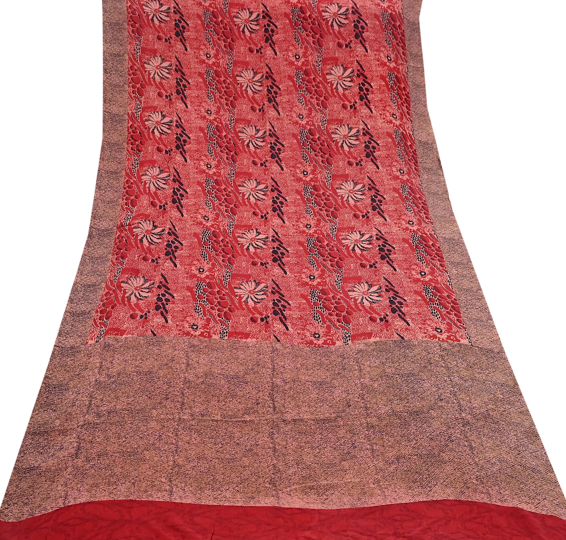 Indian Vintage Sari Black, peach & Red Pure Crepe Silk Printed Saree 5yard Sewing Soft Craft Fabric Wrap