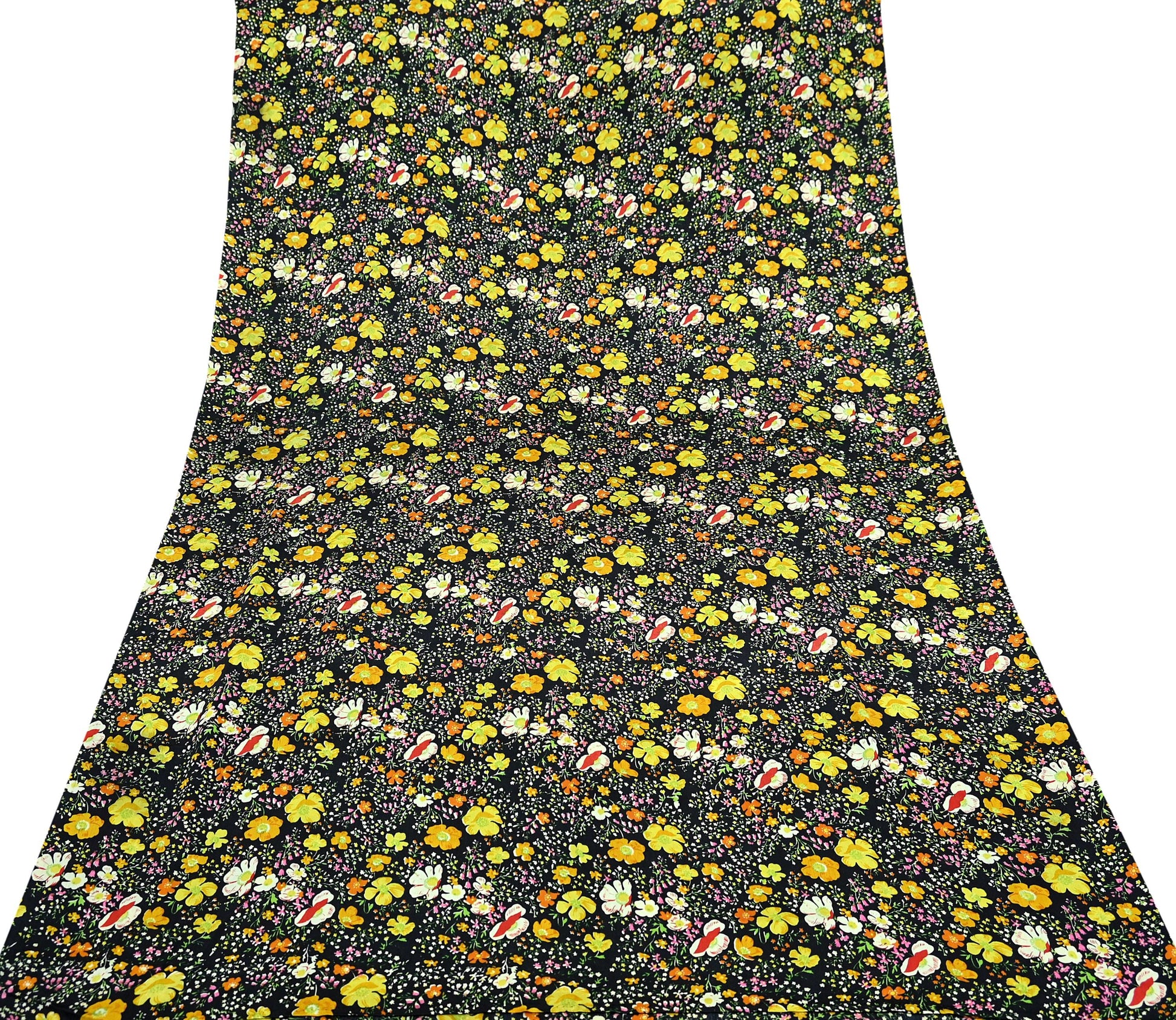 Indian Vintage Sari Black Printed 100% Pure Satin Silk Sarees 5yd Sewing Craft Fabric Dress Making Wrap Upcycle Quilting Crafting