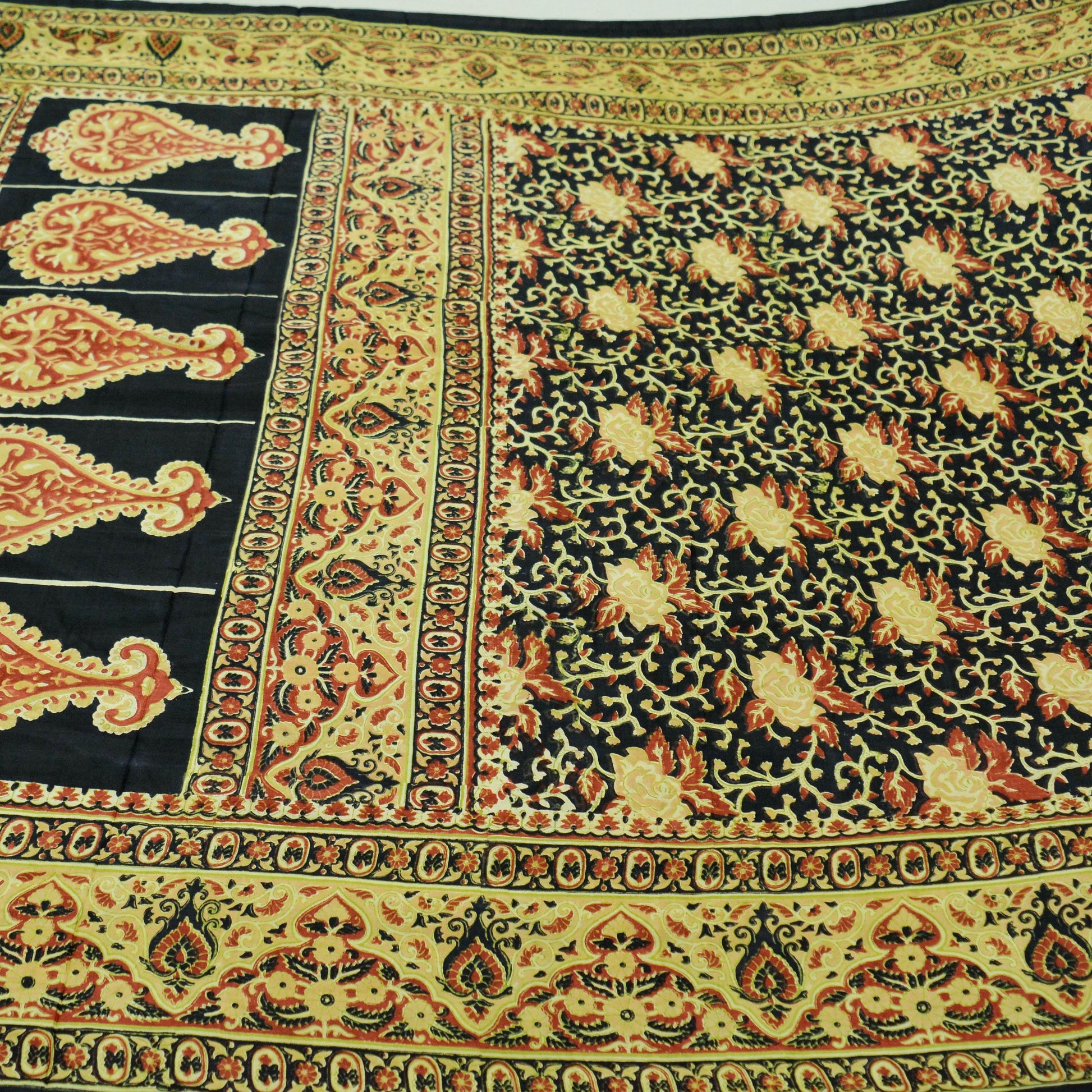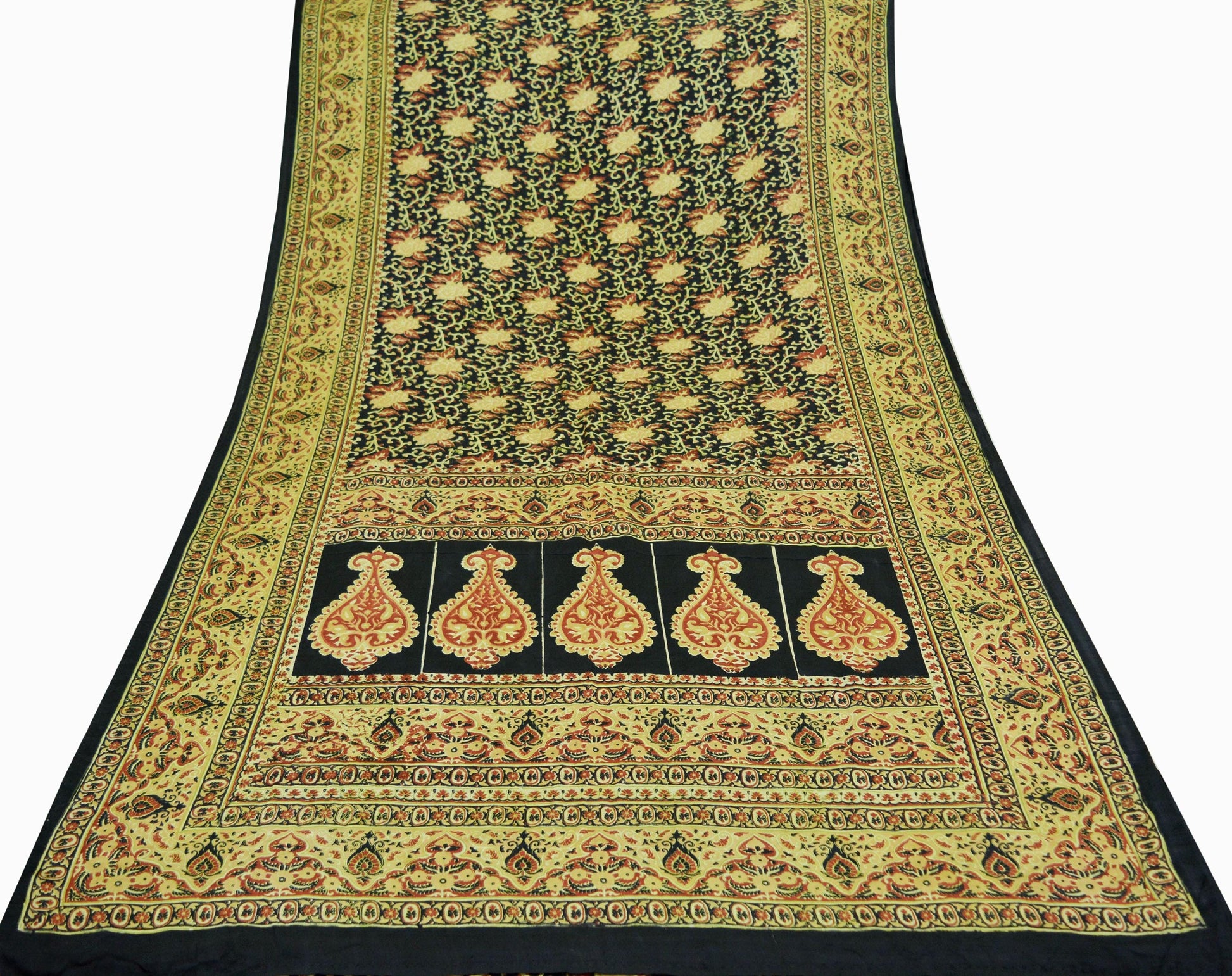 Indian Vintage Sari Black Printed Pure Silk Sarees Craft Fabric 5yd Sewing Floral Soft Dress Designing for Crafting Quilting Upcycle Wrap