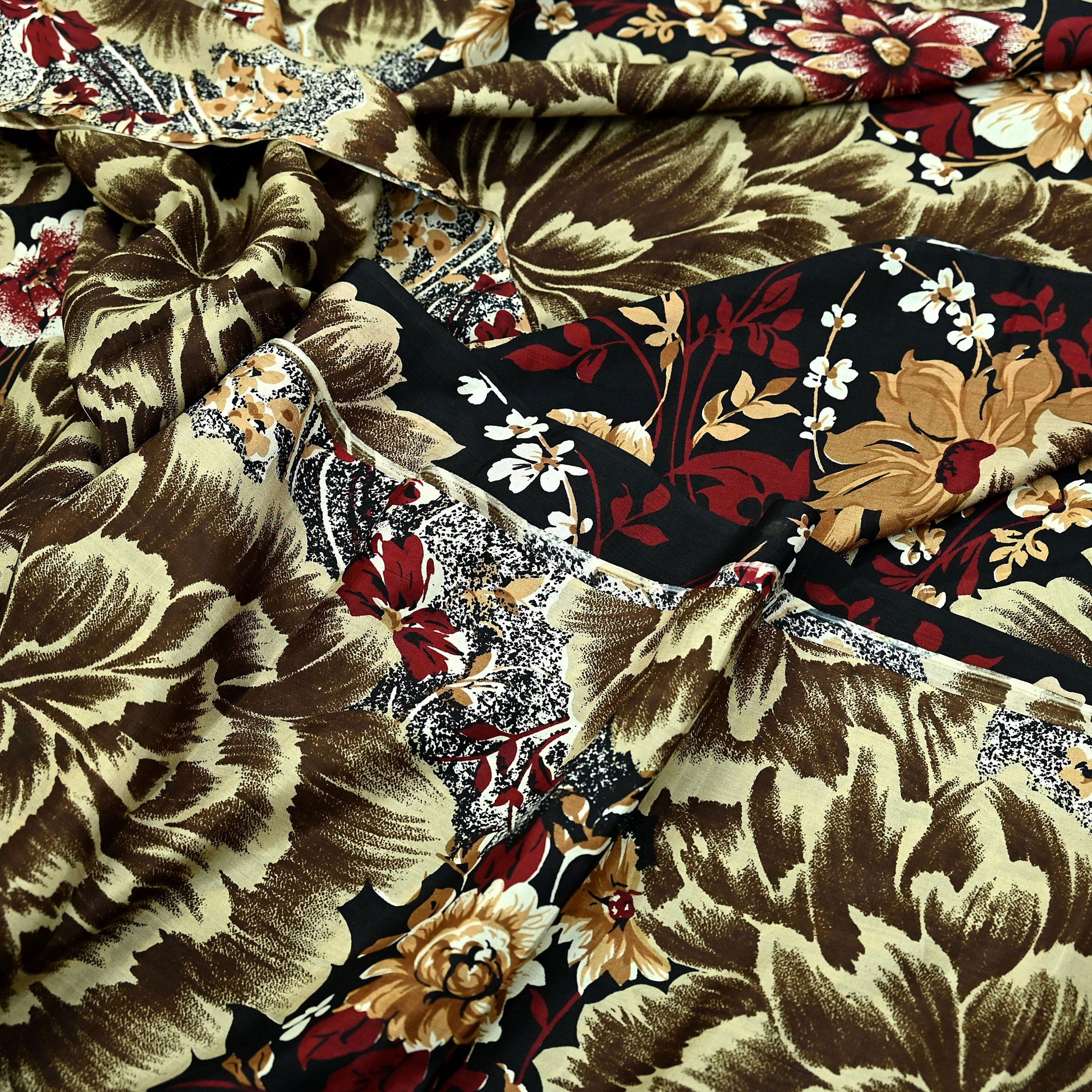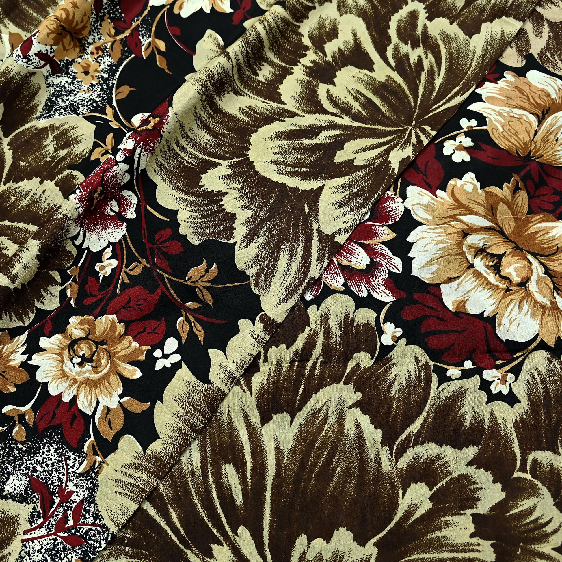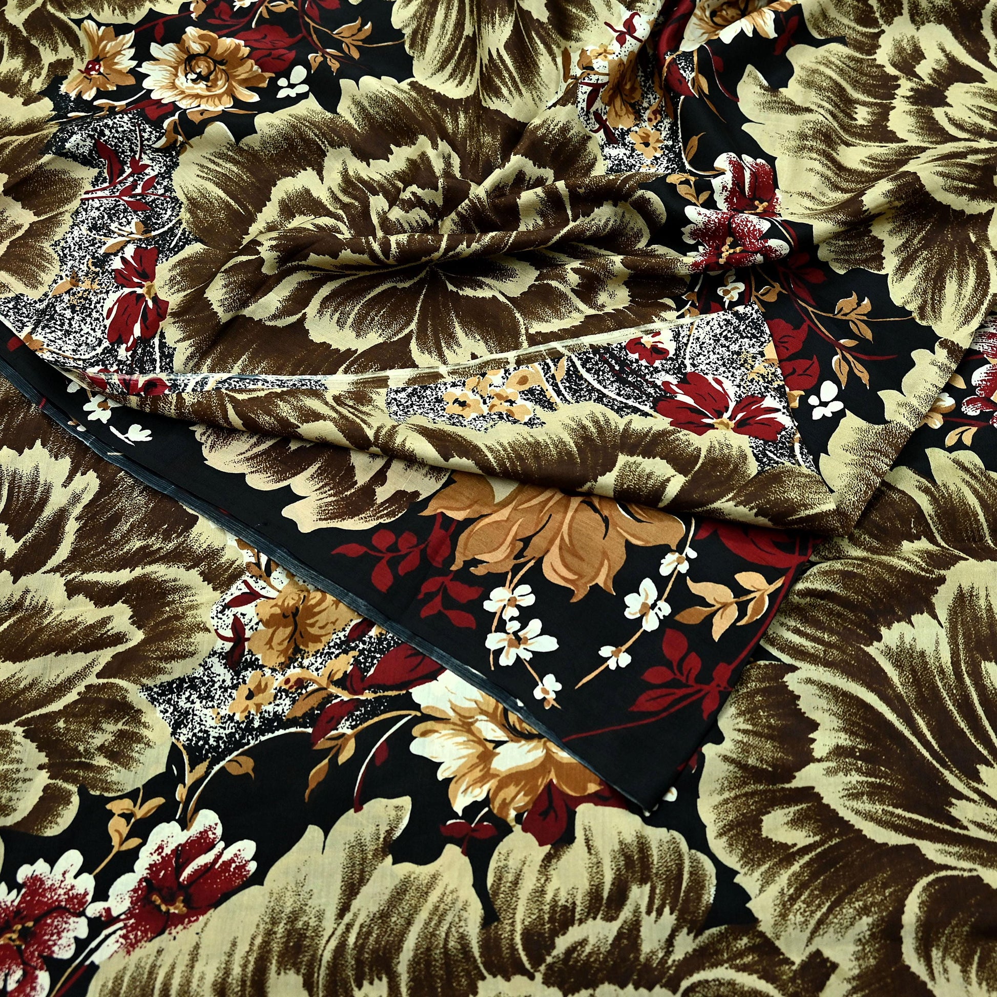 Indian Vintage Sari Black Printed Pure Silk Sarees Craft Fabric 5yd Sewing Floral Soft Dress Designing for Crafting Quilting Upcycle Wrap