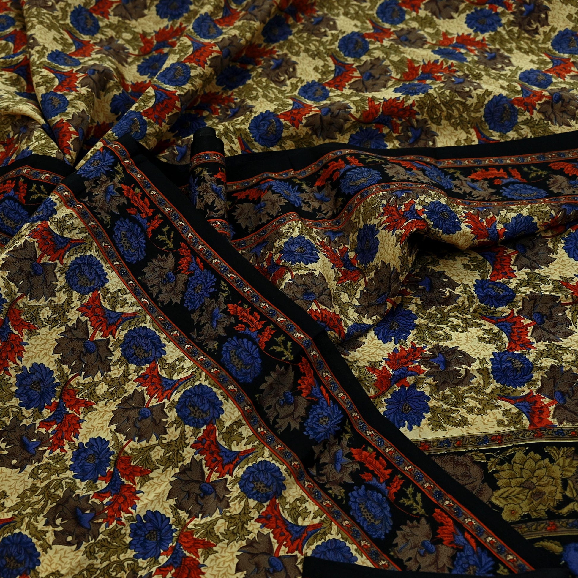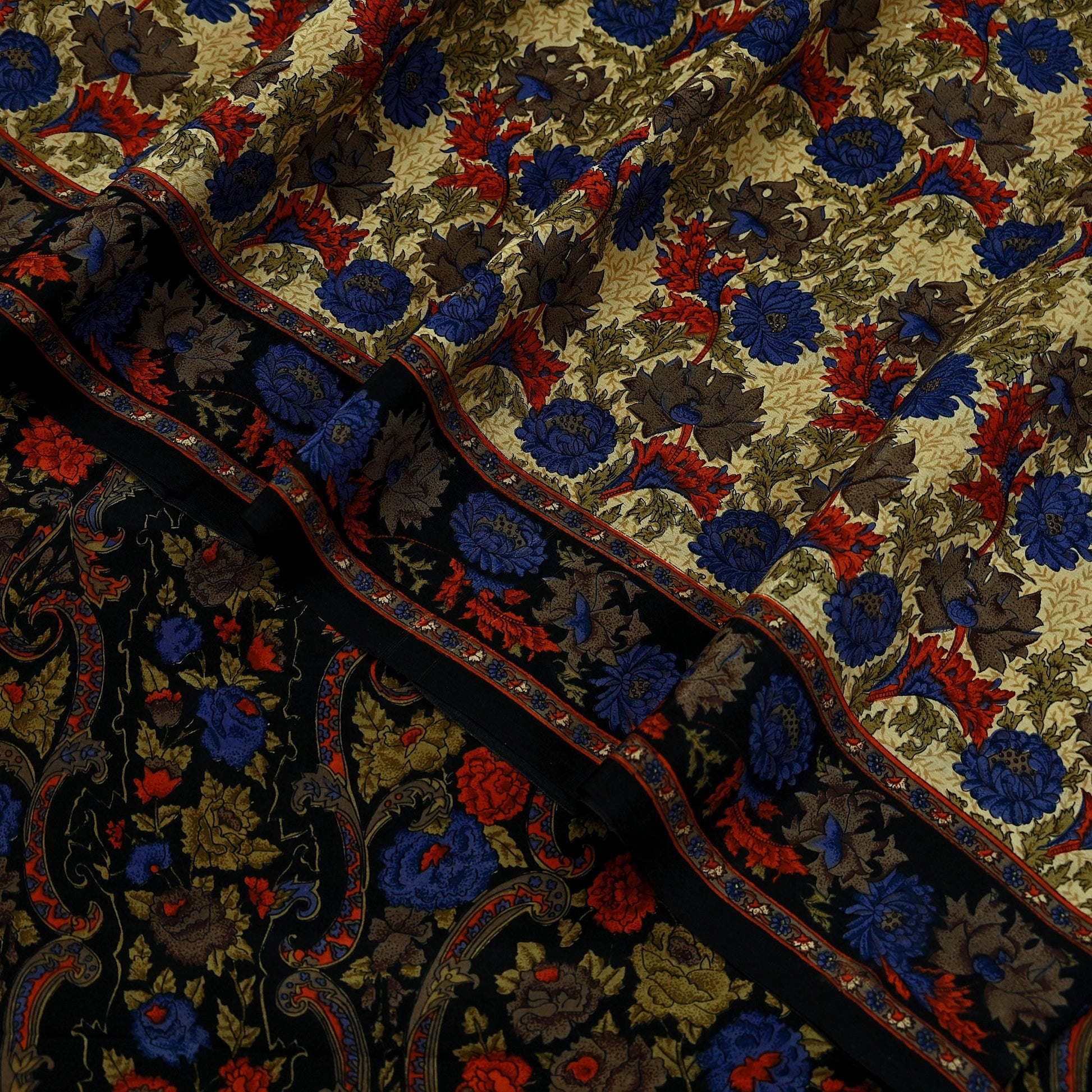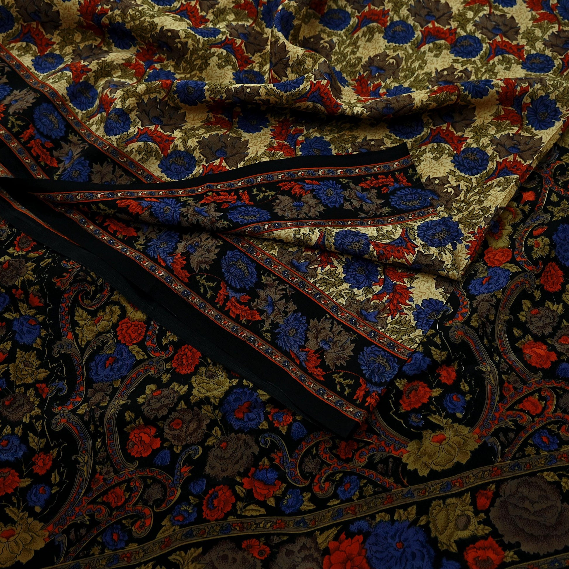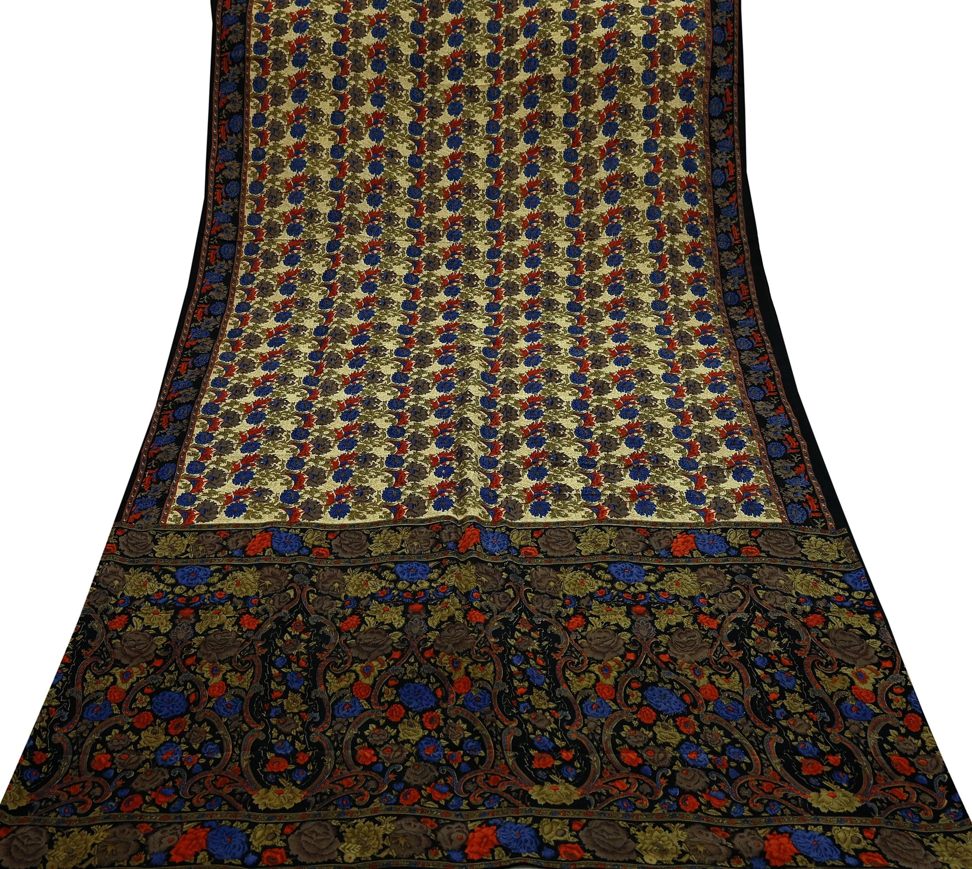 Indian Vintage Sari Black Pure Crepe Silk Printed Sarees 5yd Sewing Craft Fabric Floral Wrap Quilting Dress Making Crafting