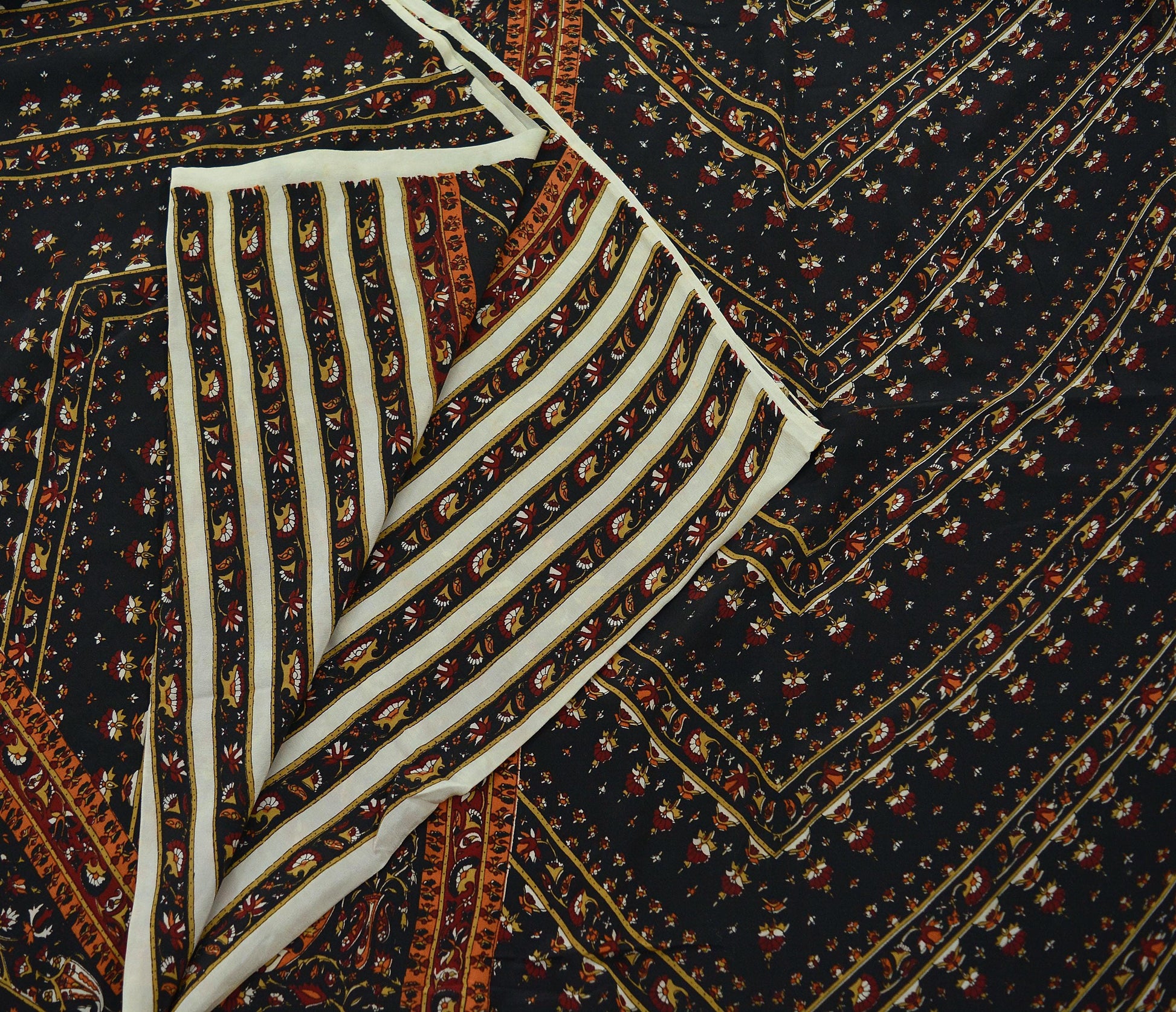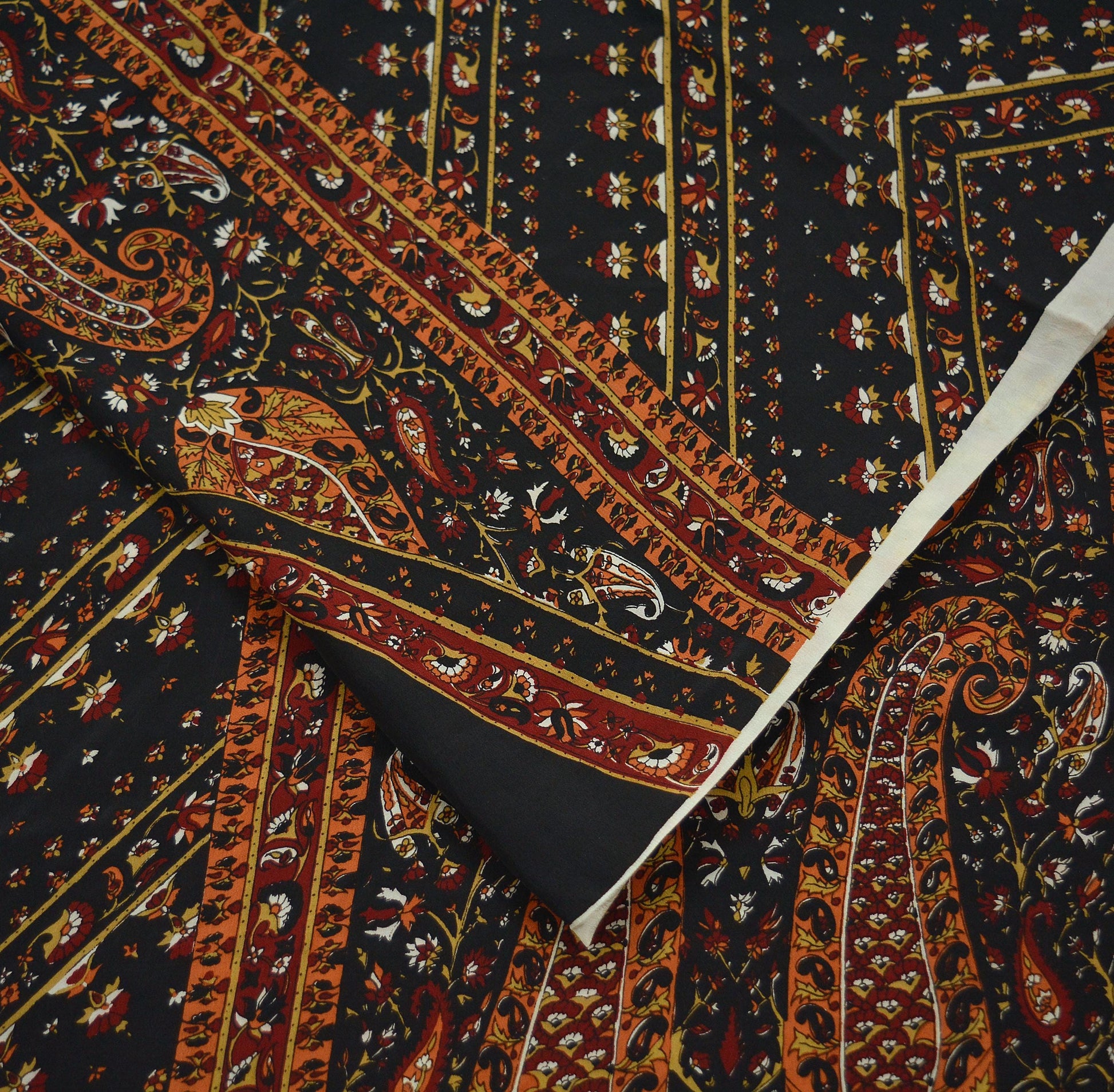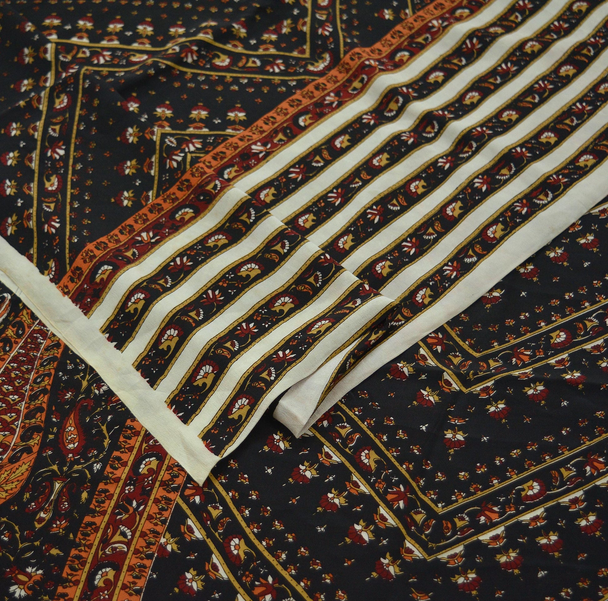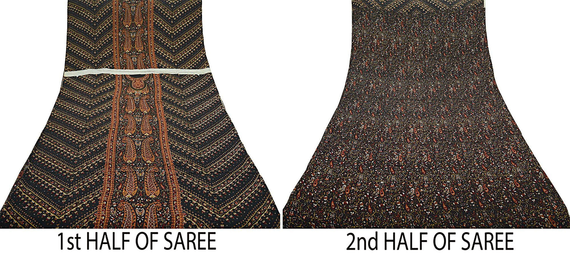 Indian Vintage Sari Black Pure Crepe Silk Printed Sarees 5yd Sewing Craft Fabric Soft Wrap Upcycle Crafting Dress Designing Quilting Paisley