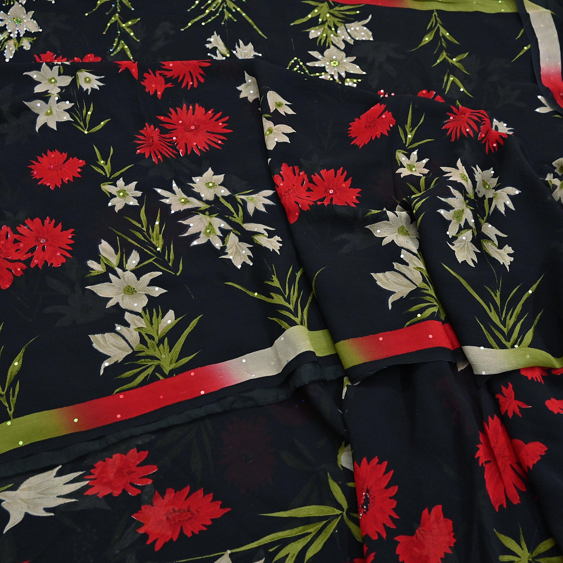 * Pallu & Border Has Printed Floral Design. with multi sequins work.