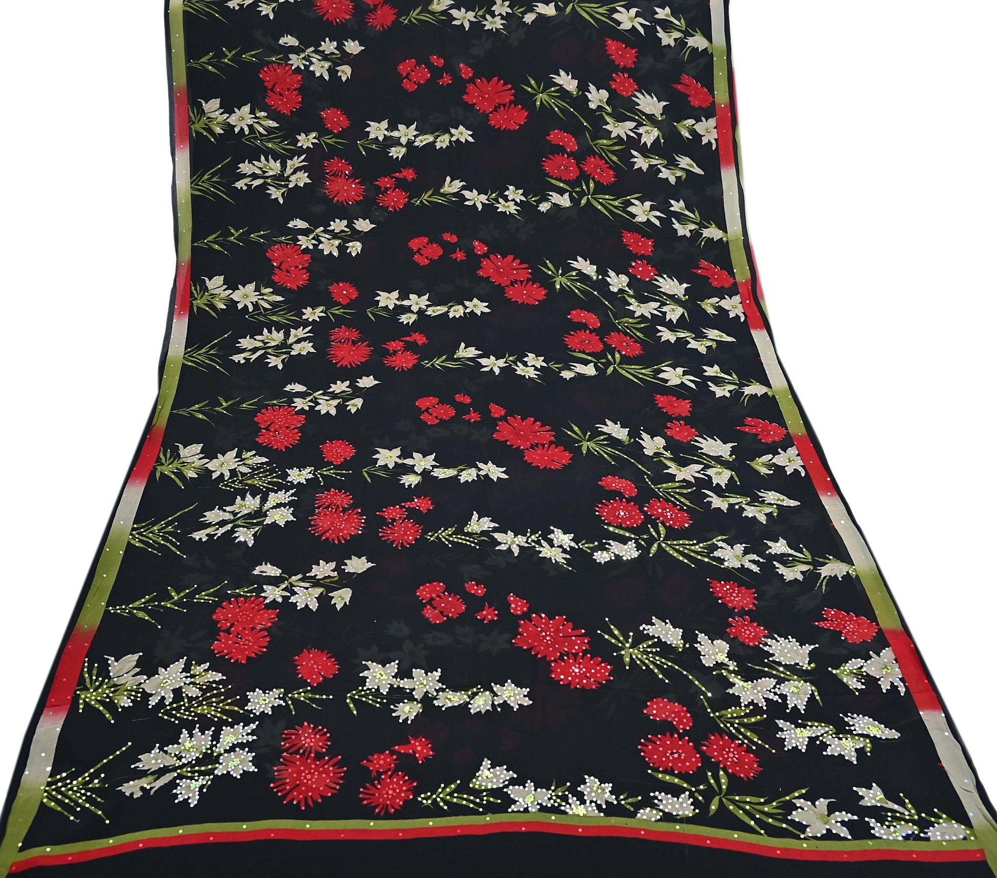 Indian Vintage Sari Black Pure Georgette Silk Printed Saree Craft Fabric Sewing 6Yd Soft Light Dress Making Crafting Quilting Upcycle