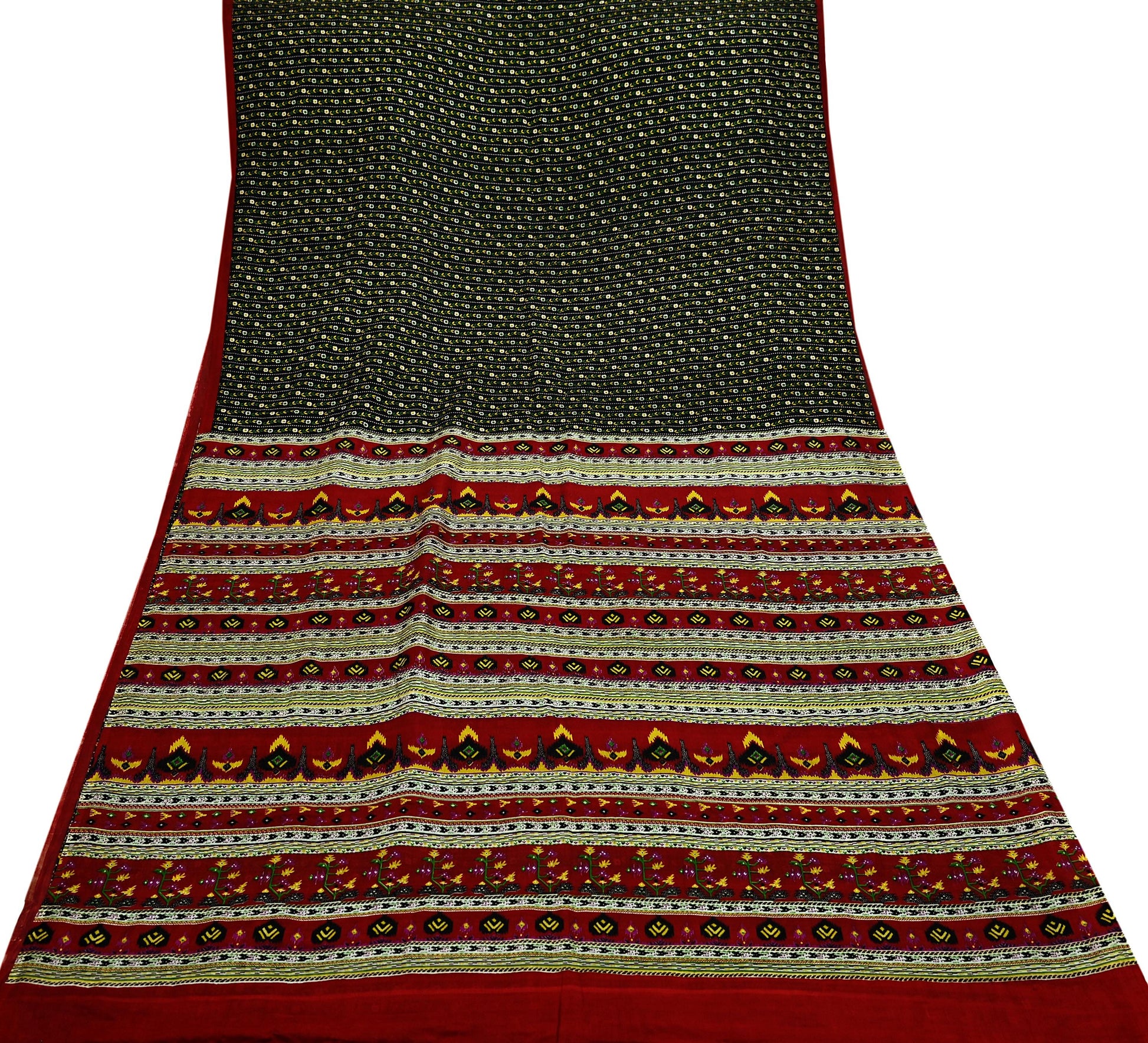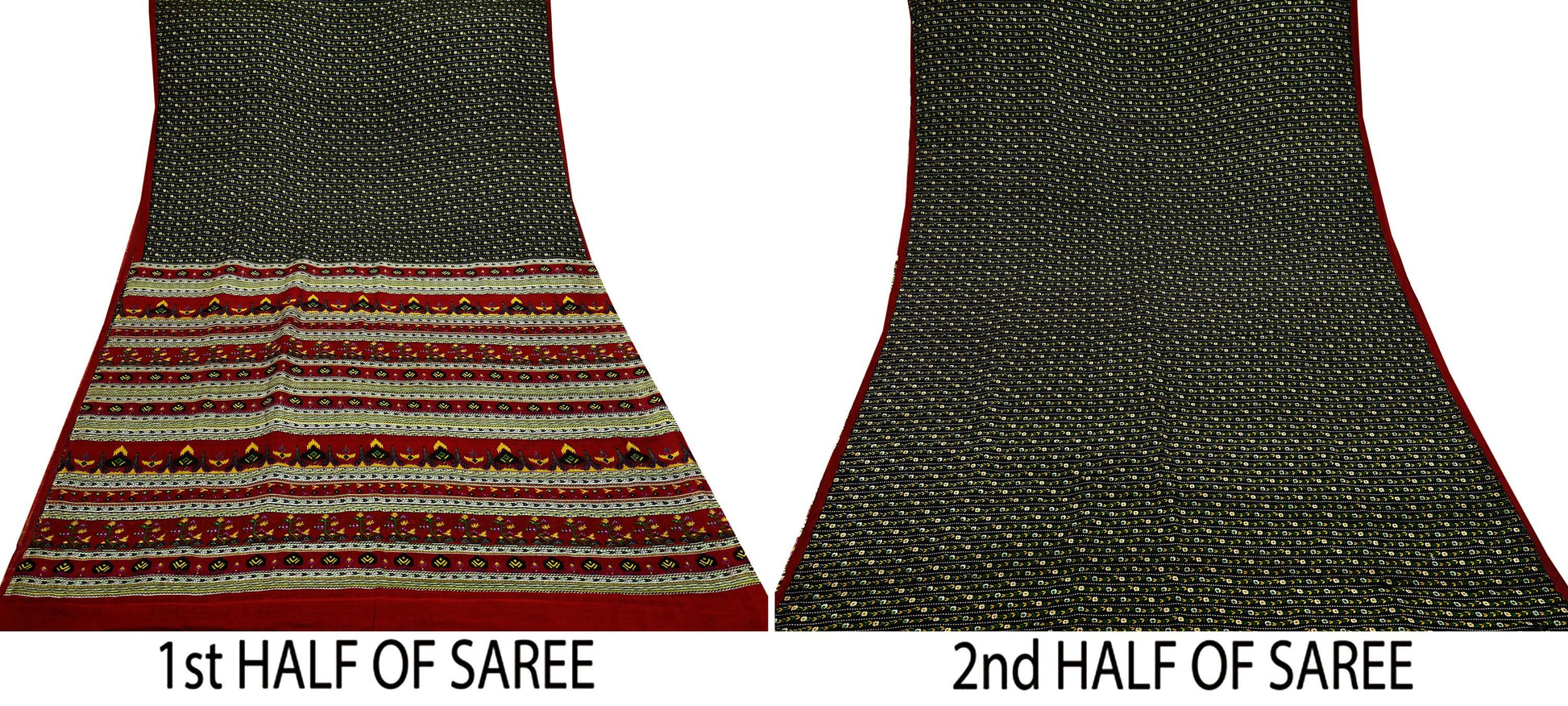 Indian Vintage Sari Black & Red Pure Silk Printed Sarees 5yd Sewing Craft Fabric Dress Making Soft For Crafting Quilting Upcycle