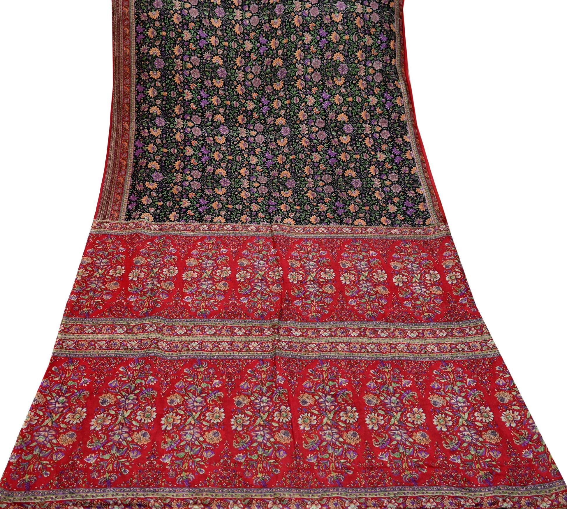 Indian Vintage Sari Black & Red Pure Silk Printed Sarees 6yd Sewing Craft Fabric Dress Making Soft For Crafting Quilting Upcycle