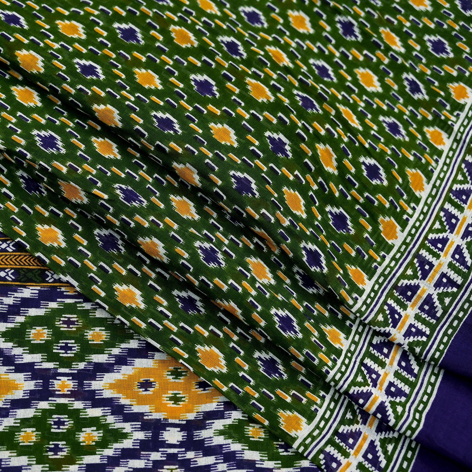 *Beautiful Blue & Green Colored Printed Saree Pure Cotton Sari.