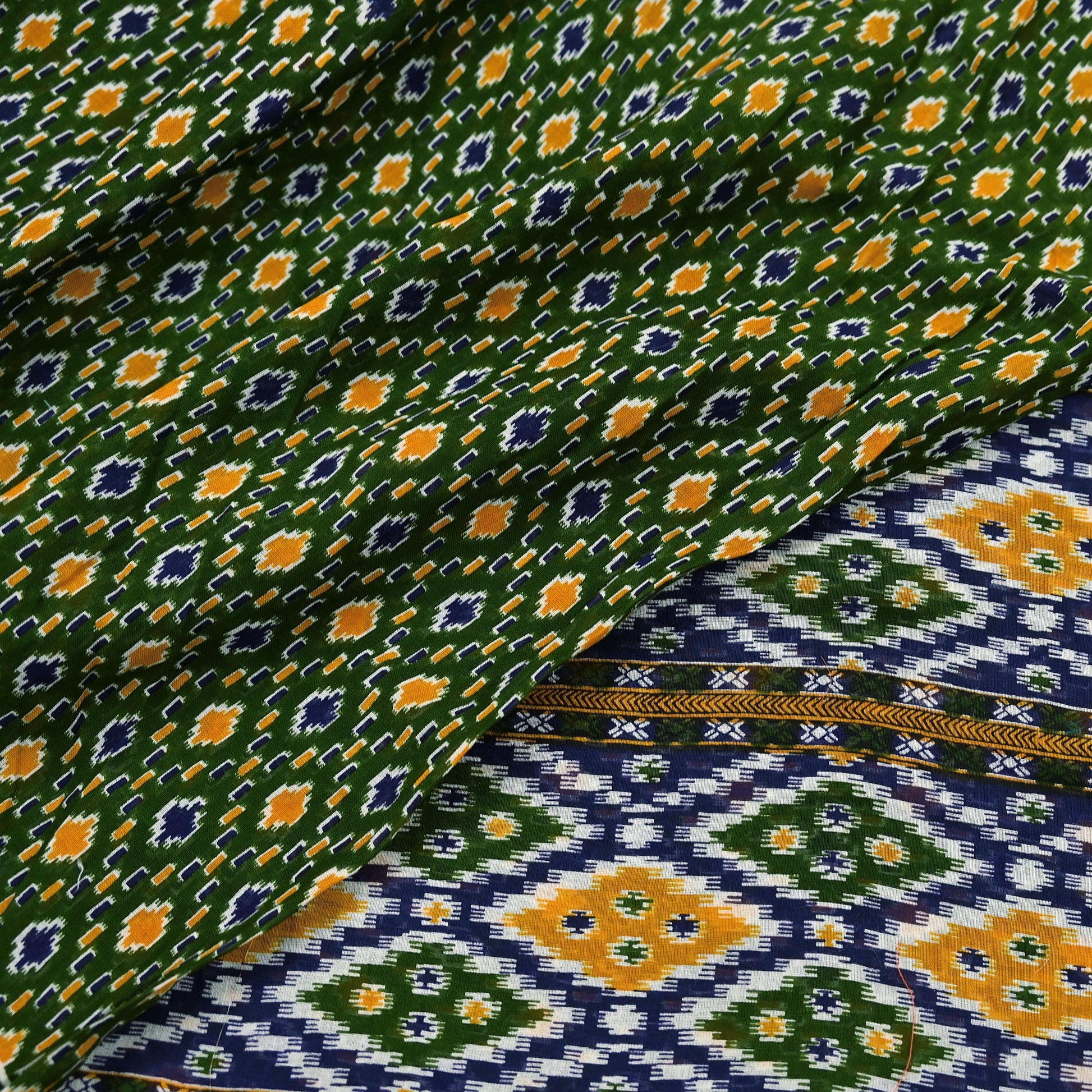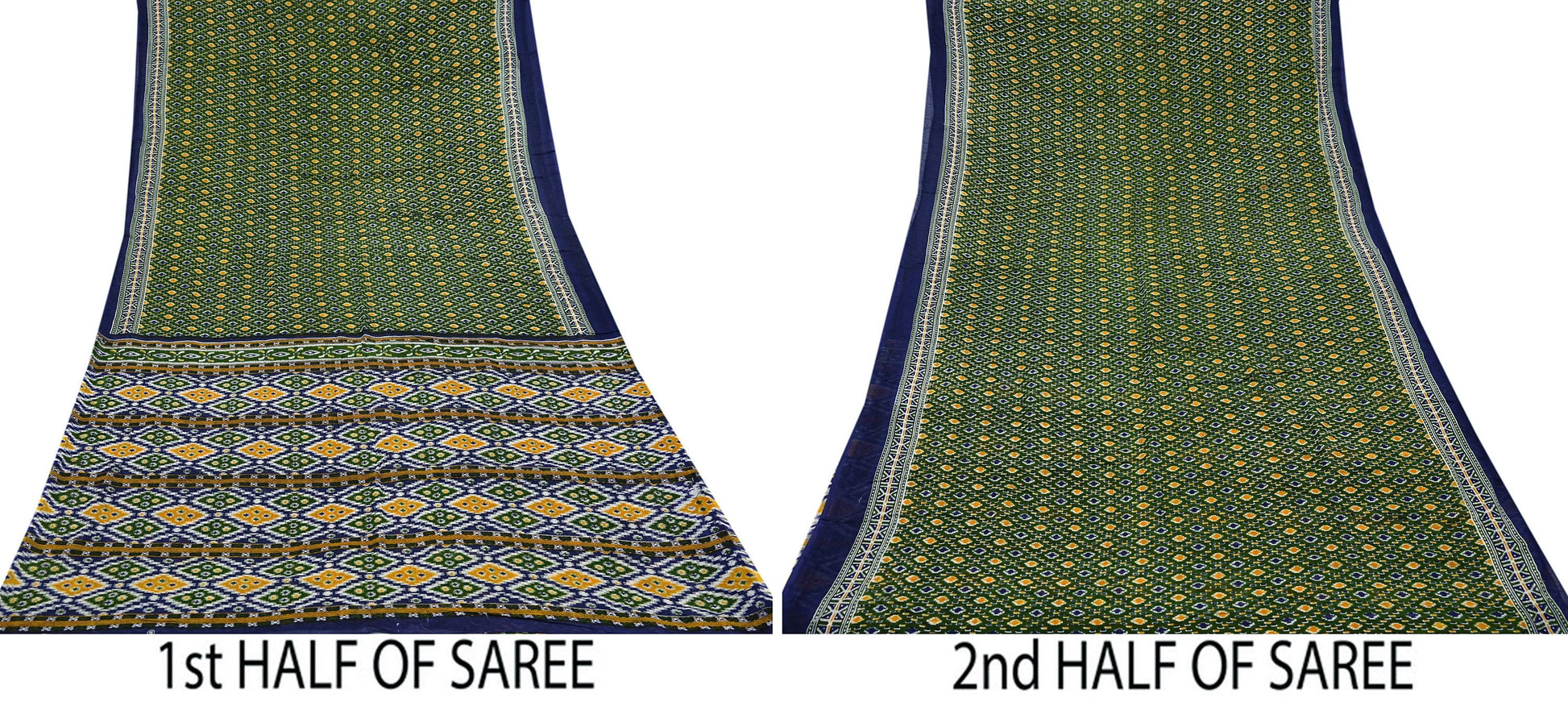 Indian Vintage Sari Blue & Green Pure Cotton Printed Sarees Craft Fabric 5Yd Soft Sewing Sarong Wrap Boho Floral Quilting Upcycle Crafting