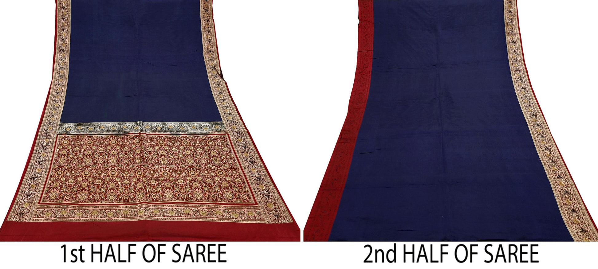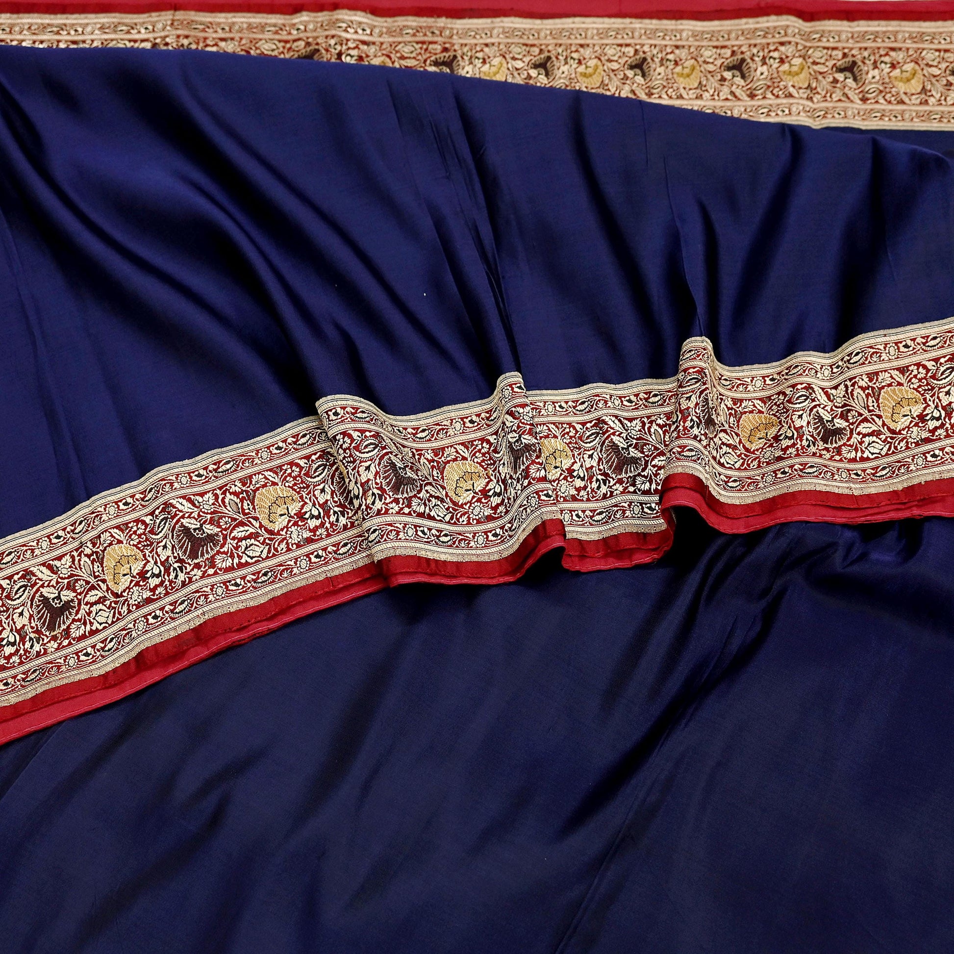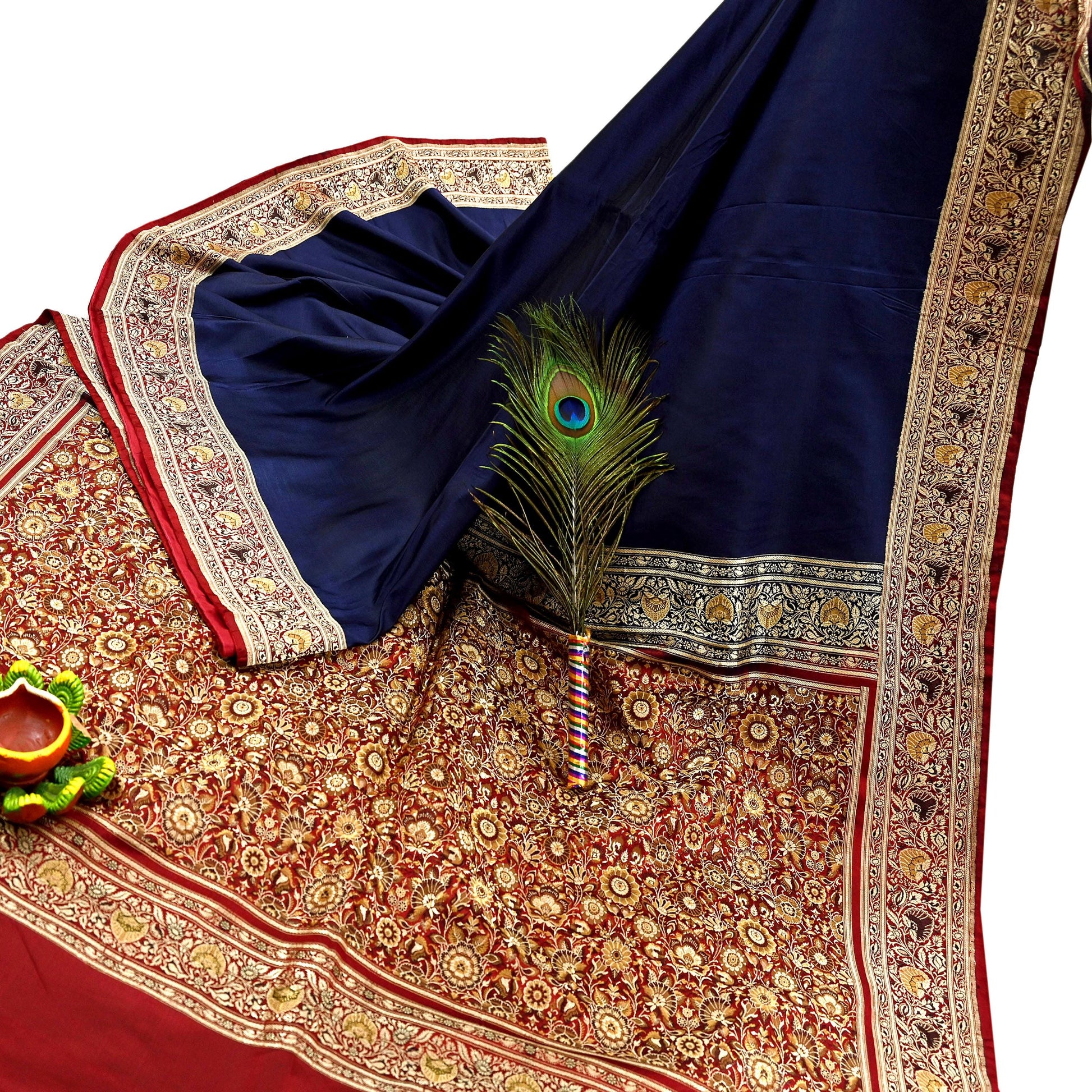 Indian Vintage Sari Blue & Maroon Heavy Pure Satin Silk Woven Banarasi Tanchoi Saree 5Yd Ethnic Craft Fabric Upcycle Bridal Heavy Sarees