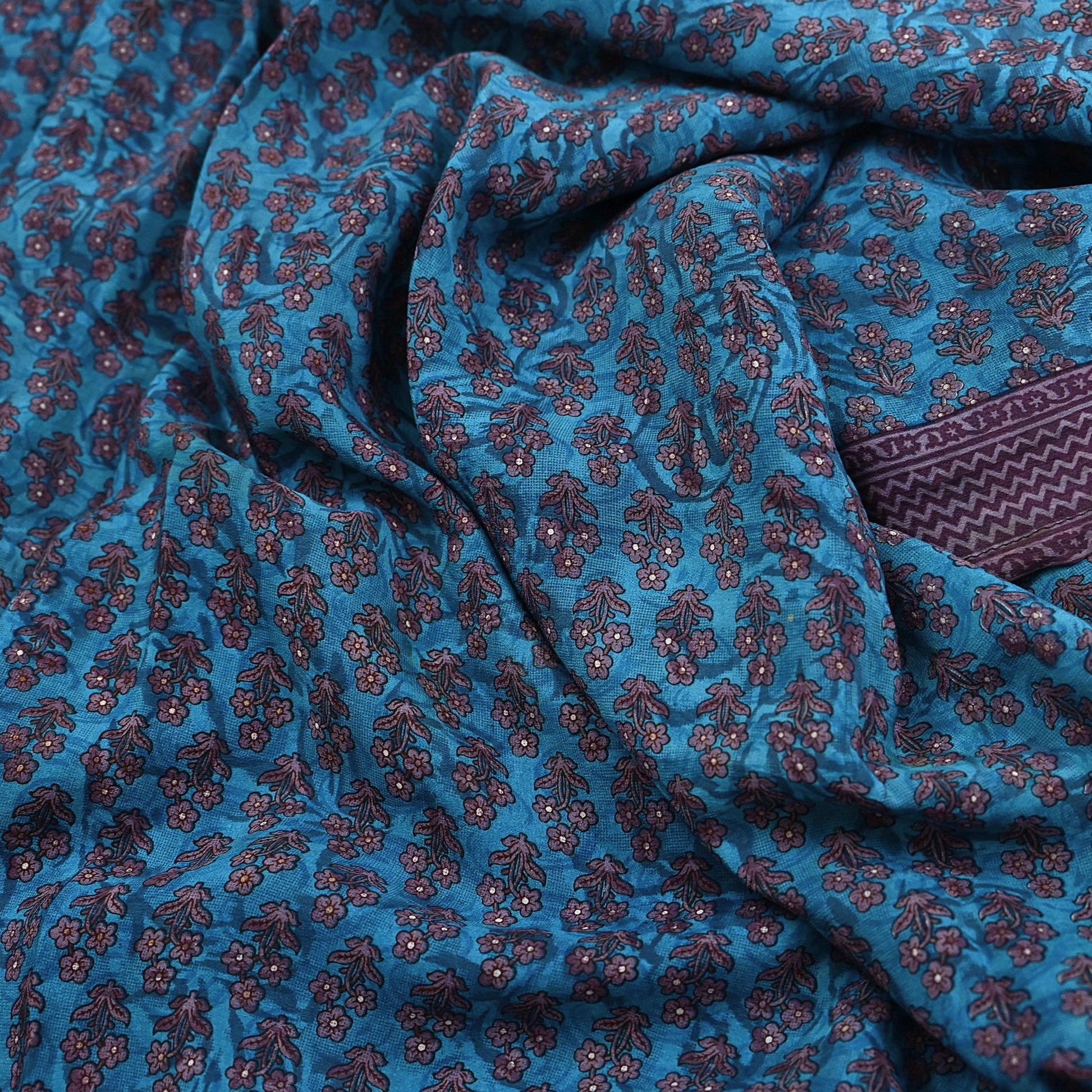 🔹This unique vintage Blue Colored Printed Pure Crepe Silk Saree Fabric.