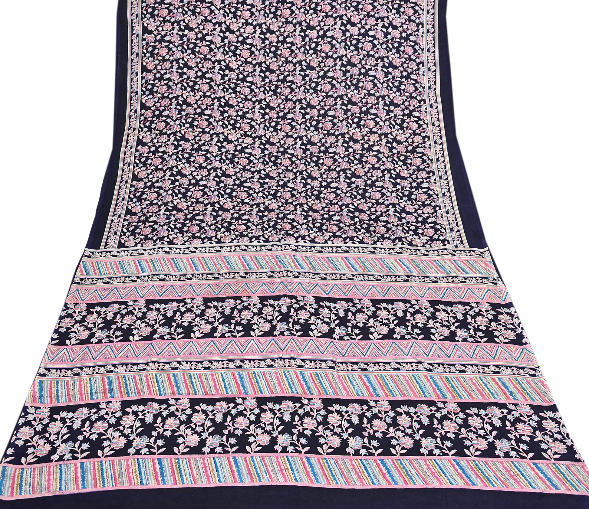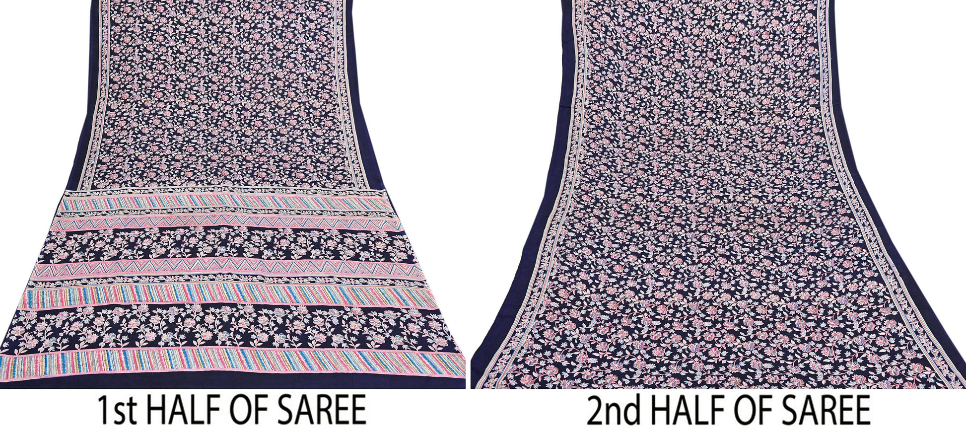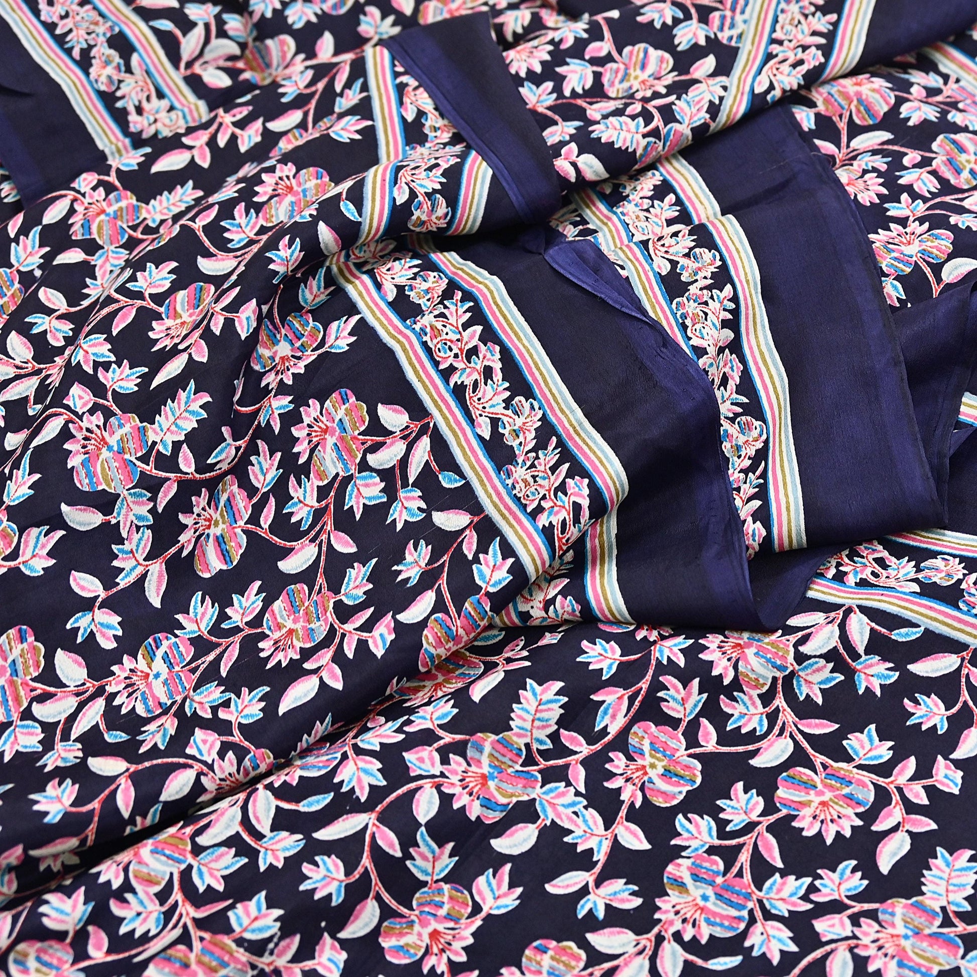 Indian Vintage Sari Blue Pure Silk Printed Saree Fabric 5yard Sewing Craft Fabric DressMaking Wrap Floral