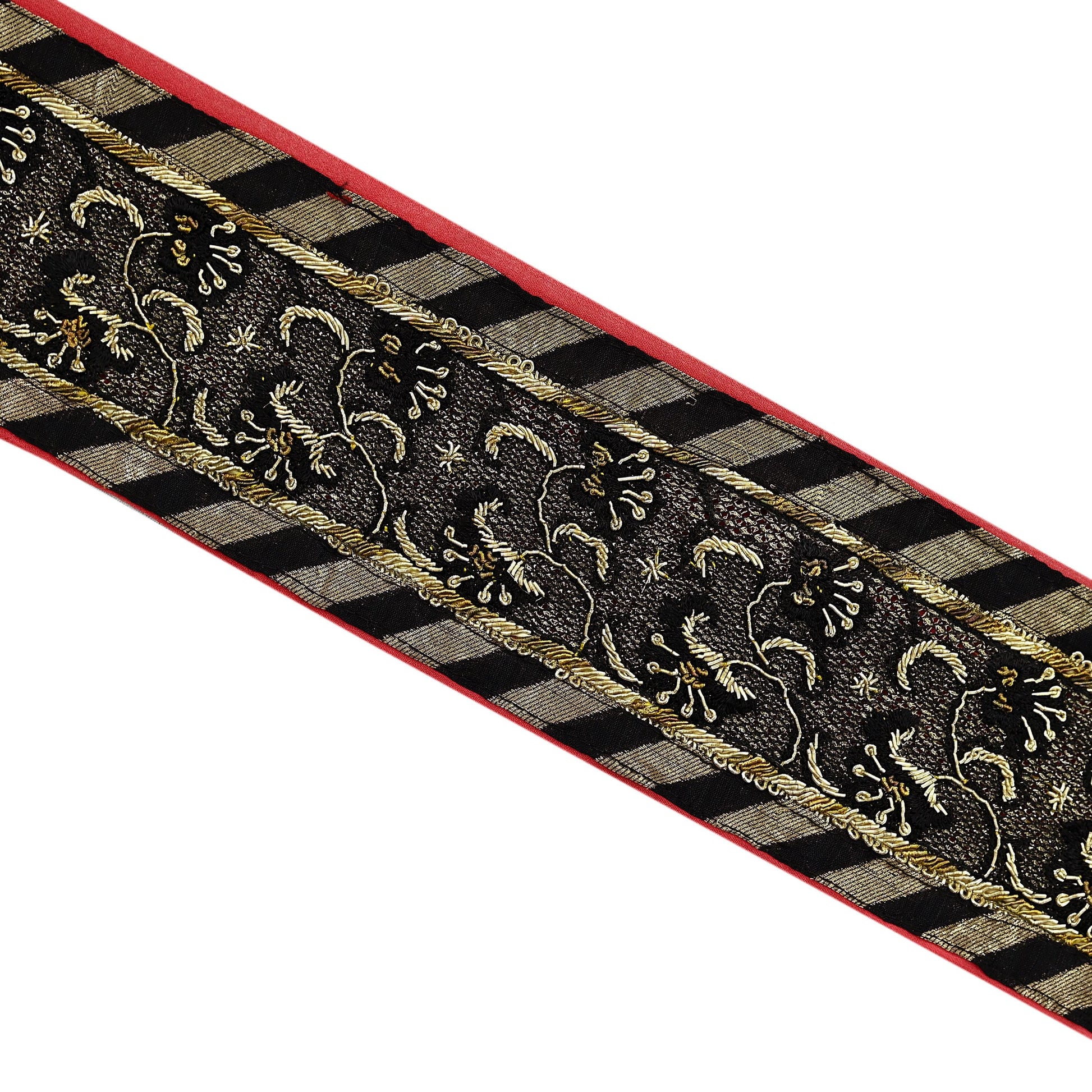 Indian Vintage Sari Border Hand Embroidered Craft 1yd Trim Lace Sewing Pure Georgette Silk Ribbon Recycled Zardozi