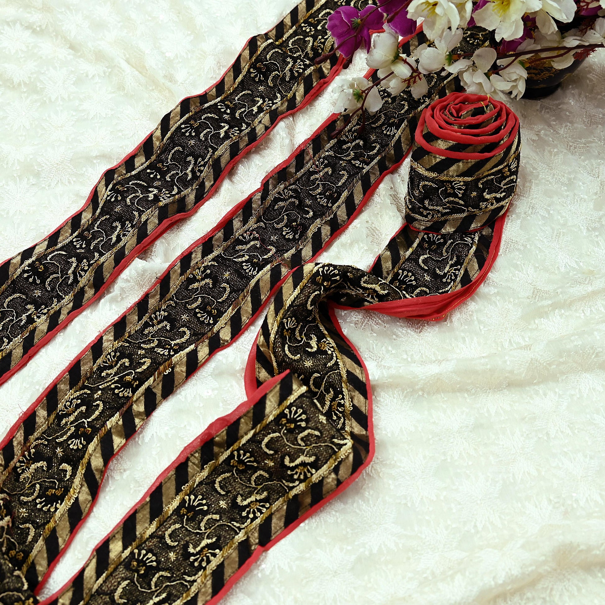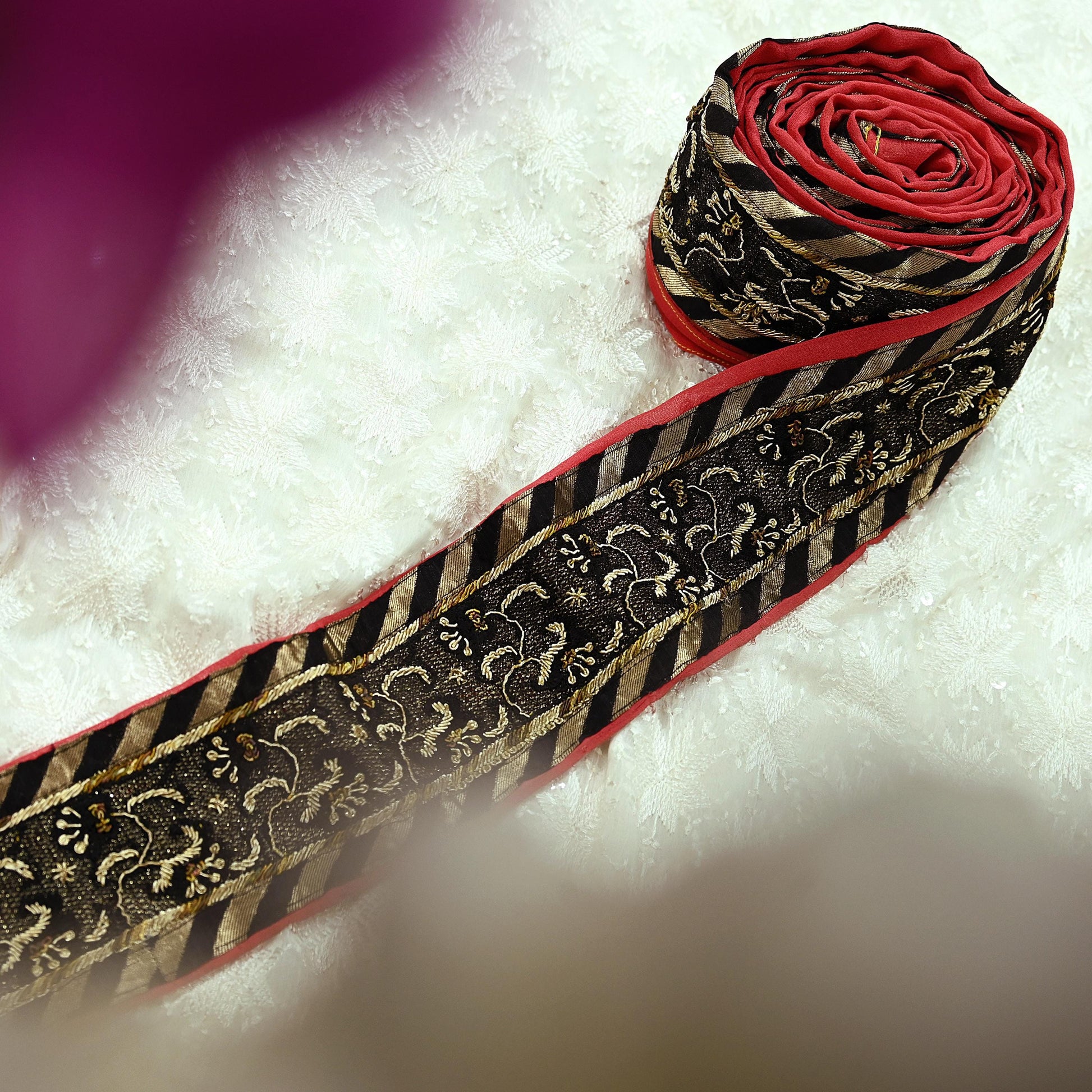 *Border Has Beautiful Floral Patterns Golden Zardozi/Dabka, Zari, Black Thread Work. Wit Black Lace Attached & Black Mesh Work On The Border.