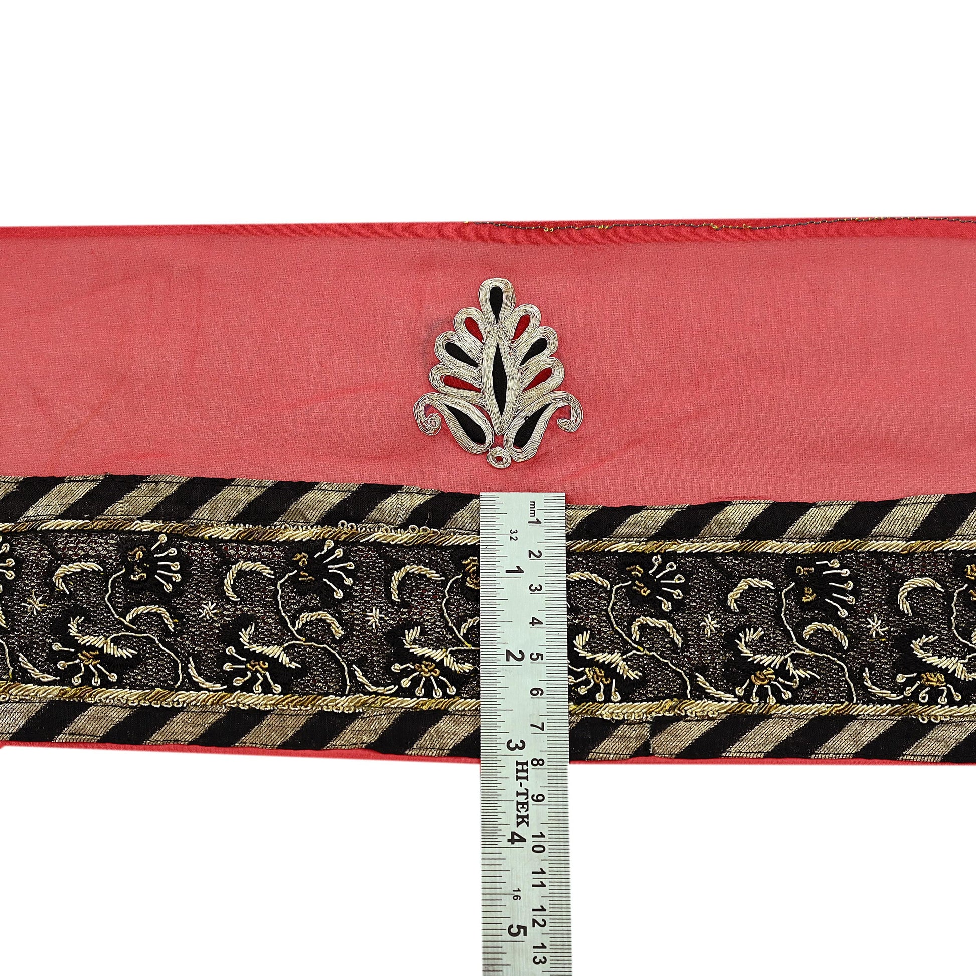 *Graceful Pure Georgette Silk & Net Hand Embroidered Sari Border In Pink & Black Color Highlighting Golden Zardozi/ Dabka Zari Work.