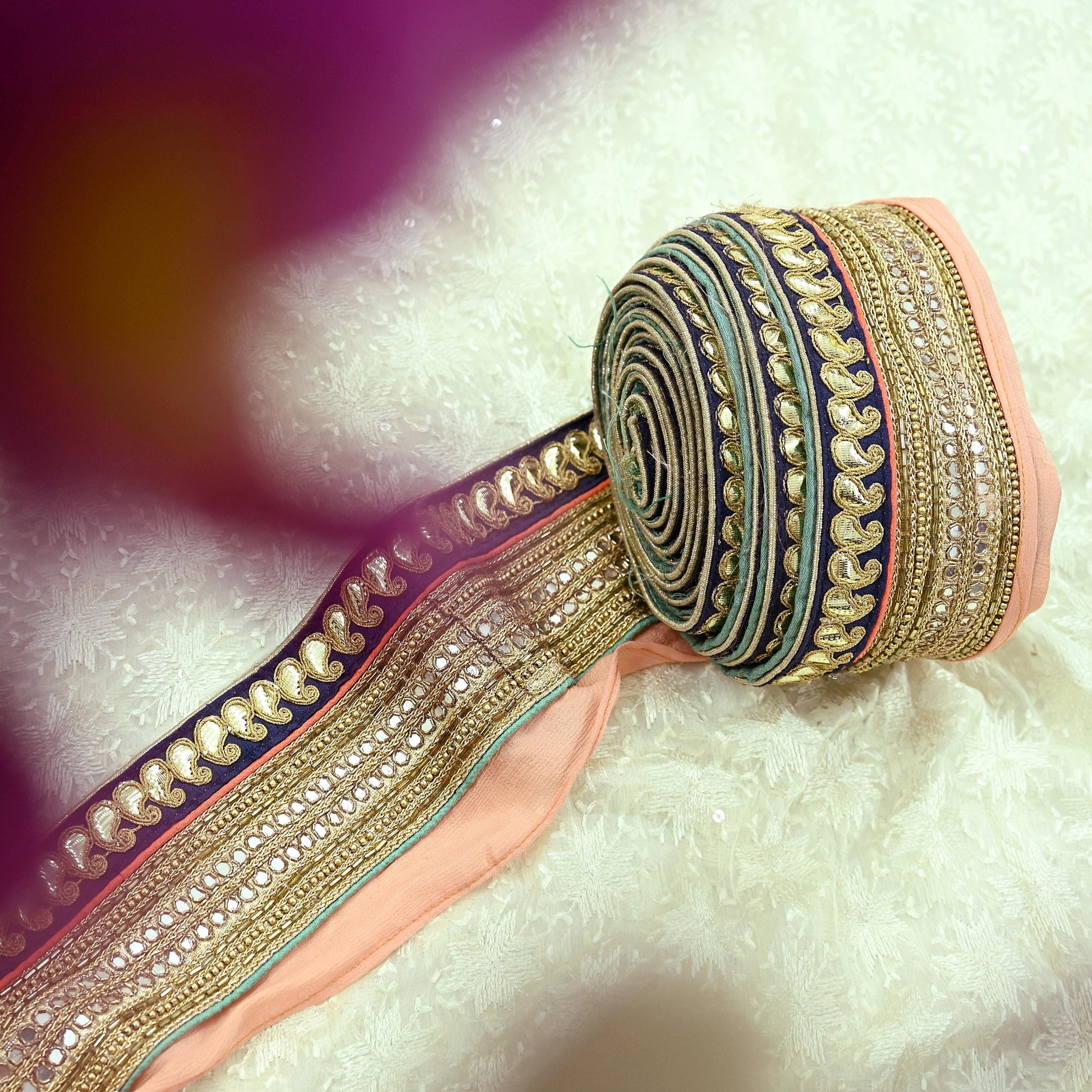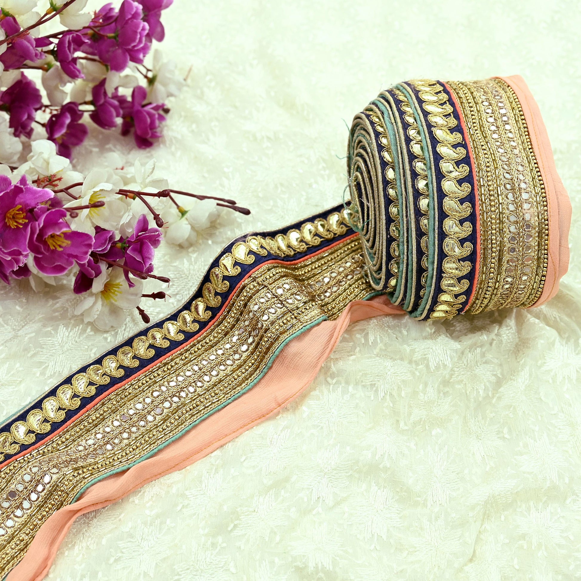 *Border Has Beautiful Paisley Patterns Golden Zardozi/ Dabka, Zari, Mirror, Golden Gota Patti, Golden Beaded, Golden Glass Beaded, Work.