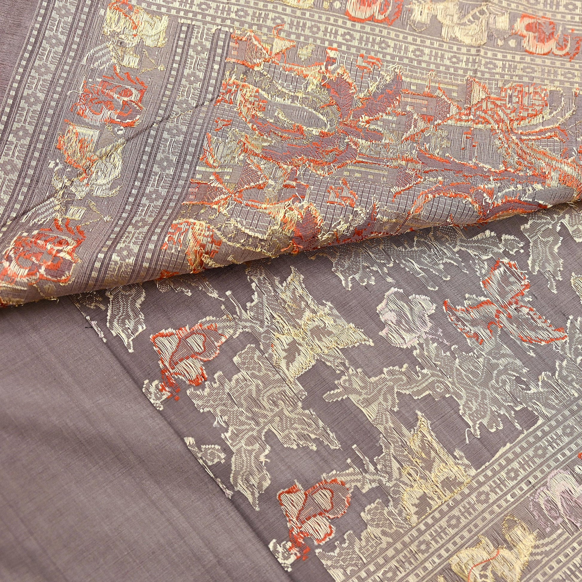 *pallu & border sari features Floral Motif Design with Golden Woven Zari, Orange & Beige Woven Thread work.