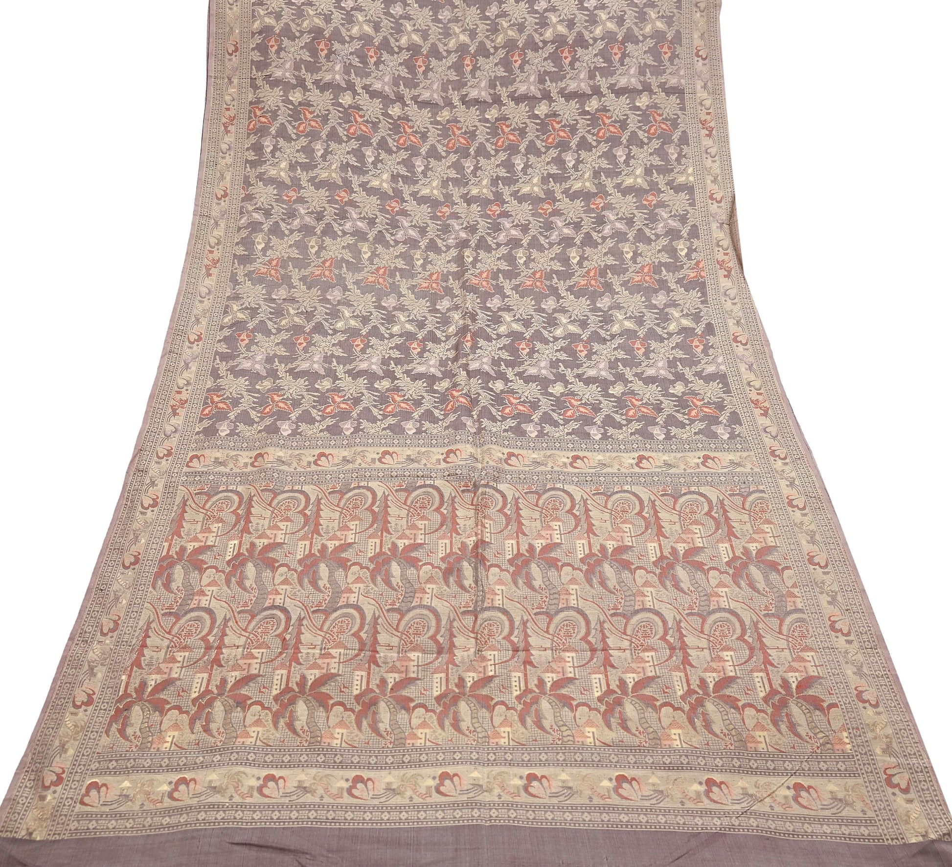 Indian Vintage Sari Brown 100% Pure Silk Hand Woven Sarees Craft Fabric 5Yd Ethnic Sewing Dress making Crafting Quilting Upcycle