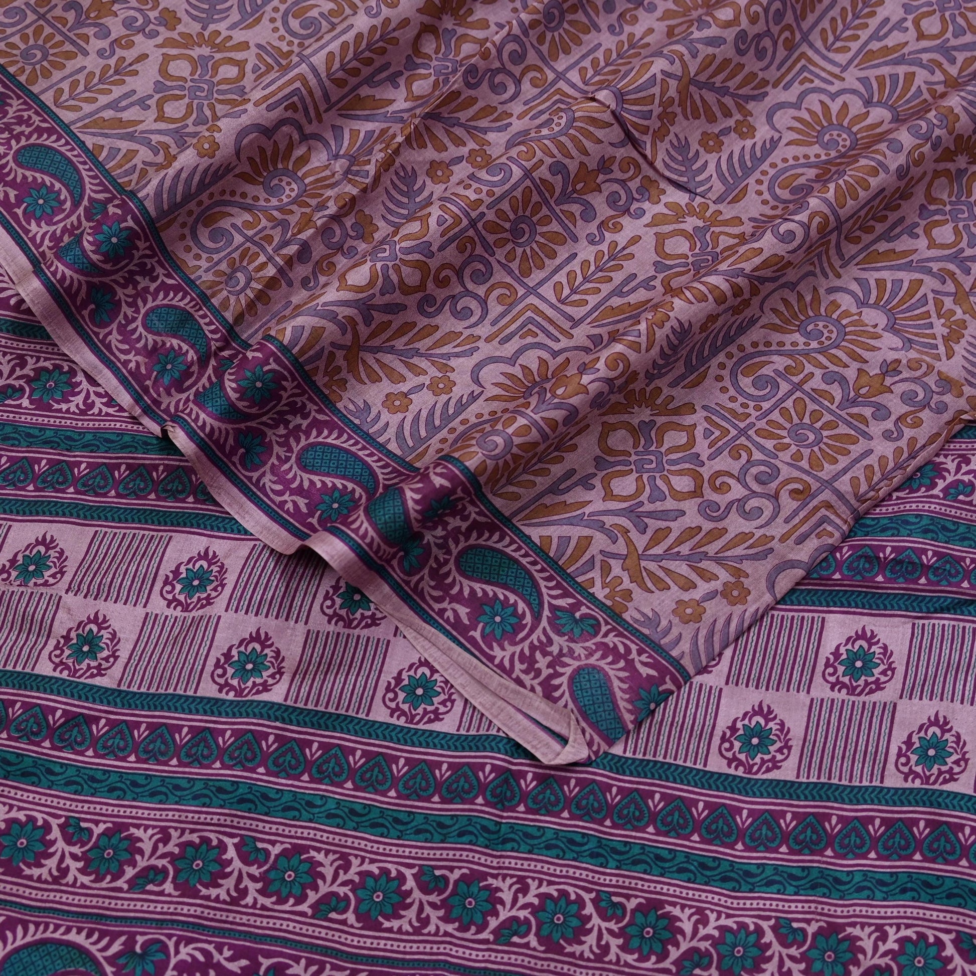 Indian Vintage Sari Brown 100% Pure Silk Printed Saree Craft Fabric 6yd Sewing DressMaking Wrap Floral Crafting Quilting Used Upcycle