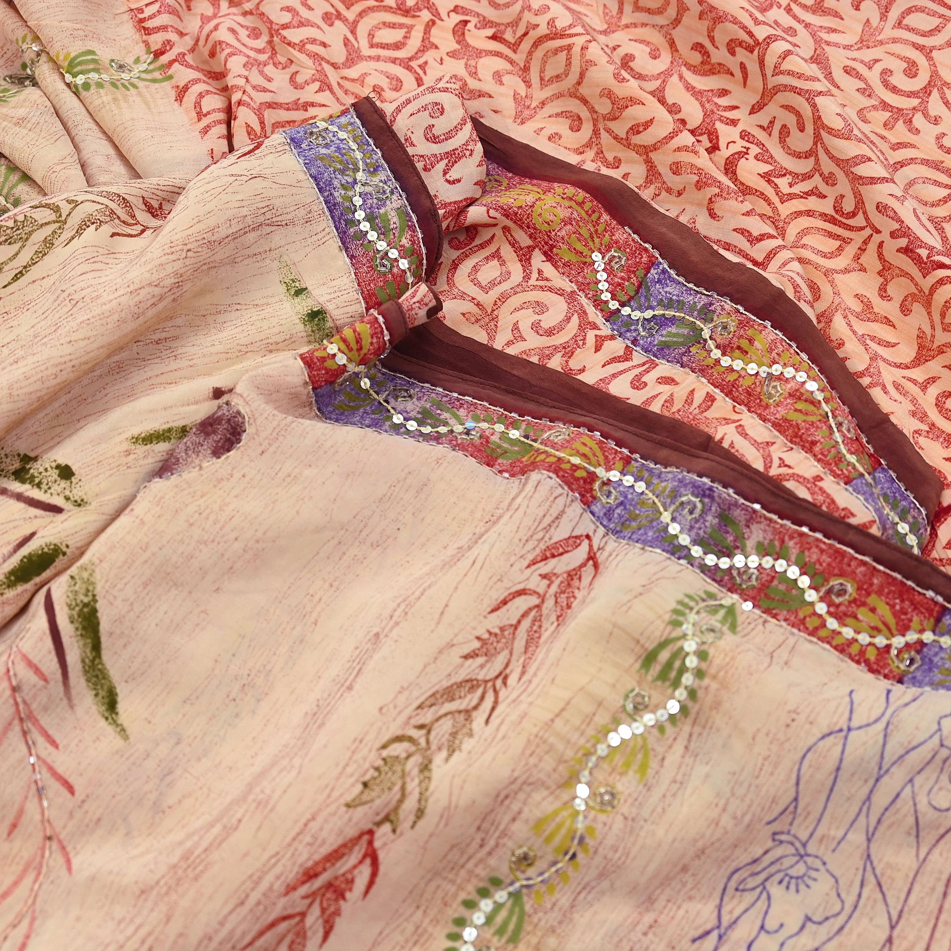 Nice Sequins Work With Printed Saree On Brown & Beige Color Base Fabric Is Really Enhancing The Beauty Of The Saree.