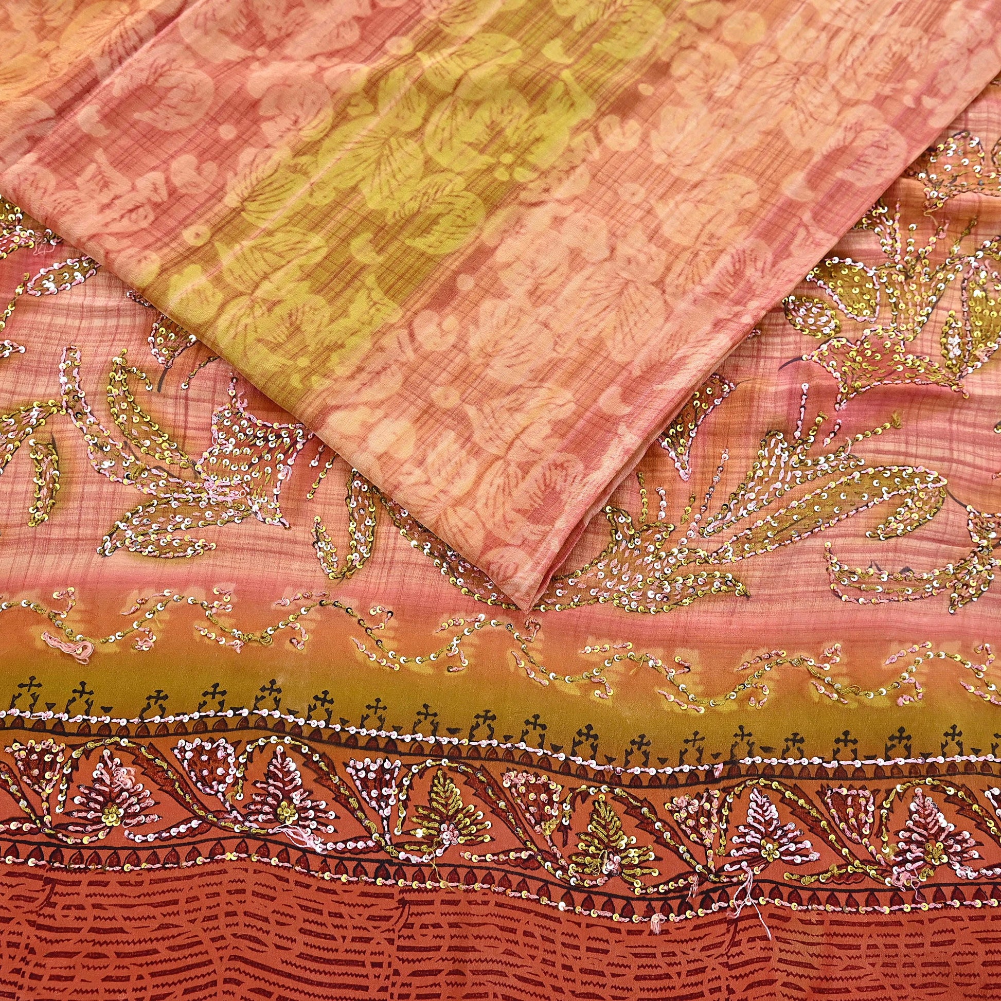 *Sari Has All Over Beautiful Floral Design. With Golden & silver Sequins, Pink & Green Thread Work.