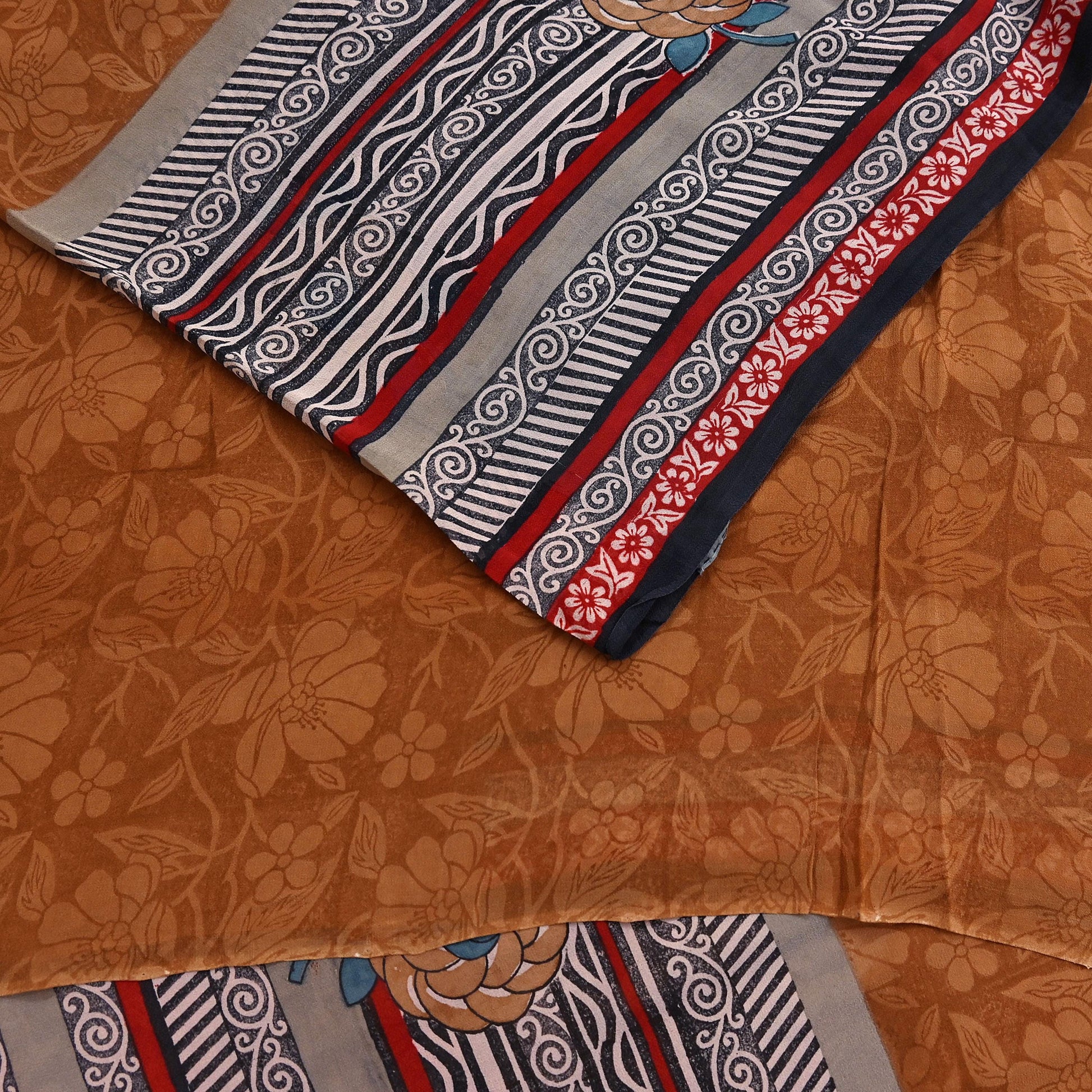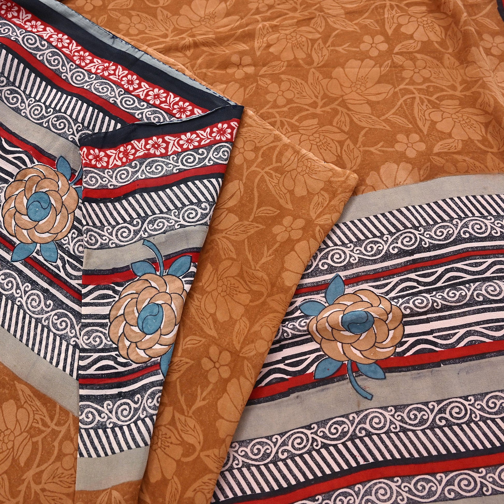 Nice Floral design with printed work on Brown & Maroon color base fabric is really enhancing the beauty of the saree.