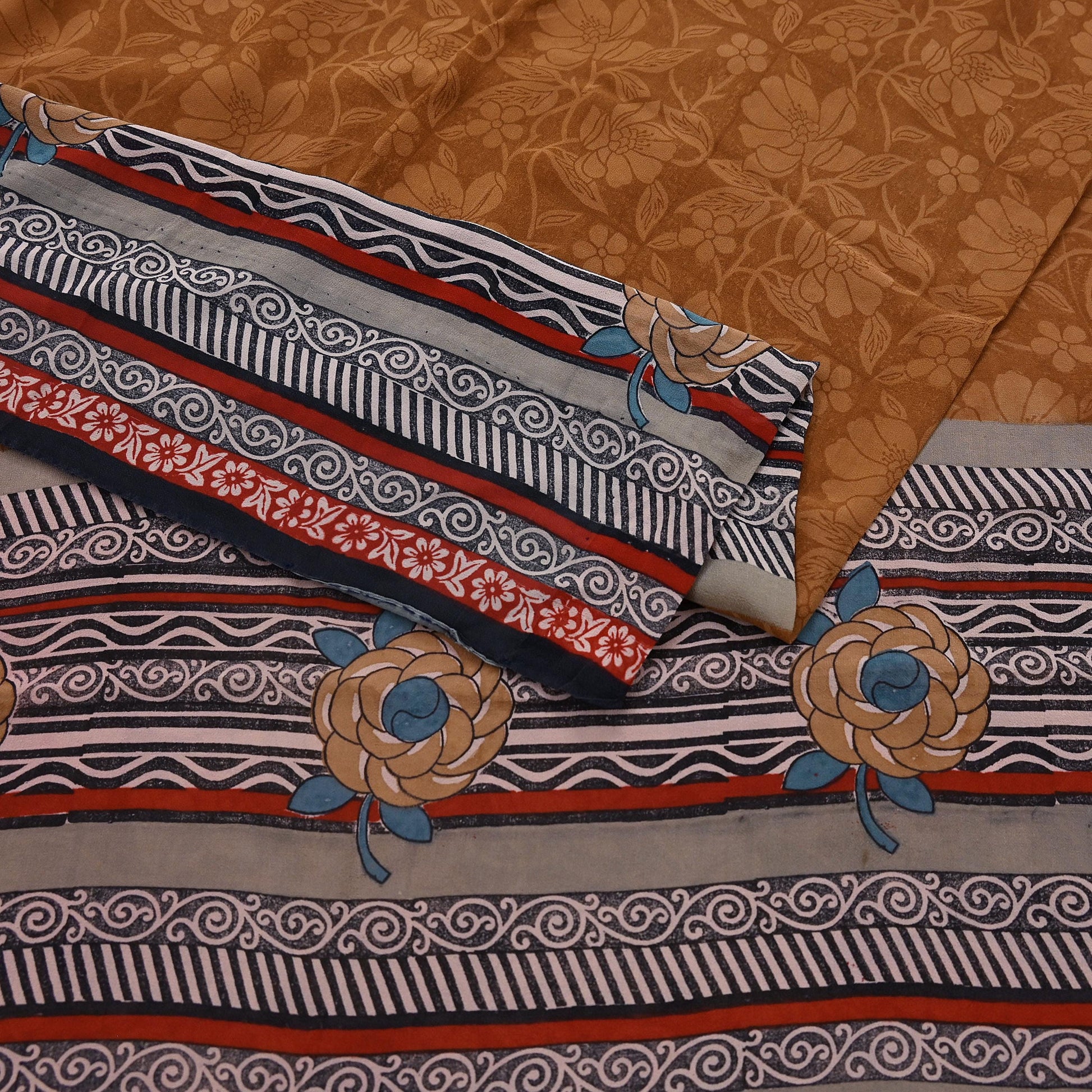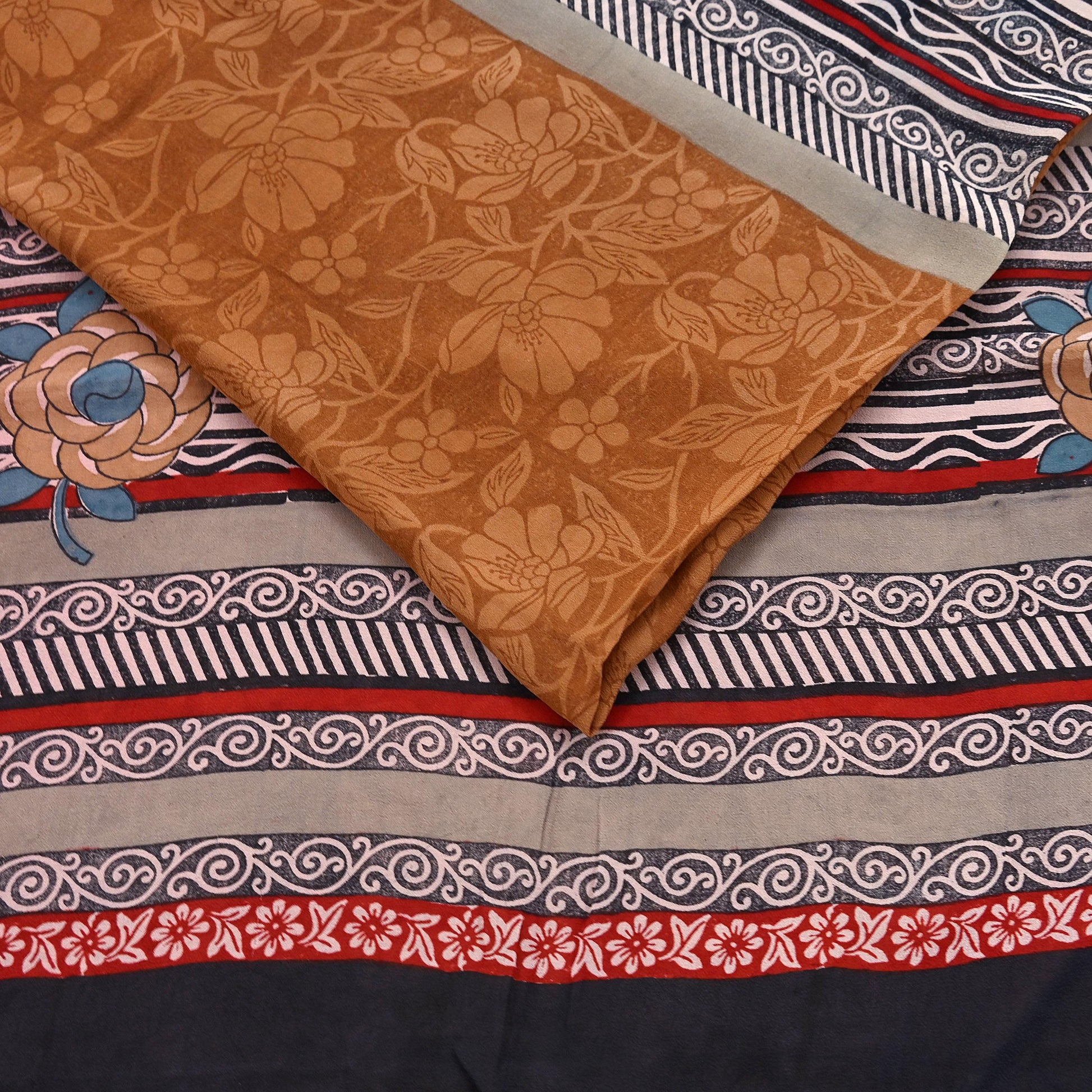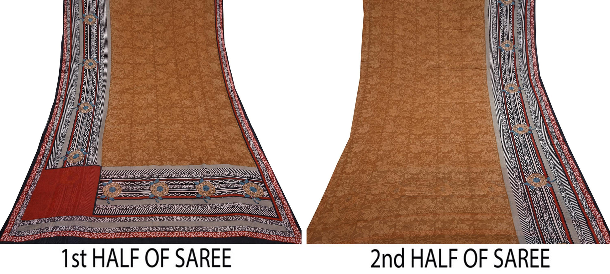 Indian Vintage Sari Brown & Maroon Pure Georgette Silk Printed Sarees Craft Fabric Sewing 5Yd Soft Dress Making Crafting Quilting Upcycle