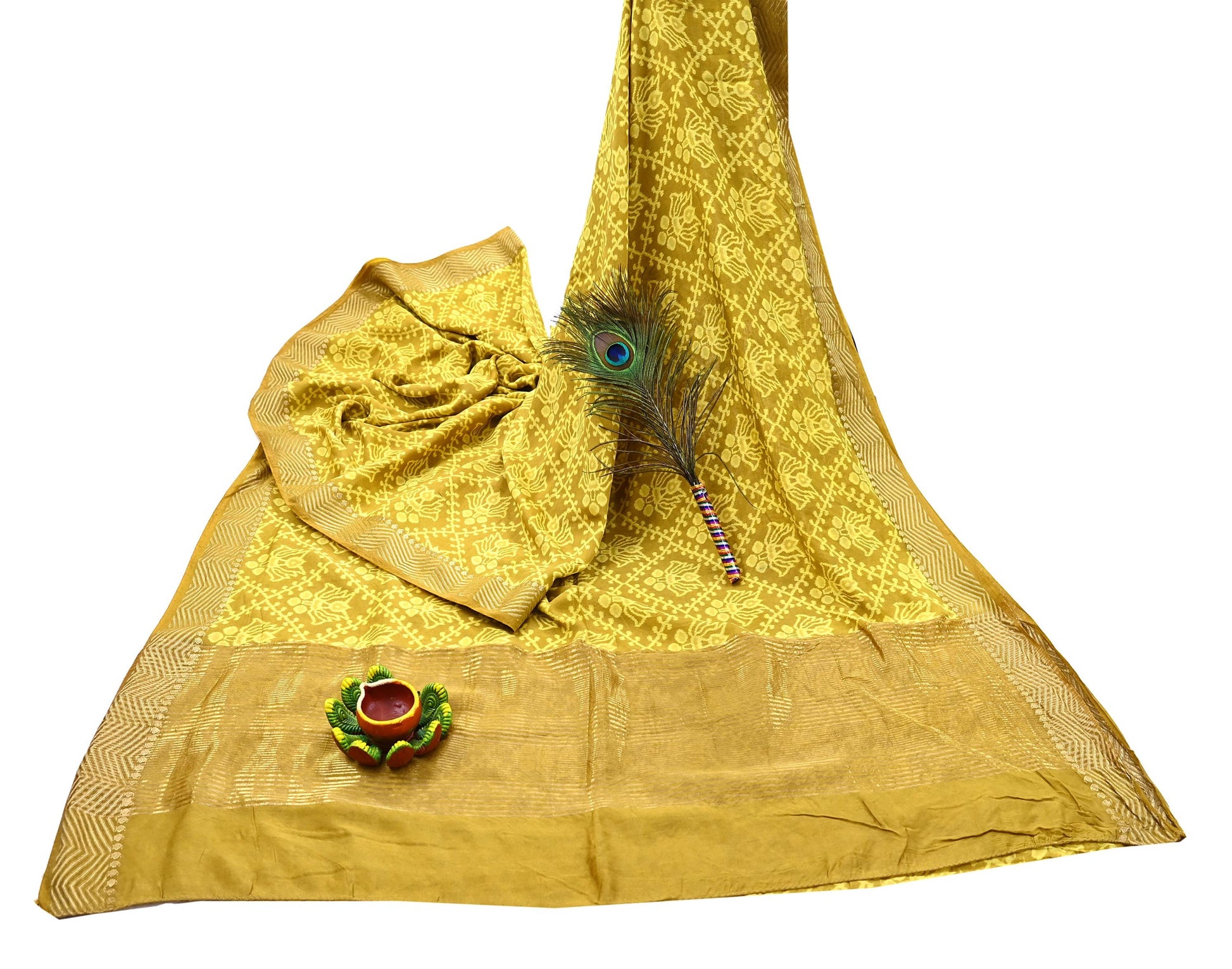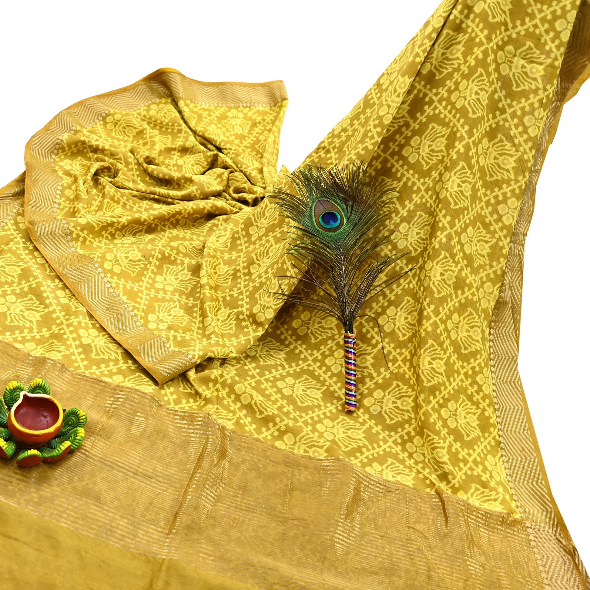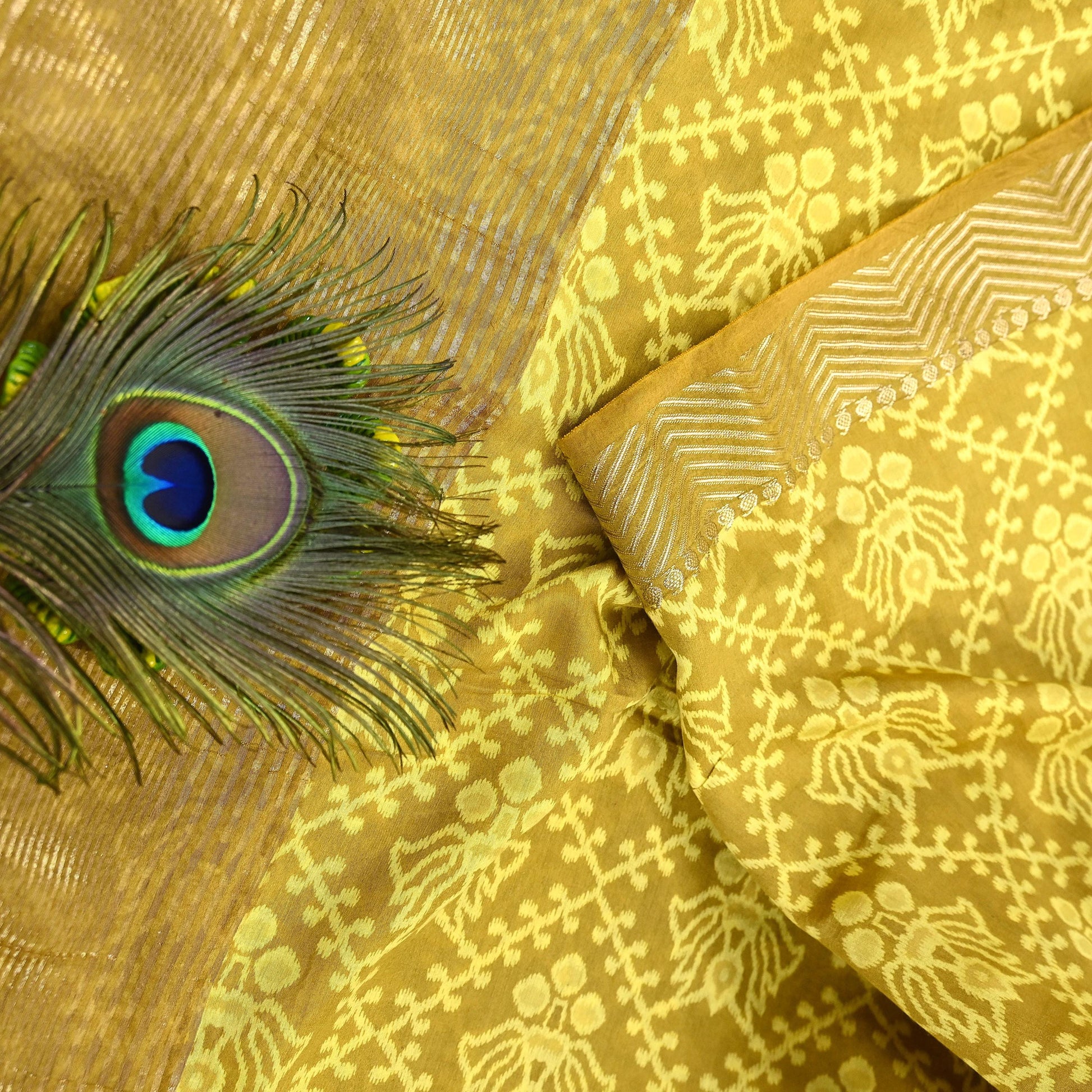 *We offers this vintage Yellow & Mustard colored Bagru printed saree which is crafted with chanderi Silk.