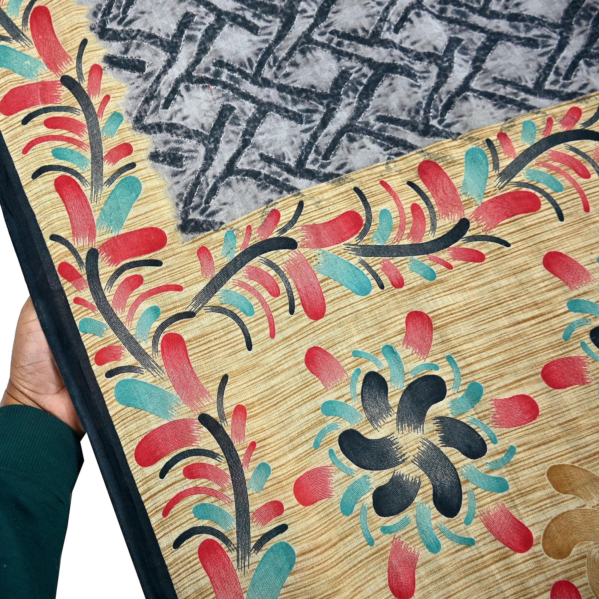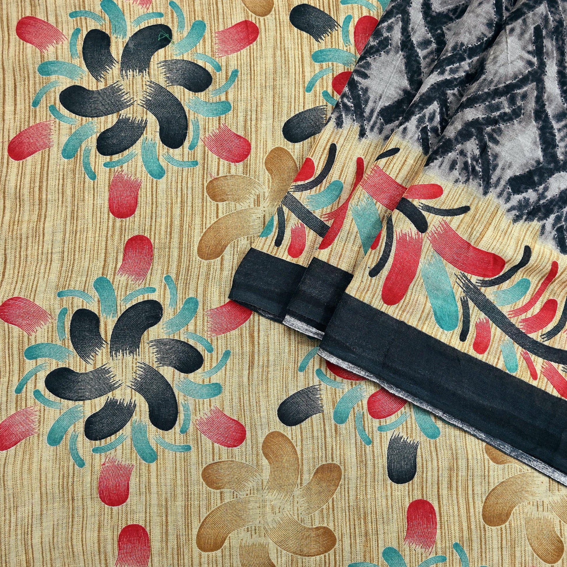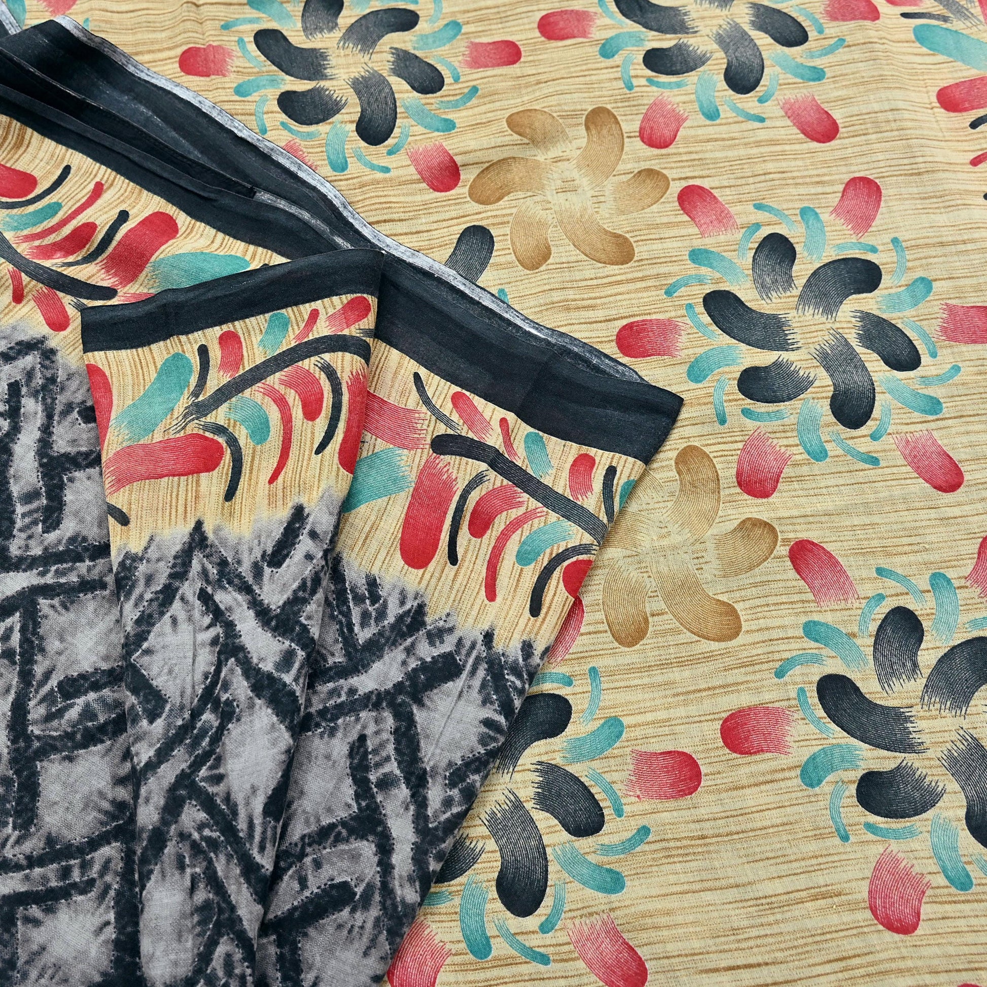 *Beautiful Gray, Beige & Black Colored Printed Pure Cotton Saree.