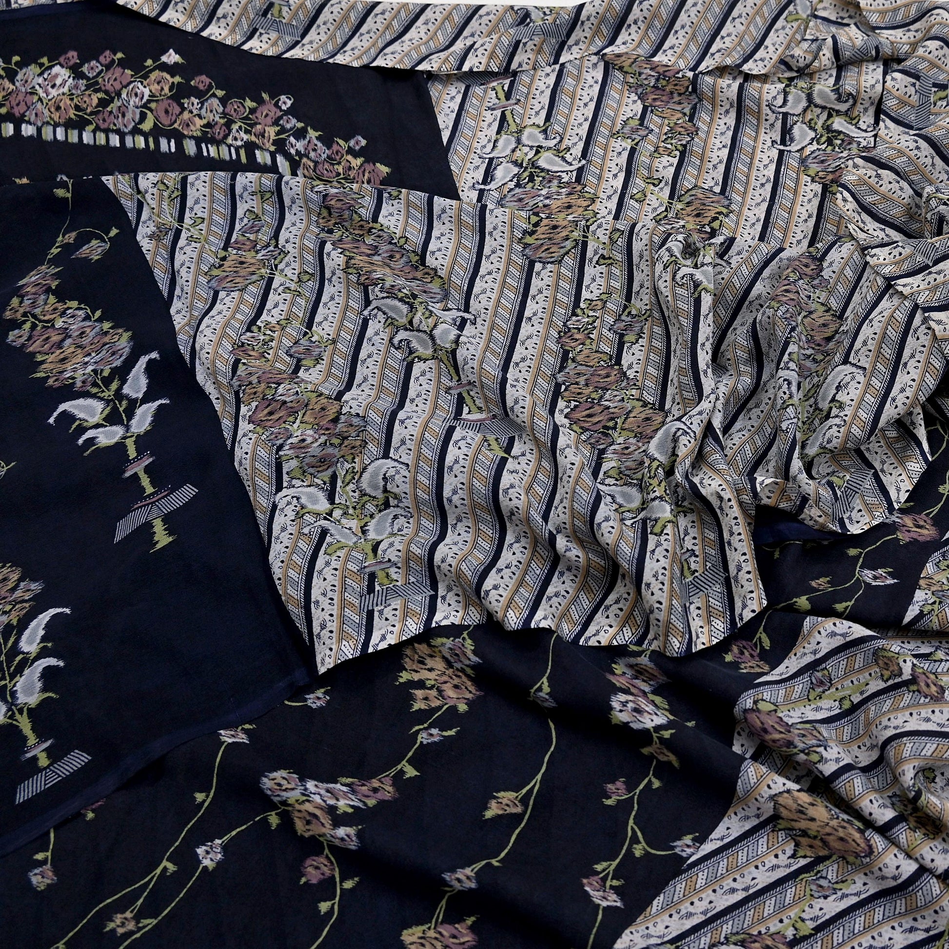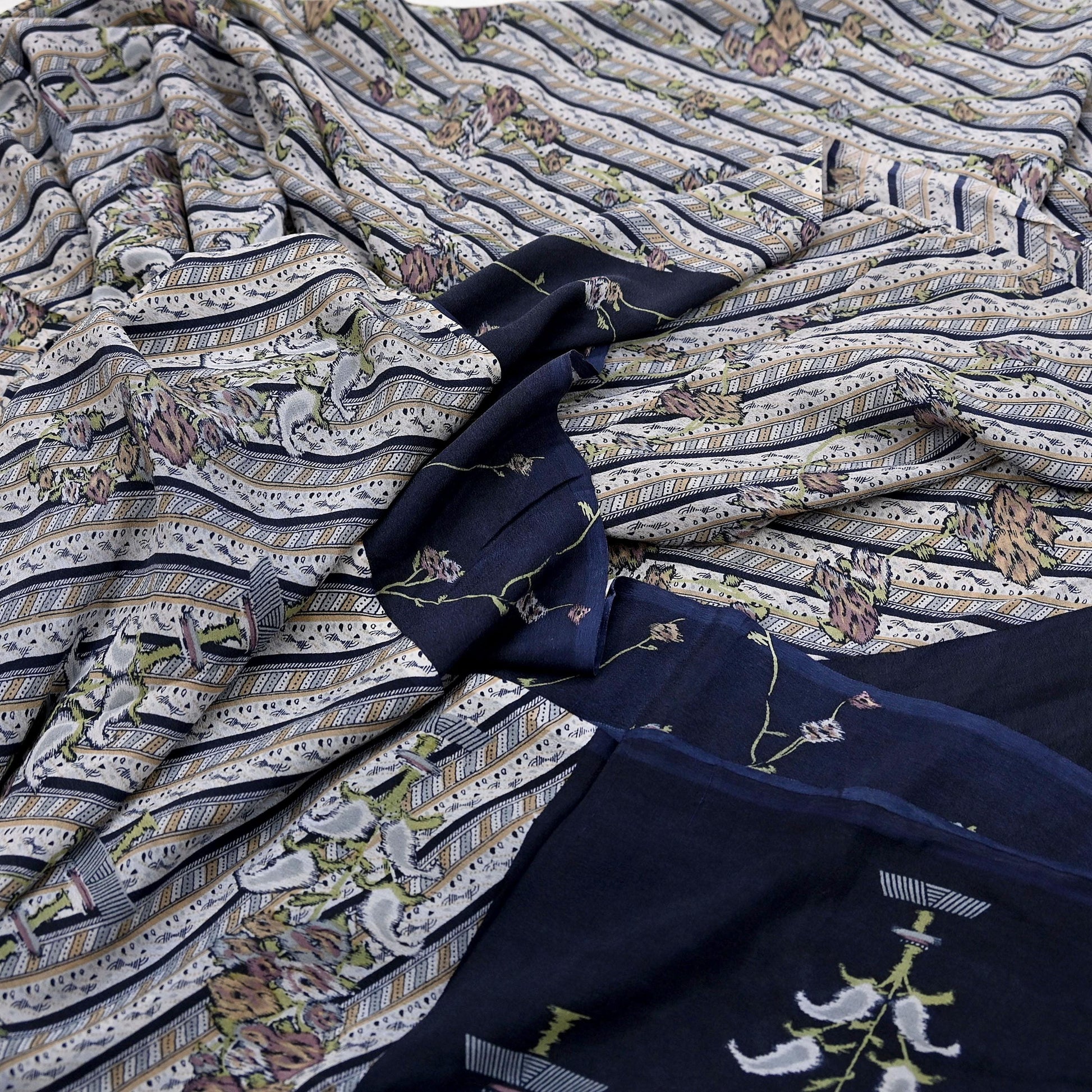 Indian Vintage Sari Gray & Blue Pure Silk Printed Saree 5yd Craft Fabric Sewing Floral Soft Dress Making Wrap used Quilting Crafting Upcycle