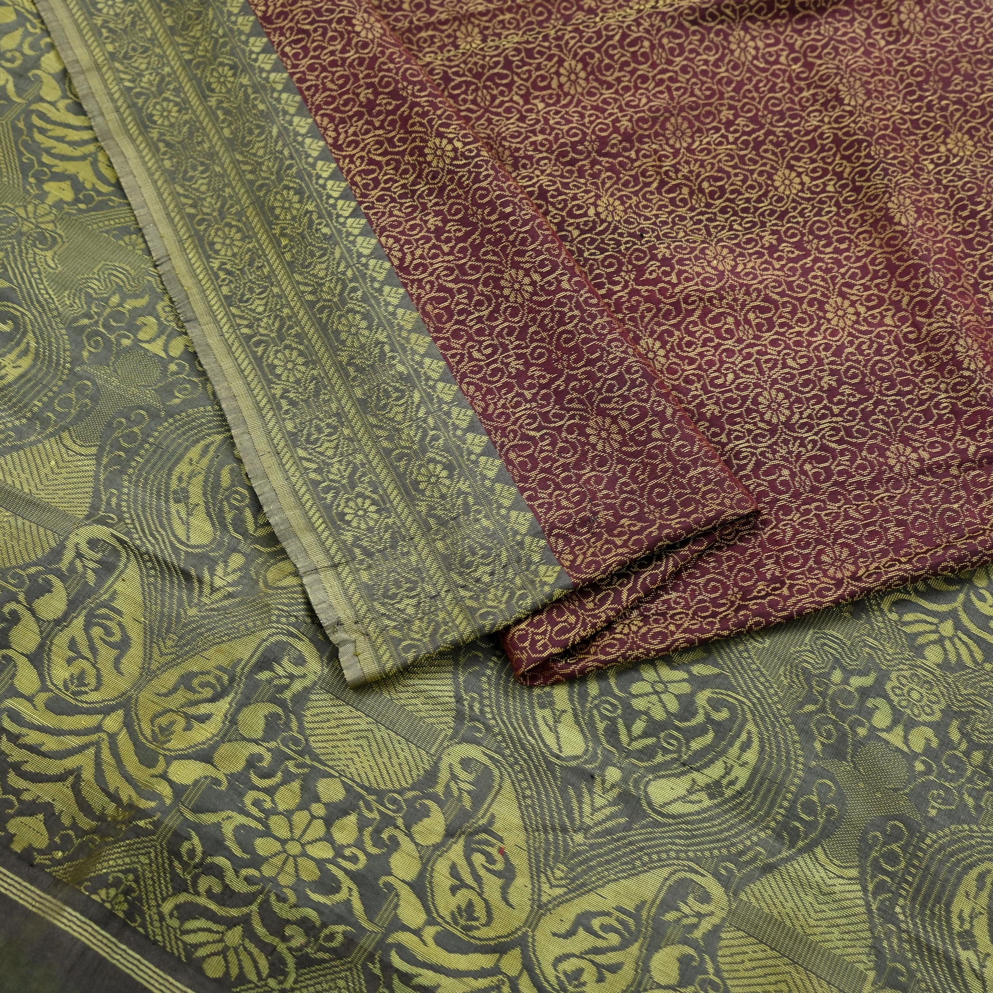 Indian Vintage Sari Gray & Purple 100% Pure Silk Hand Woven Sarees Craft Fabric 5Yd Ethnic Sewing Dress making Crafting Quilting Upcycle