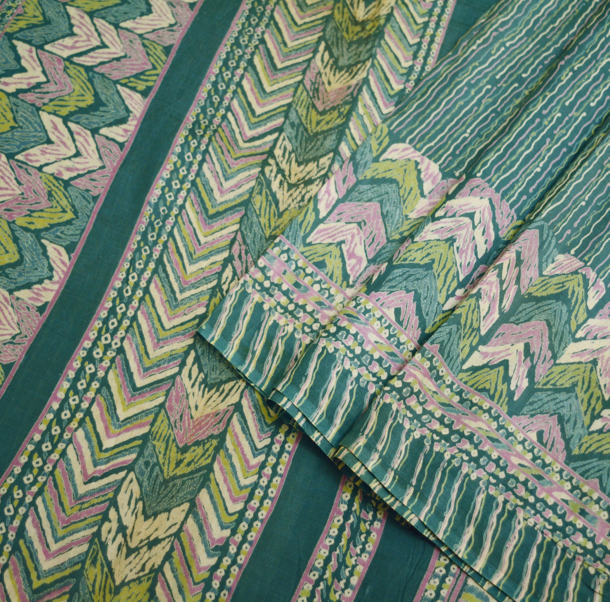 Indian Vintage Sari Grayish Blue Printed Pure Cotton Indian Craft Soft Fabric 5Yard Sewing Sarong Wrap Boho Floral