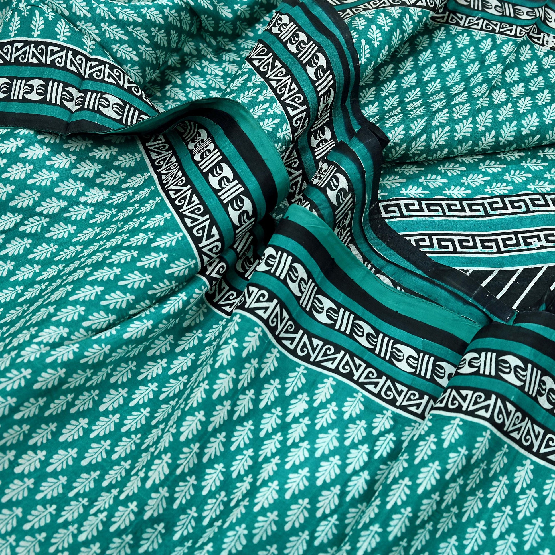 *Attractive Green & Black Colored Printed Pure Silk Saree .