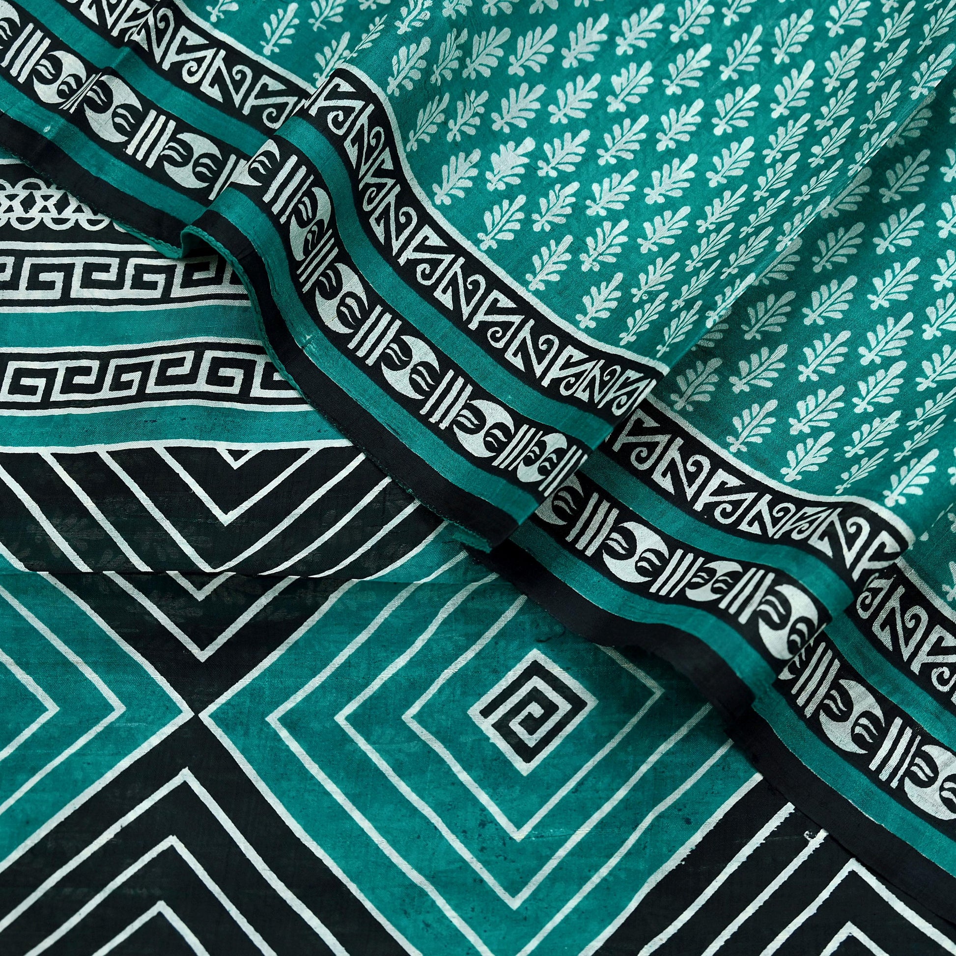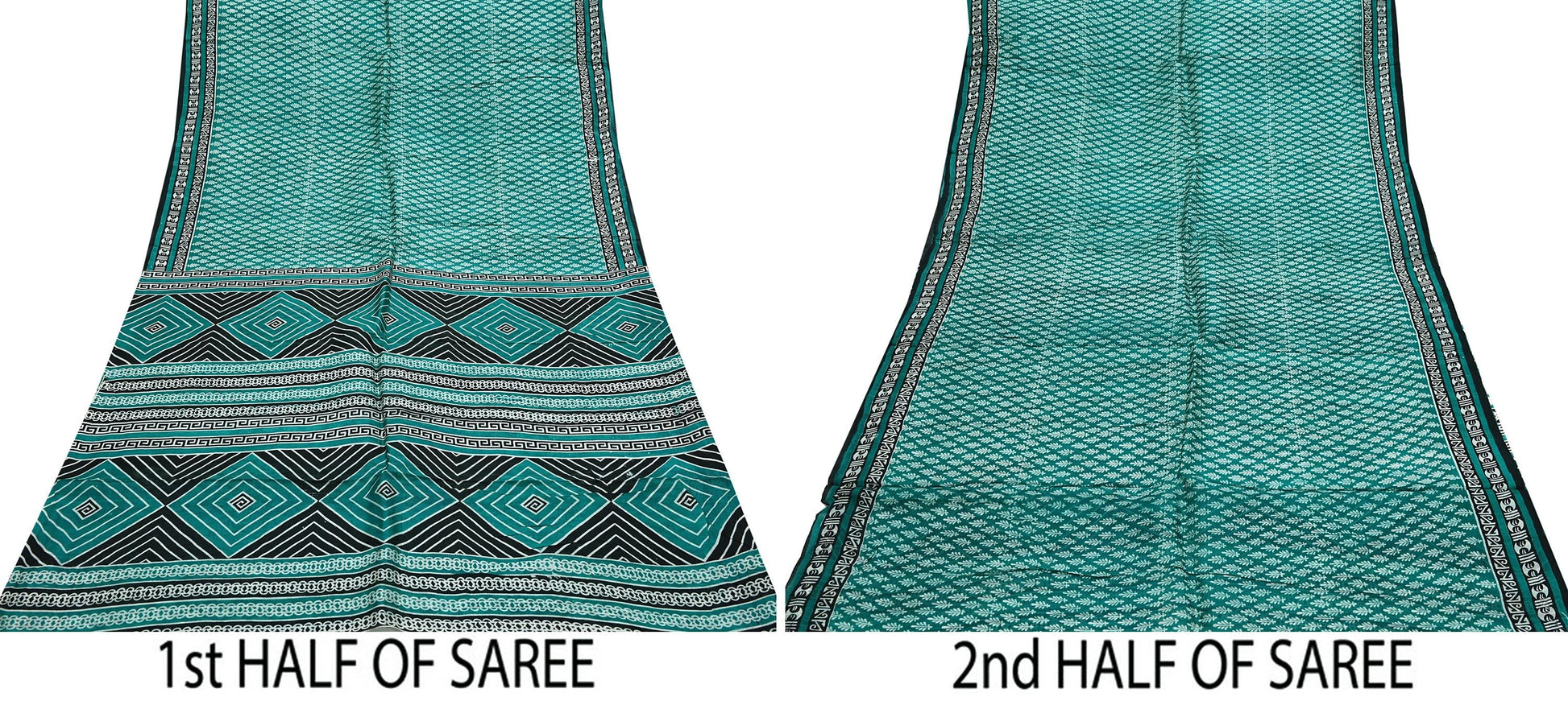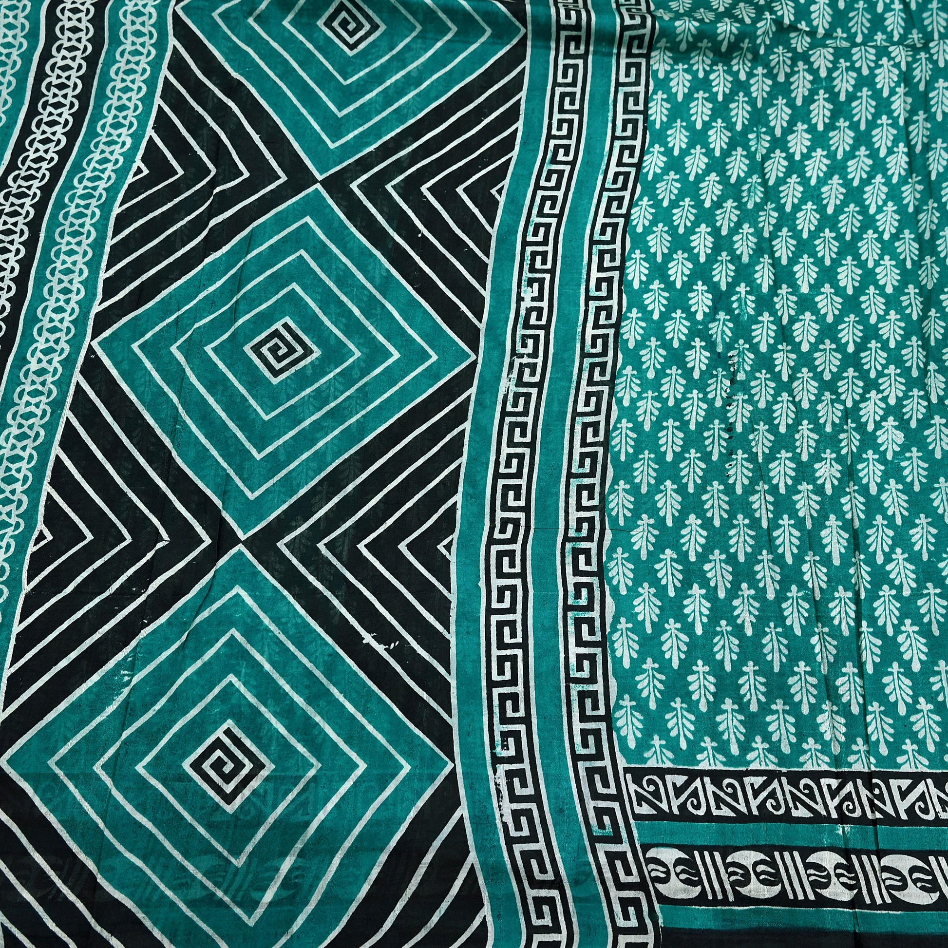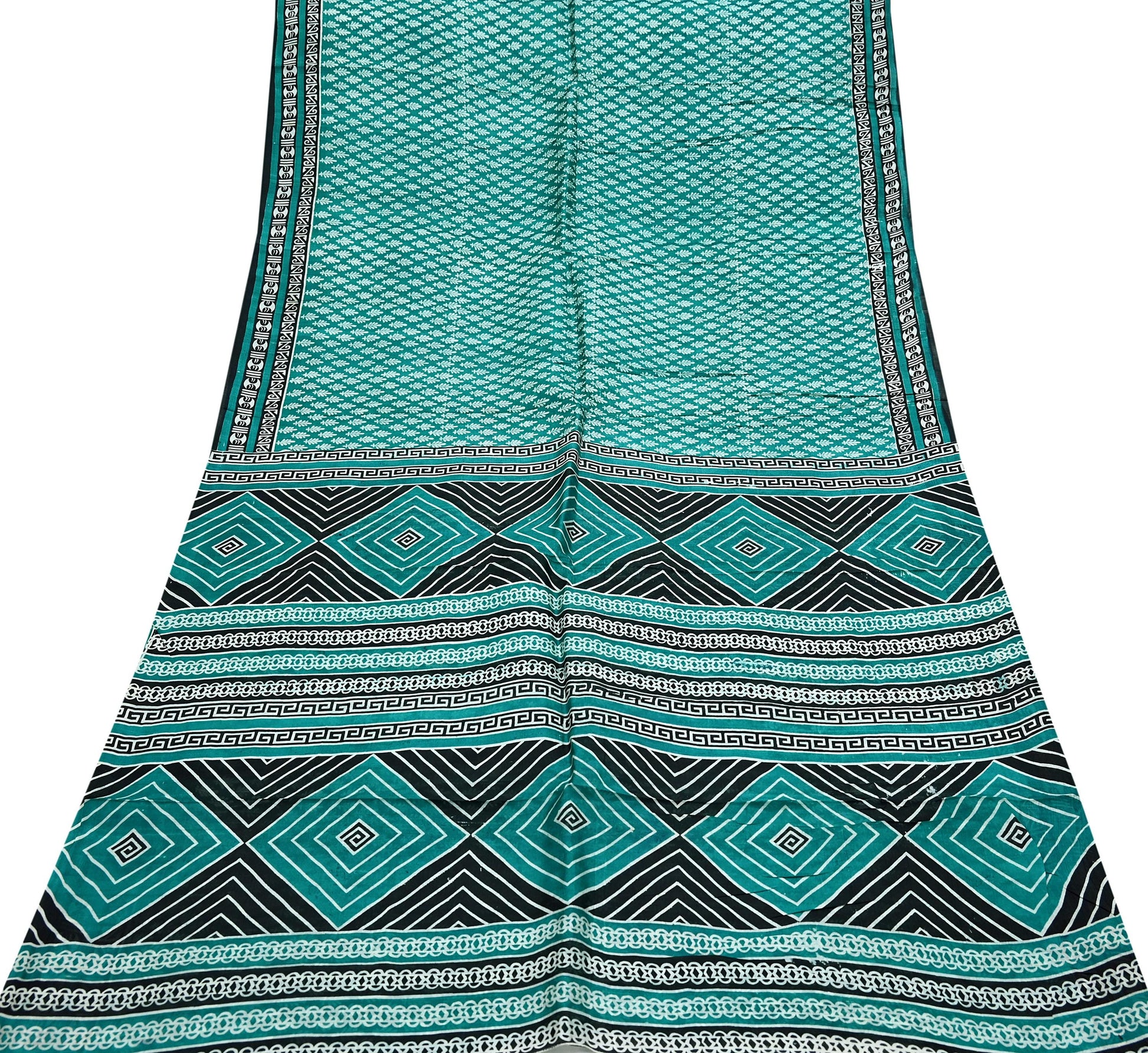 Indian Vintage Sari Green & Black 100% Pure Silk Printed Sarees 5yd Sewing Craft Fabric DressMaking Crafting Quilting Upcycle