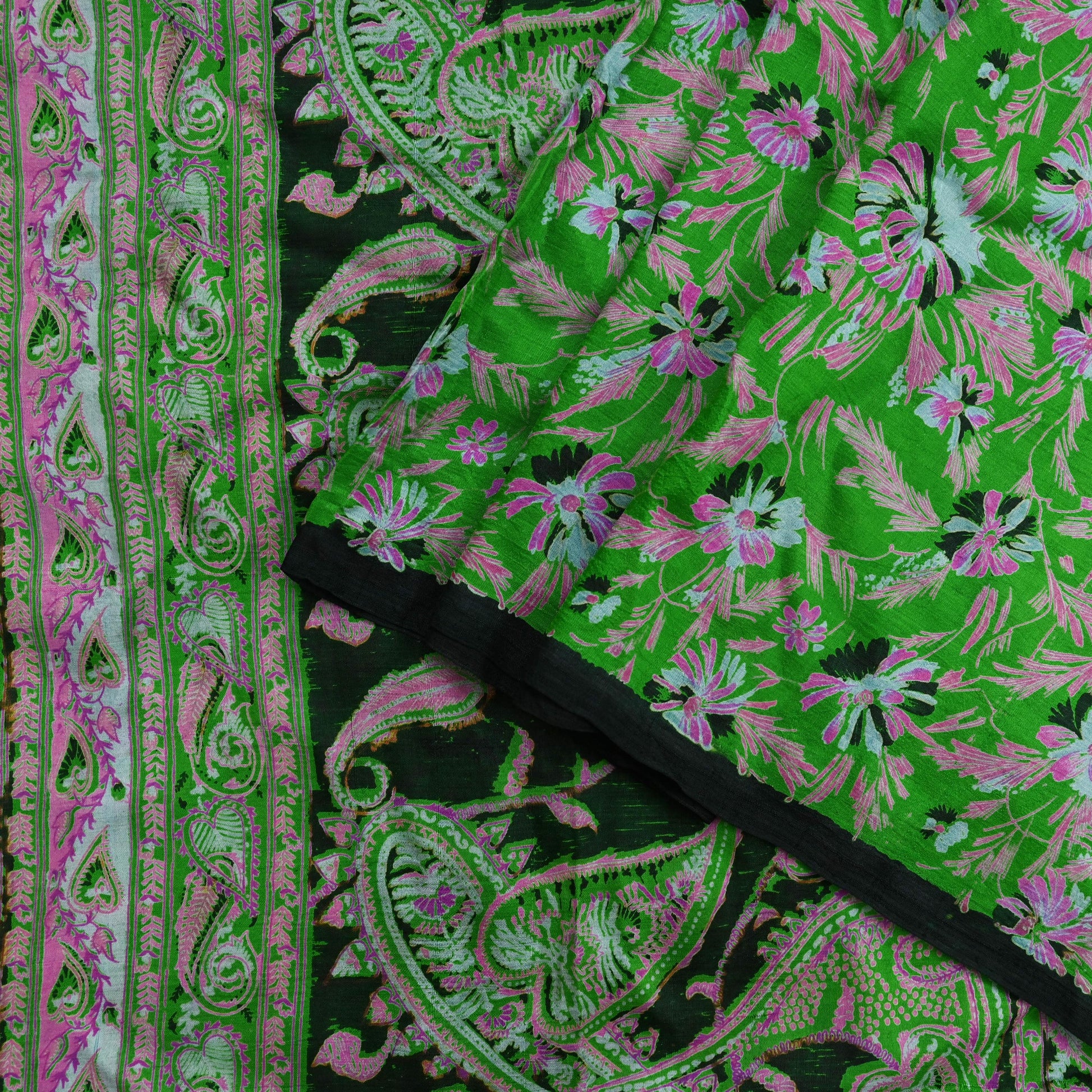 Indian Vintage Sari Green & Black Pure Silk Printed Sarees Craft Fabric 5yd Sewing Dress Making Soft Floral Crafting quilting