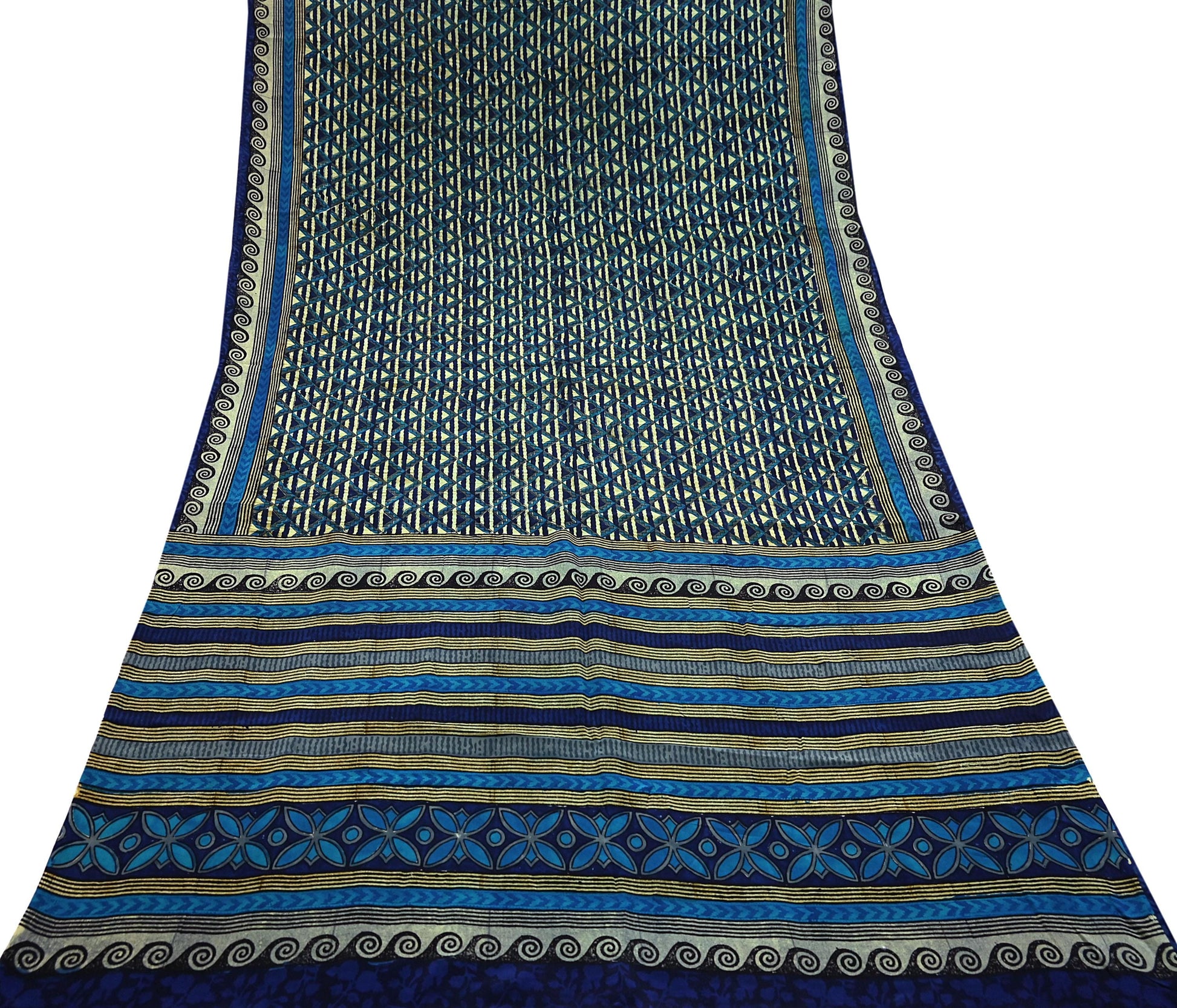 🔹This unique vintage Green & Blue Colored Block Printed Pure Crepe Silk Saree Fabric.