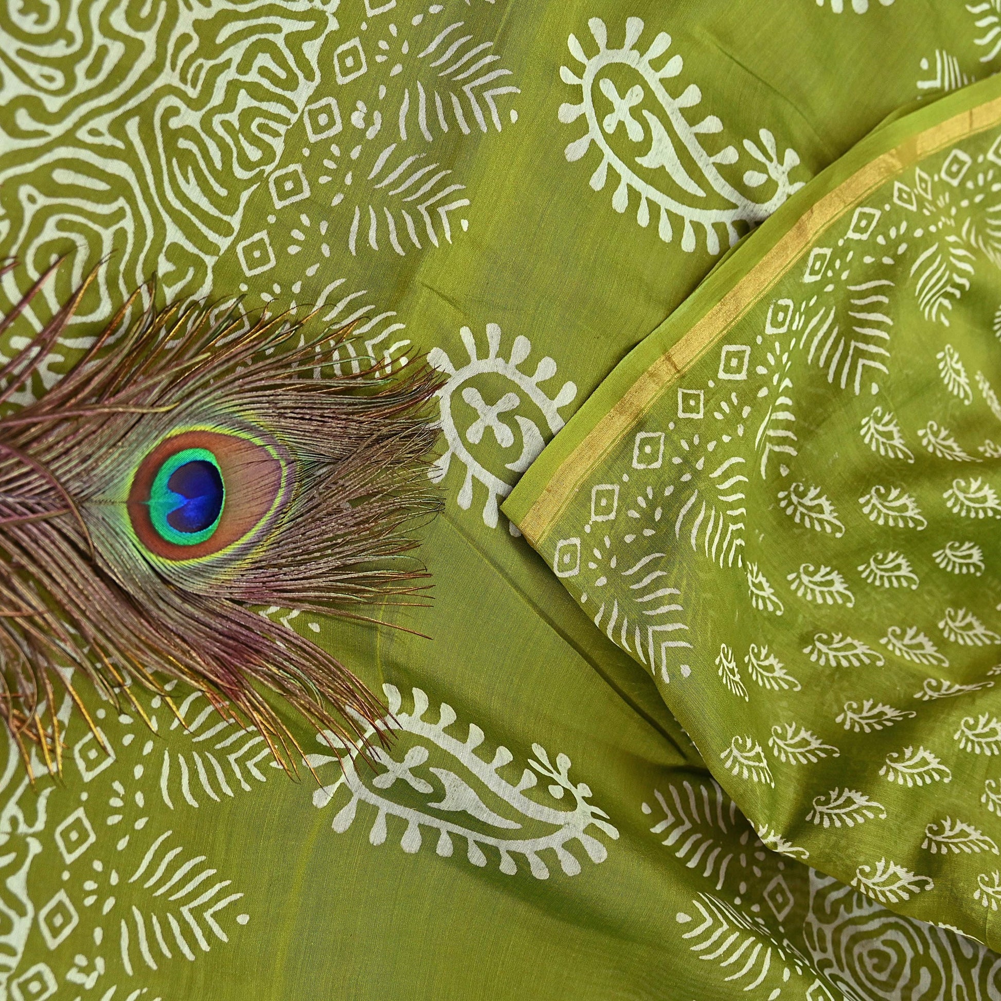 *We offers this vintage Green colored Bagru printed saree which is crafted with chanderi Silk.